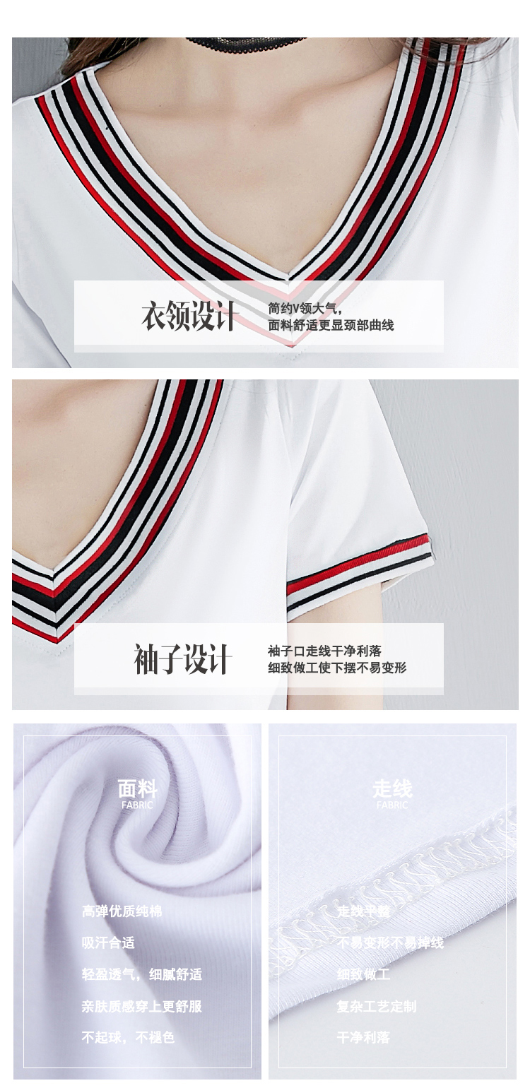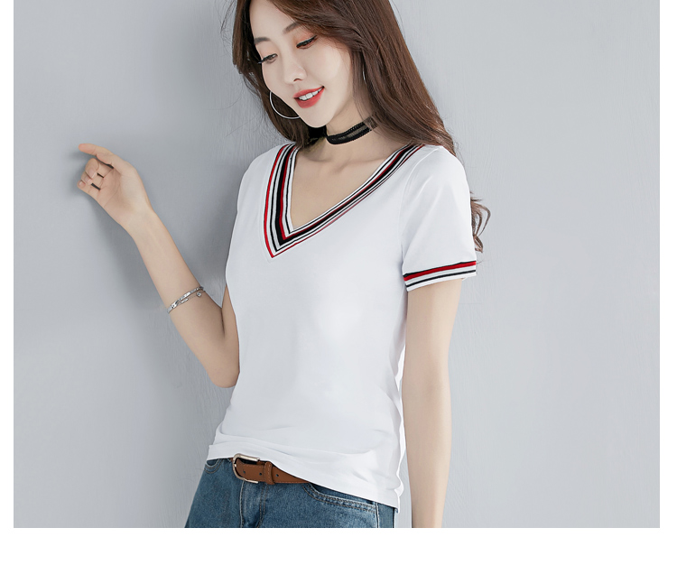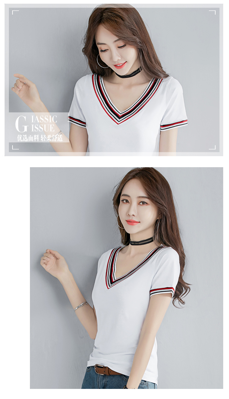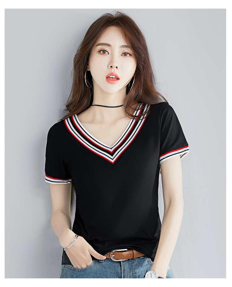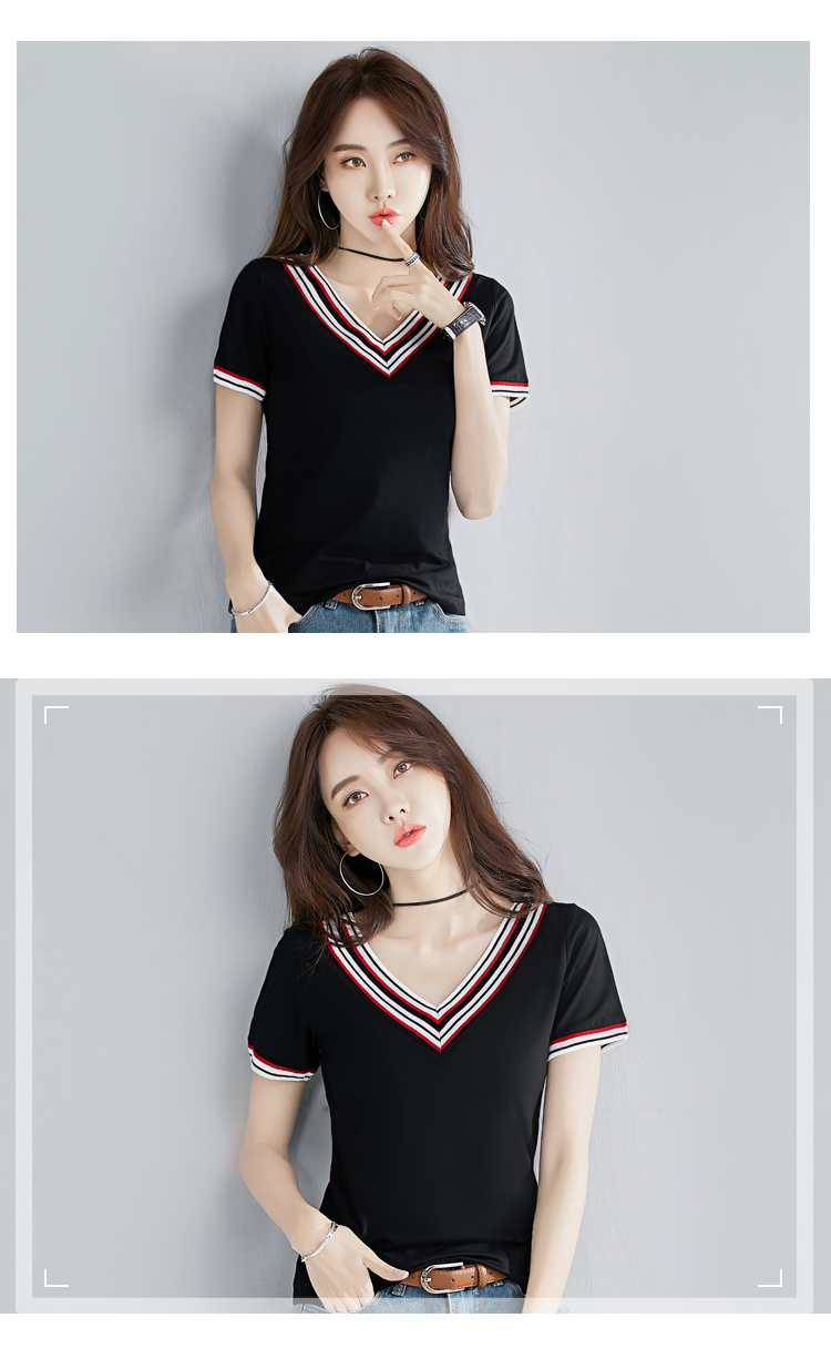 2019夏裝新款韓版V領純色短袖t恤女士修身顯瘦半袖體恤純棉上衣服