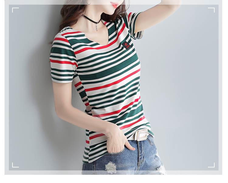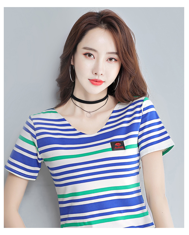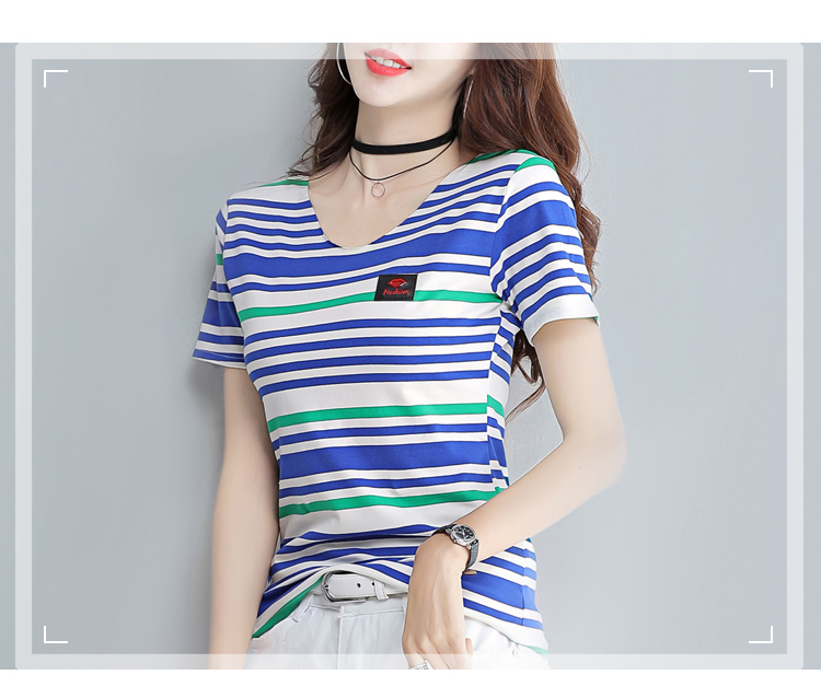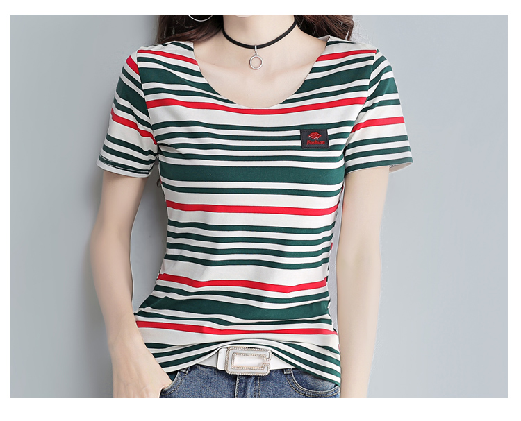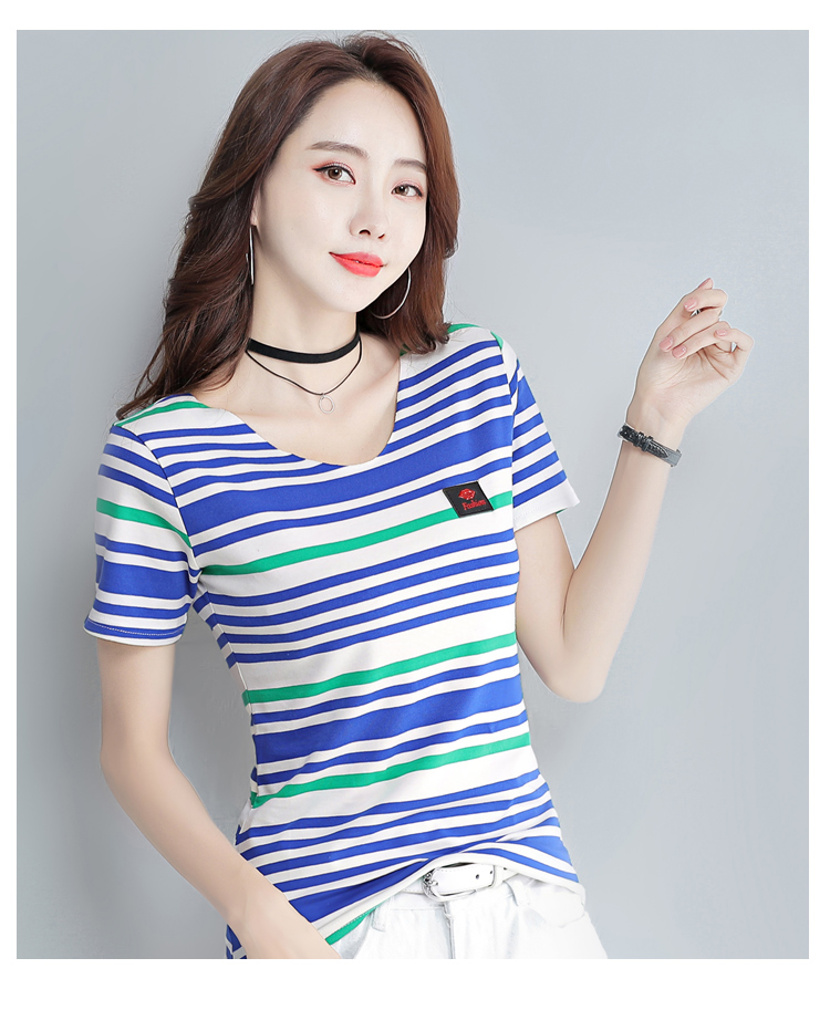 2019夏裝新款純棉條紋短袖t恤女韓版修身顯瘦百搭半袖體恤女上衣