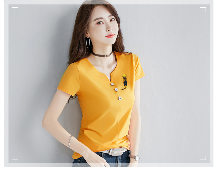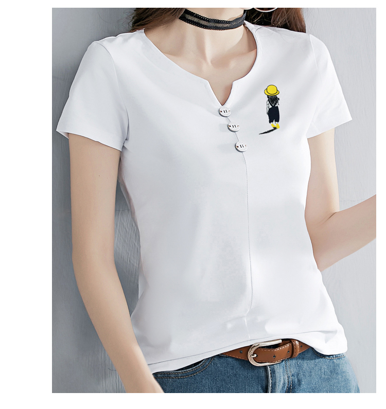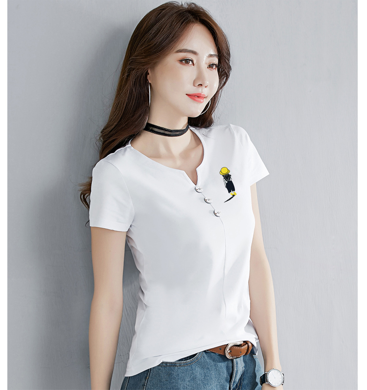 2019夏裝韓版純棉短袖女T恤修身卡通V領上衣百搭半袖體恤打底衫潮