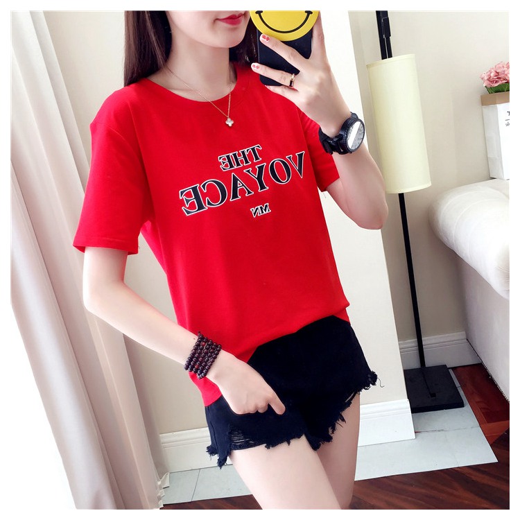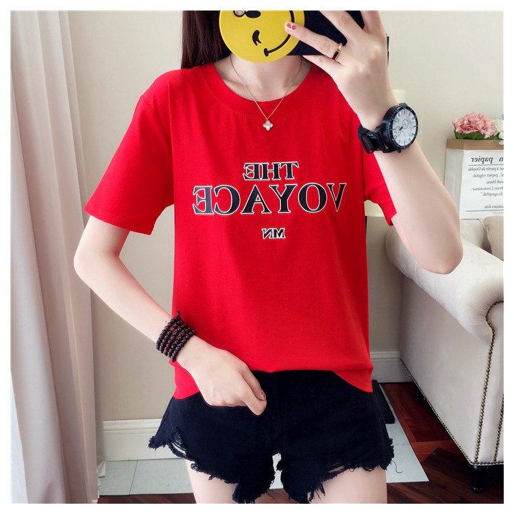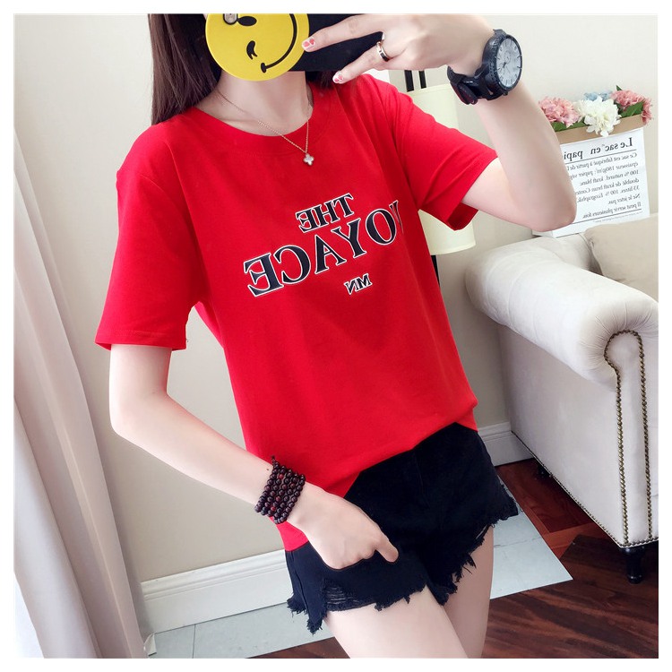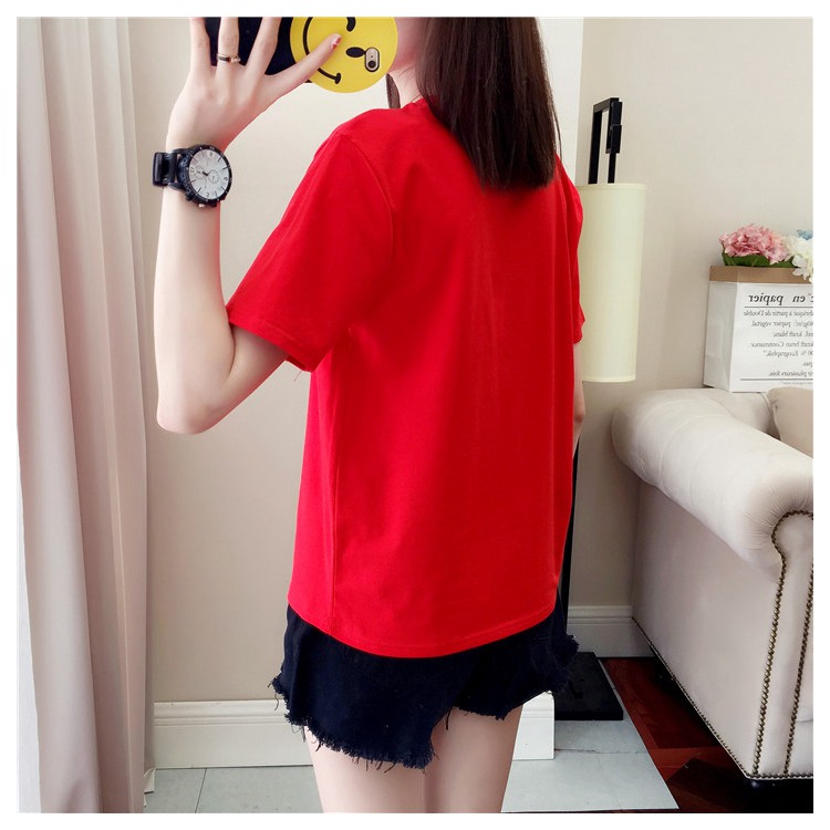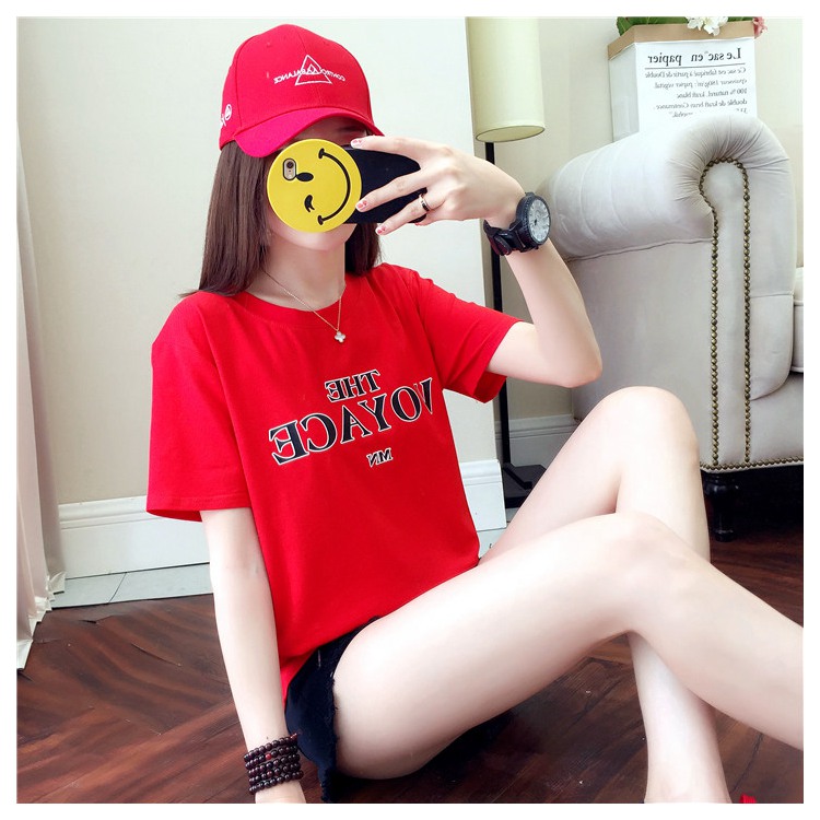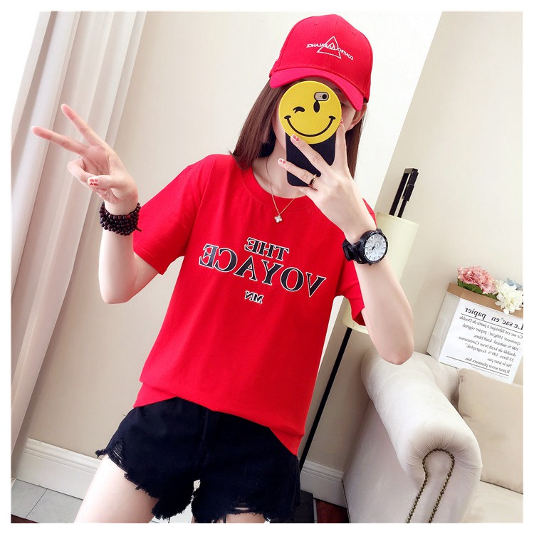 2019夏裝新款韓版百搭字母純棉紅色t恤女短袖學生半袖體恤女上衣