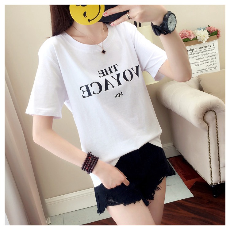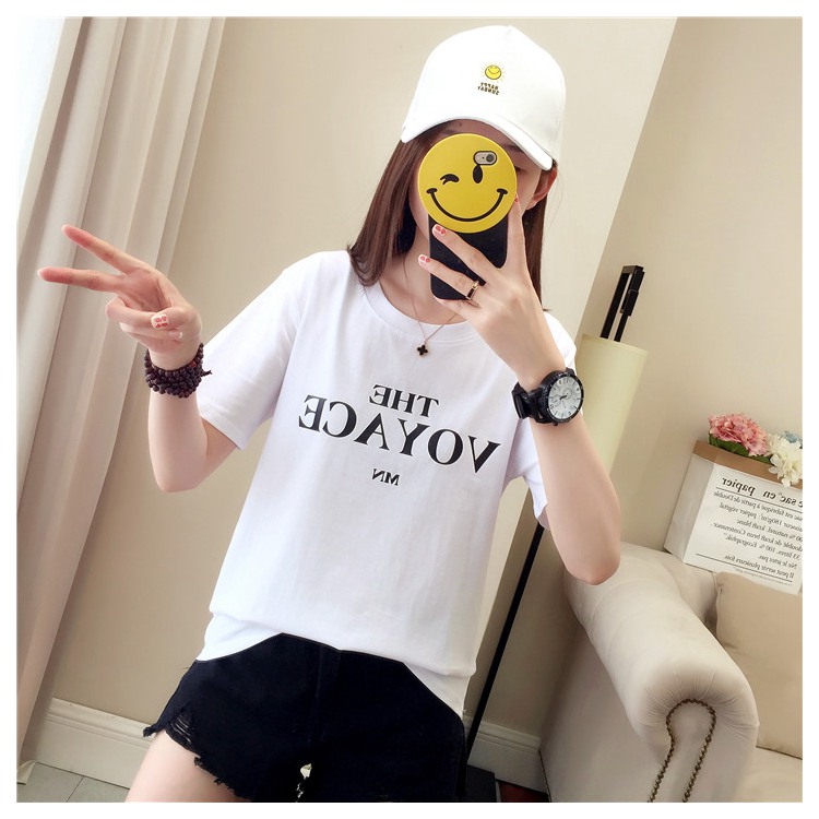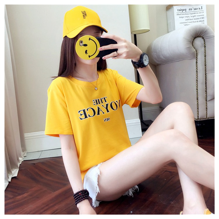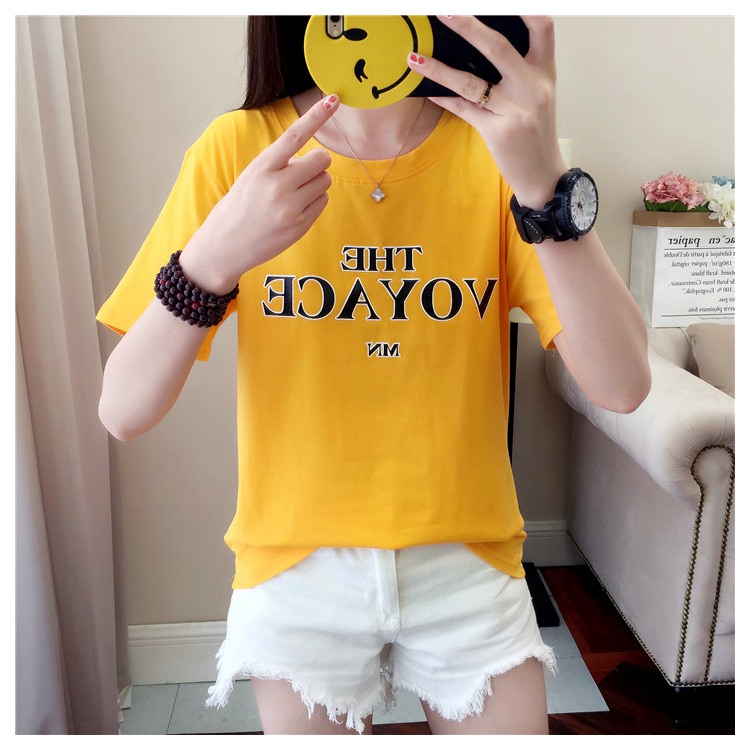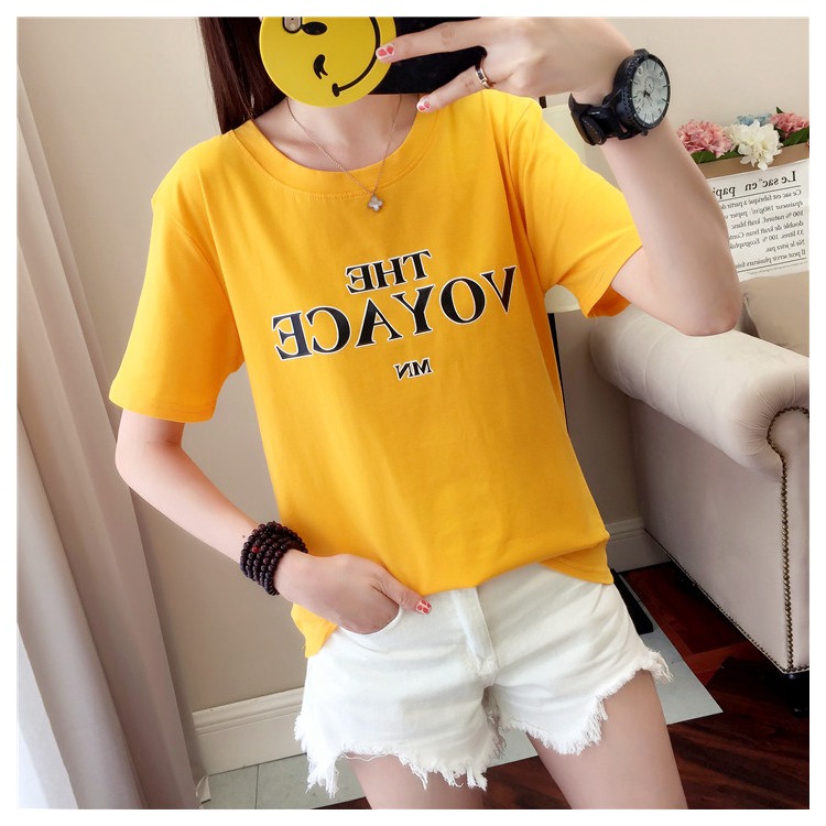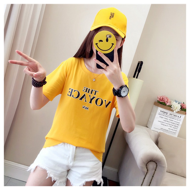 2019夏裝新款韓版百搭字母純棉紅色t恤女短袖學生半袖體恤女上衣