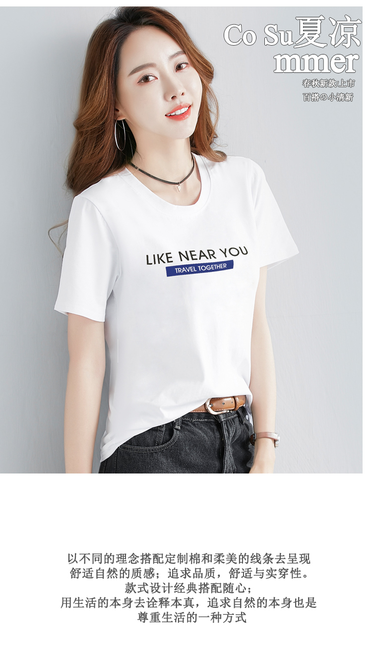 2019夏裝新款韓版簡約白色t恤女純棉短袖寬松上衣百搭半袖體恤衫