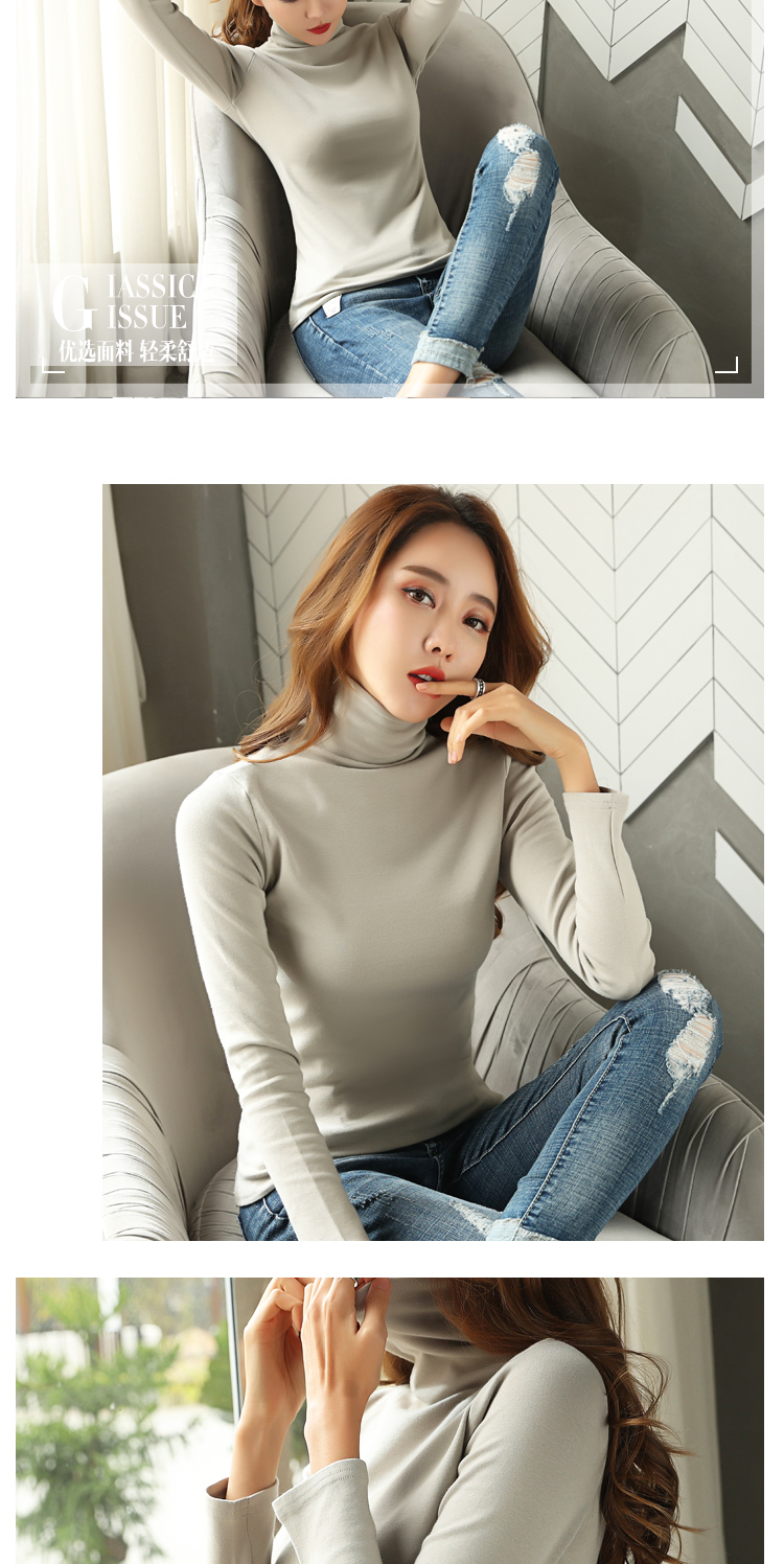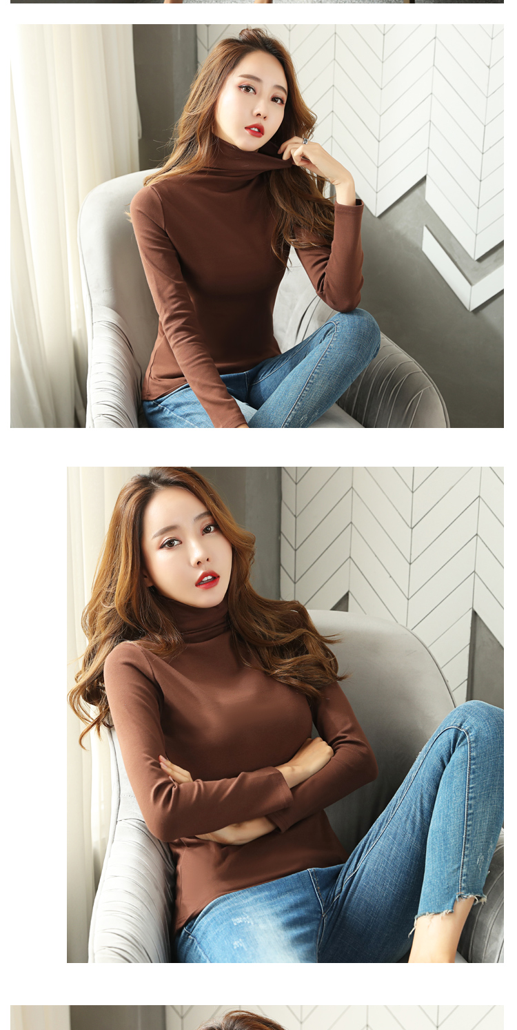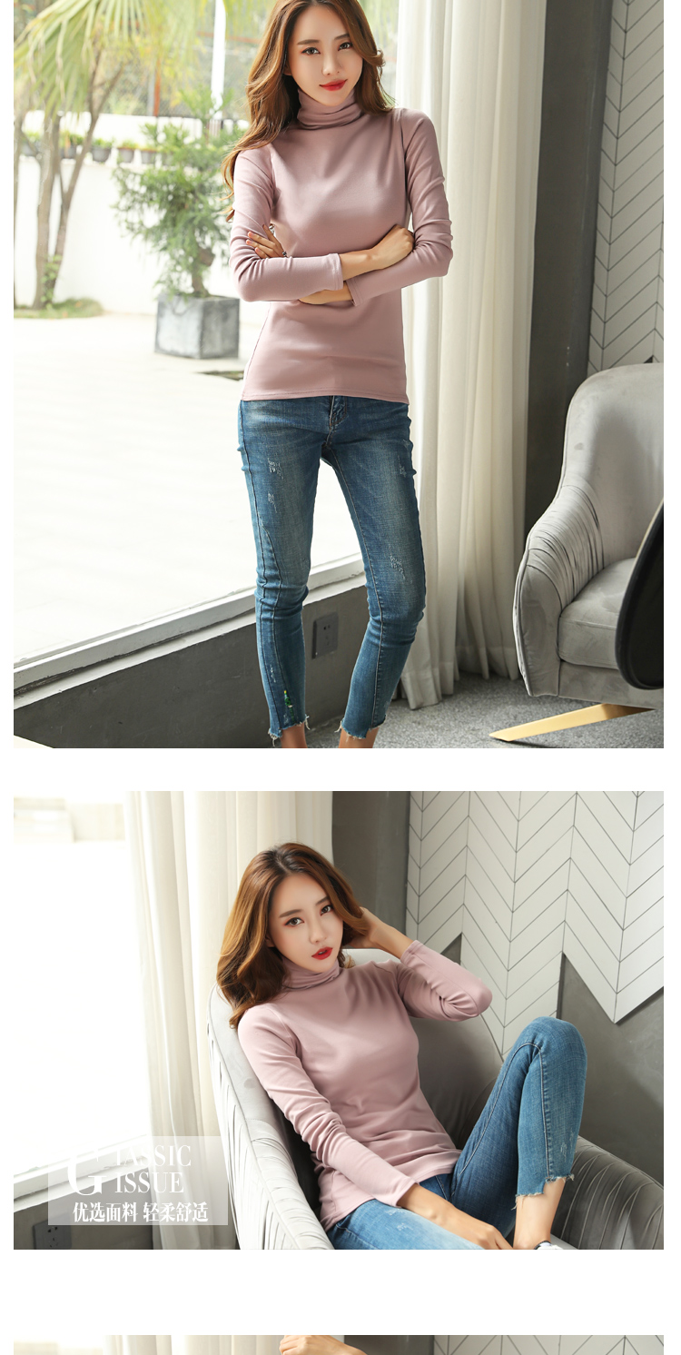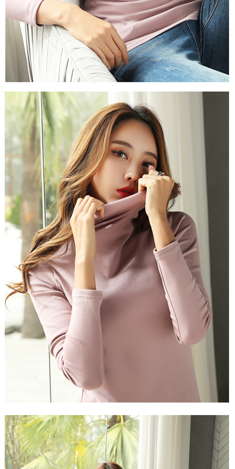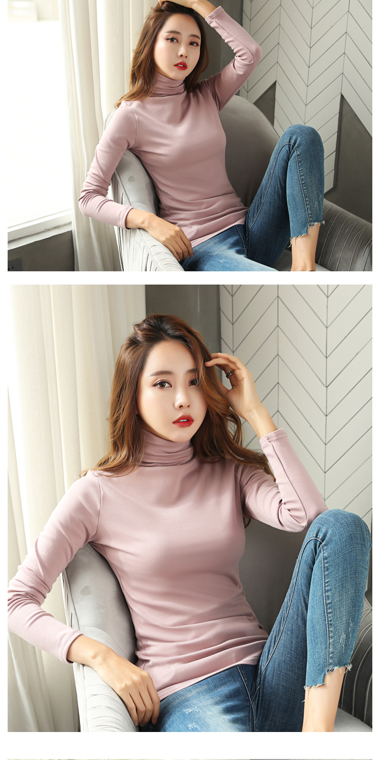 高領打底衫女長袖2019秋冬新款女裝修身內搭體恤加厚t恤純棉上衣