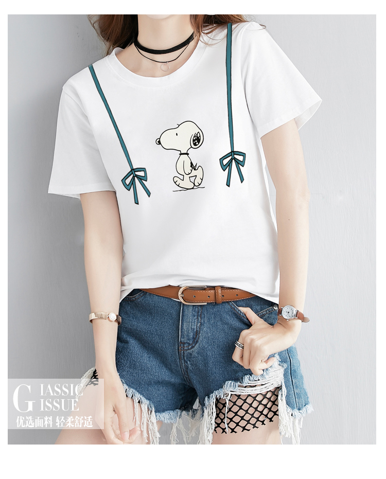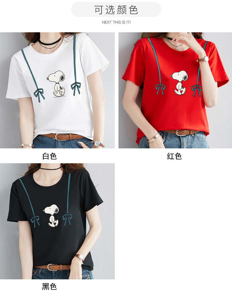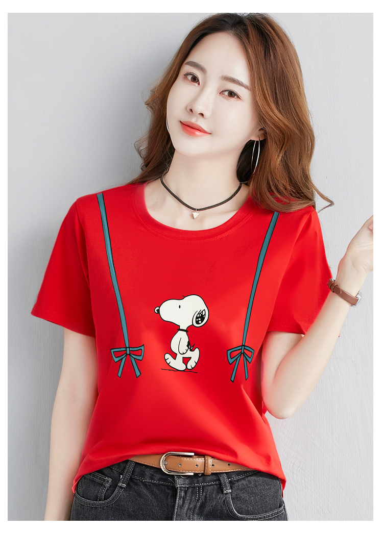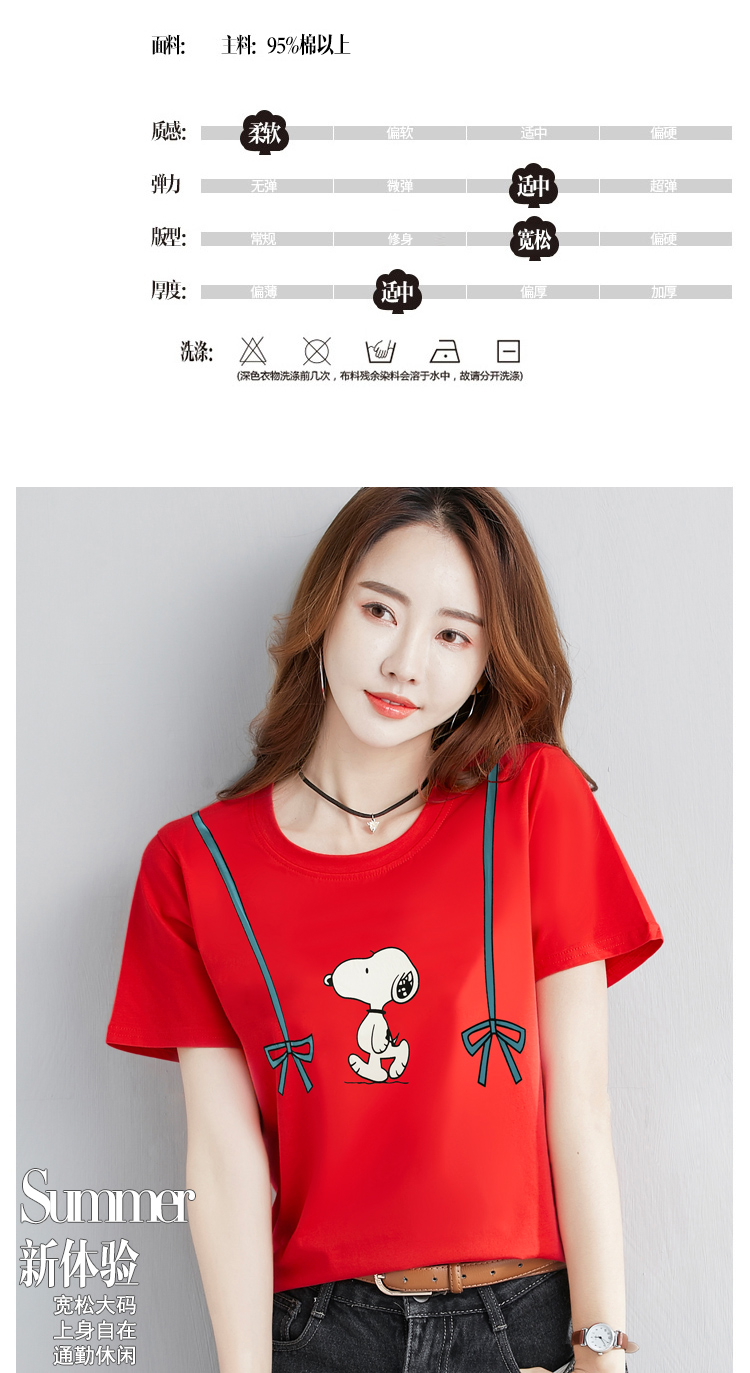 2019夏裝新款紅色半袖T恤女短袖韓范寬松純棉學生卡通上衣打底衫