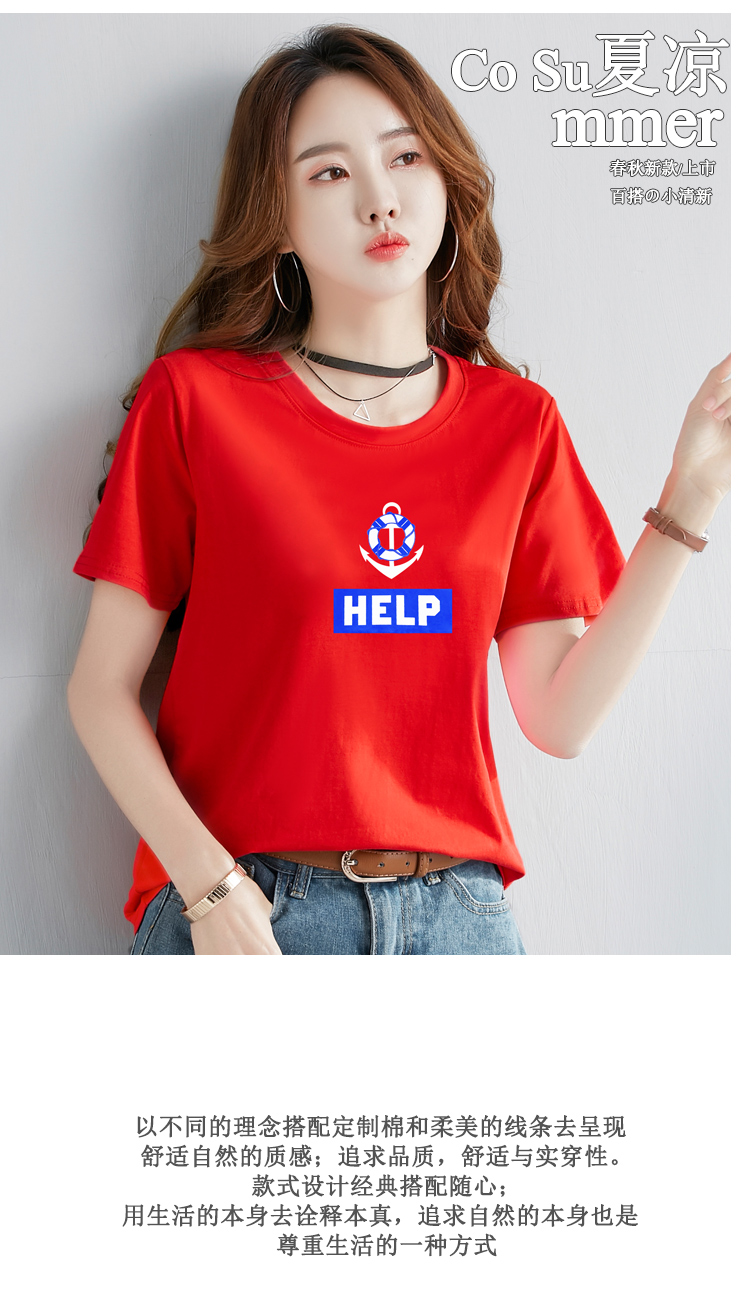 2019夏裝新款韓范ins紅色純棉短袖t恤女士寬松大碼百搭半袖上衣服