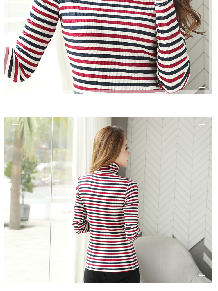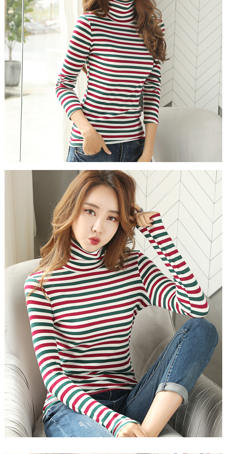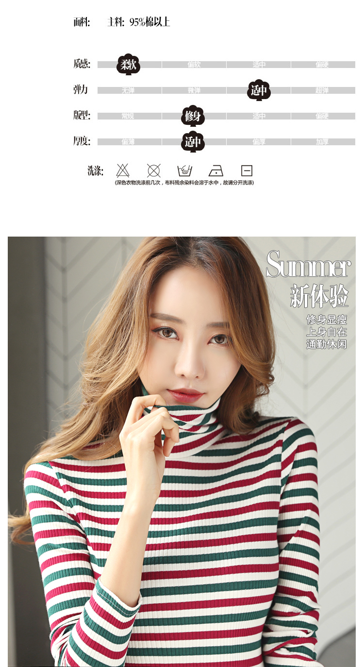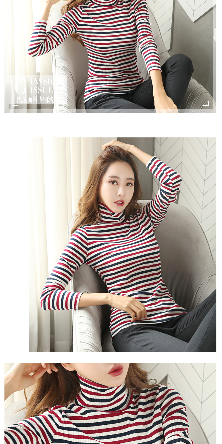 高領條紋打底衫女2018秋冬新款韓版百搭純棉t恤女長袖上衣服內搭