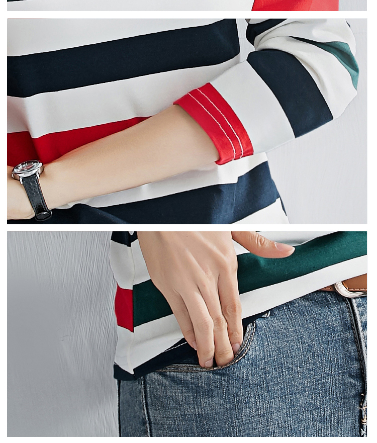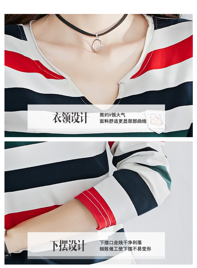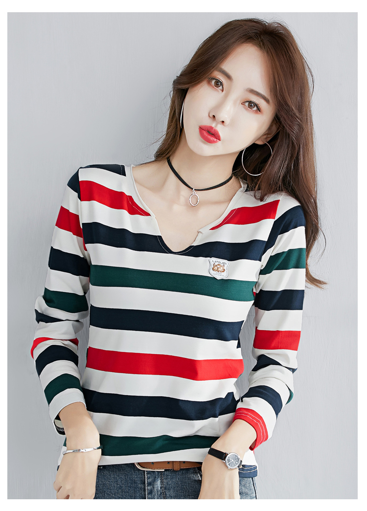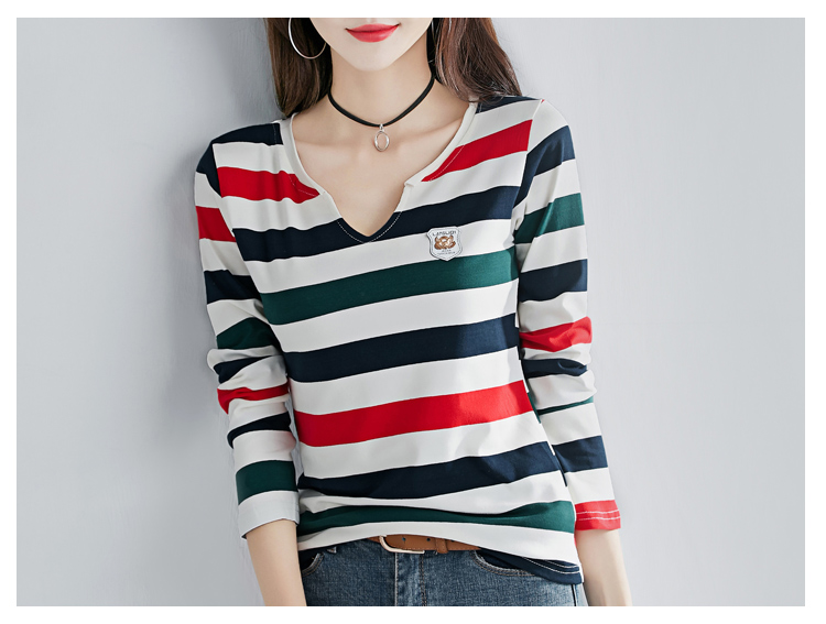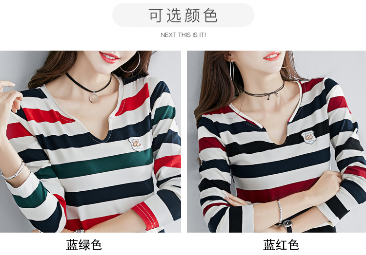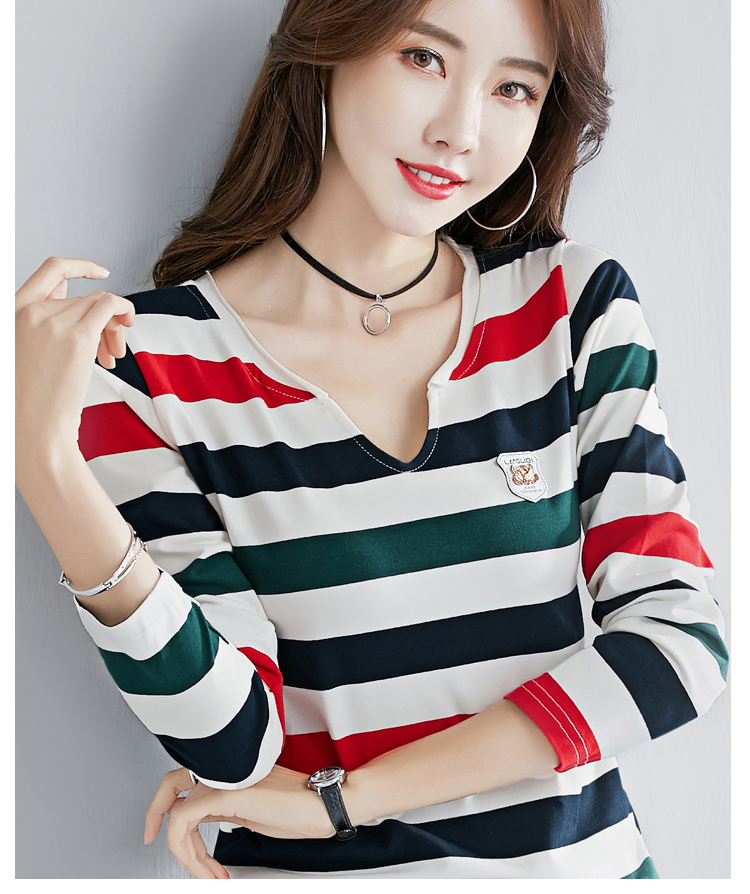 2019春季新款韓版修身條紋t恤女學生長袖上衣休閑純棉內搭打底衫