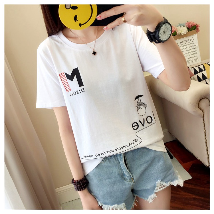 2019新款夏裝純棉寬松韓版百搭卡通t恤女短袖半袖韓范體恤上衣服