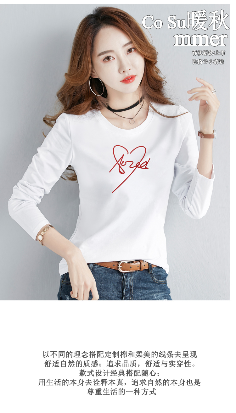 2019春季新款韓版簡約純棉白色長袖t恤女百搭顯瘦打底衫上衣服潮