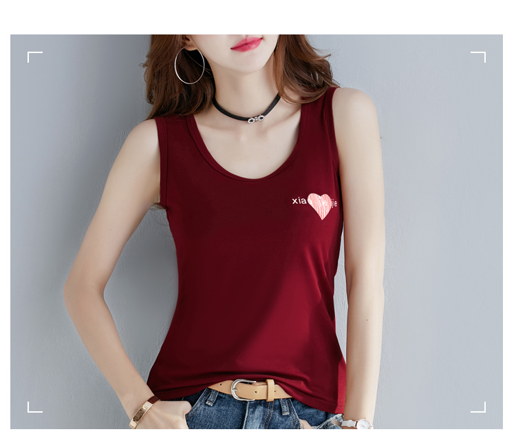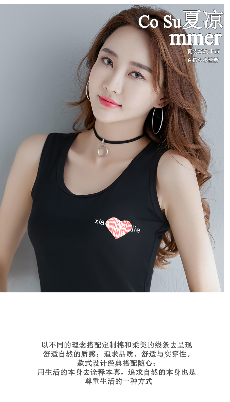 2019夏裝新款女士吊帶背心內搭愛心印花吊帶打底衫無袖上衣外穿潮