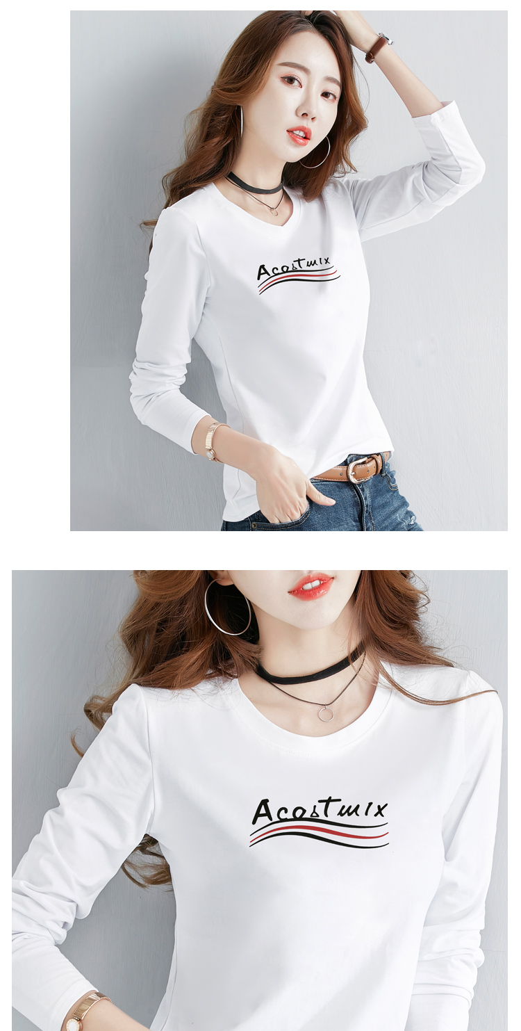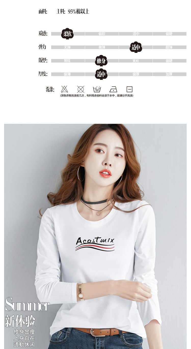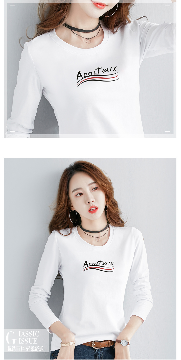 2019春季新款韓版簡約純棉白色長袖t恤女百搭顯瘦打底小衫上衣服