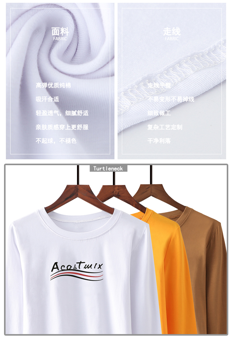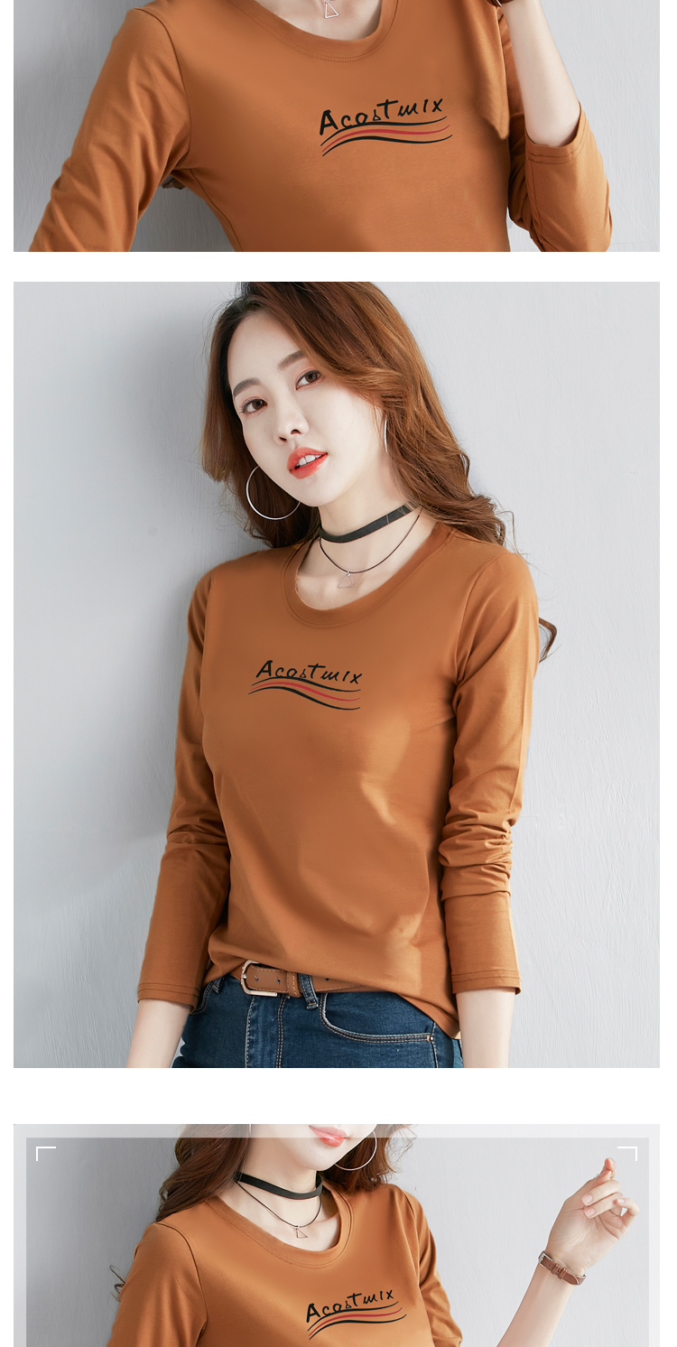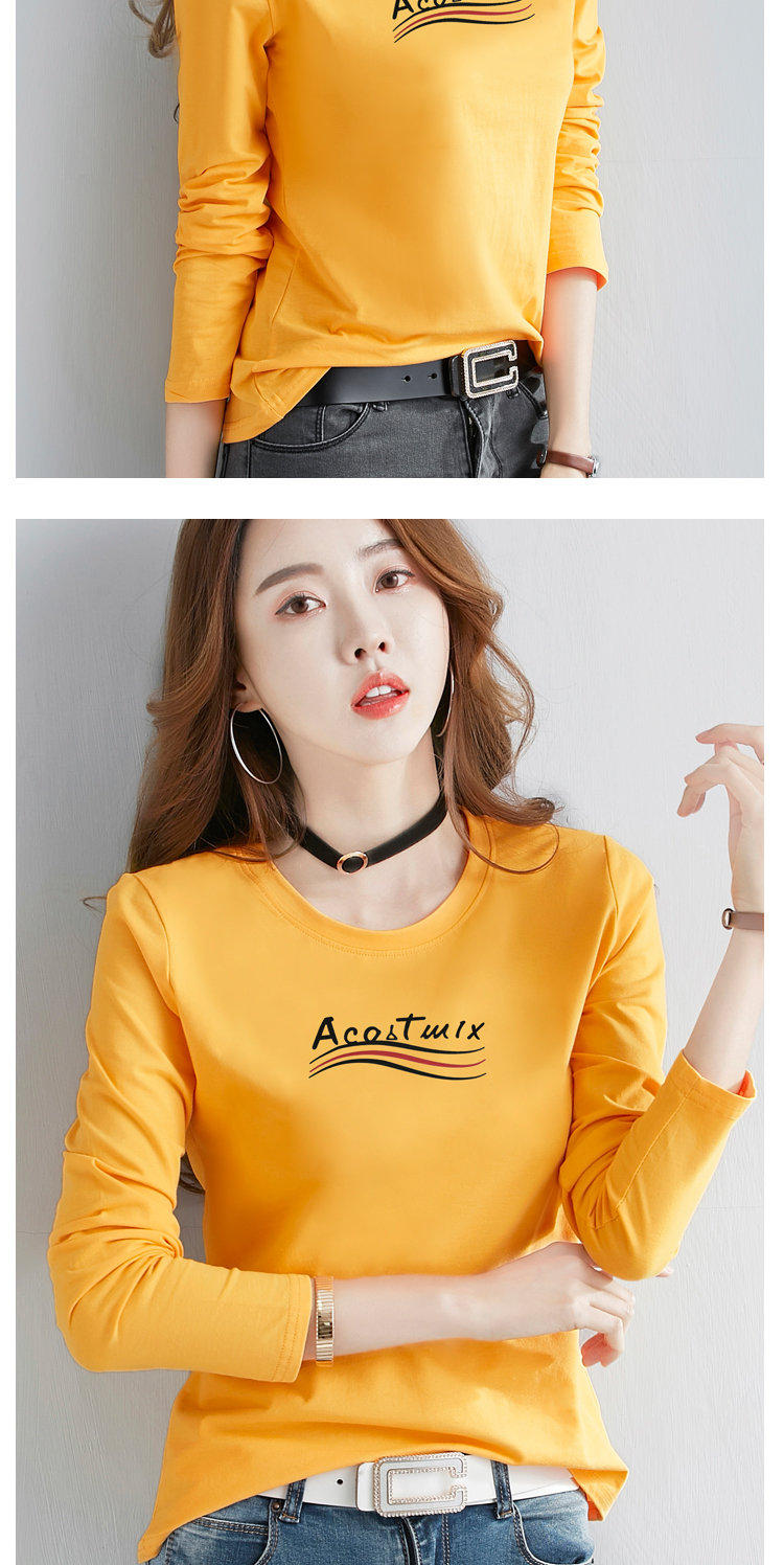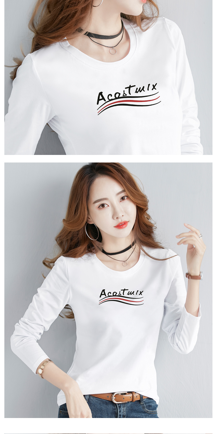2019春季新款韓版簡約純棉白色長袖t恤女百搭顯瘦打底小衫上衣服