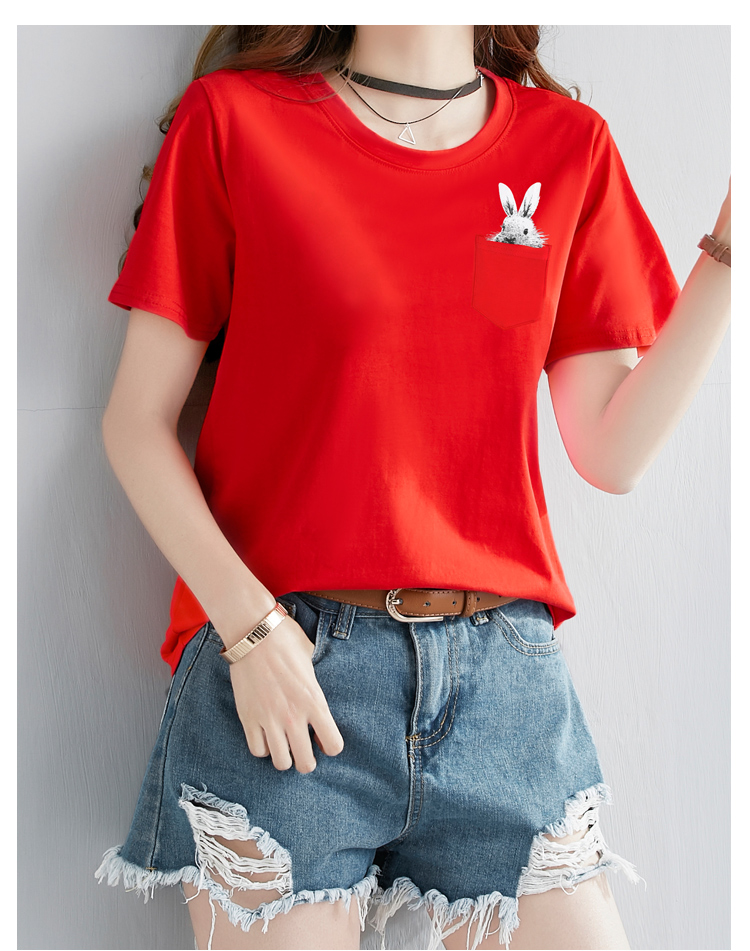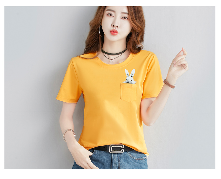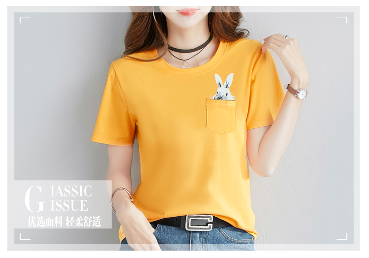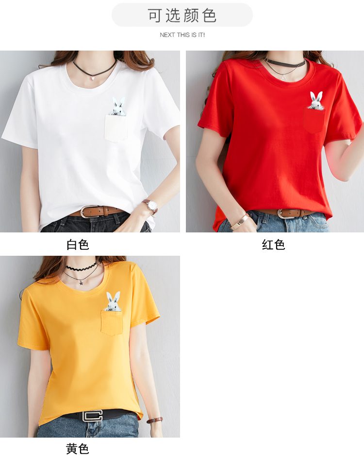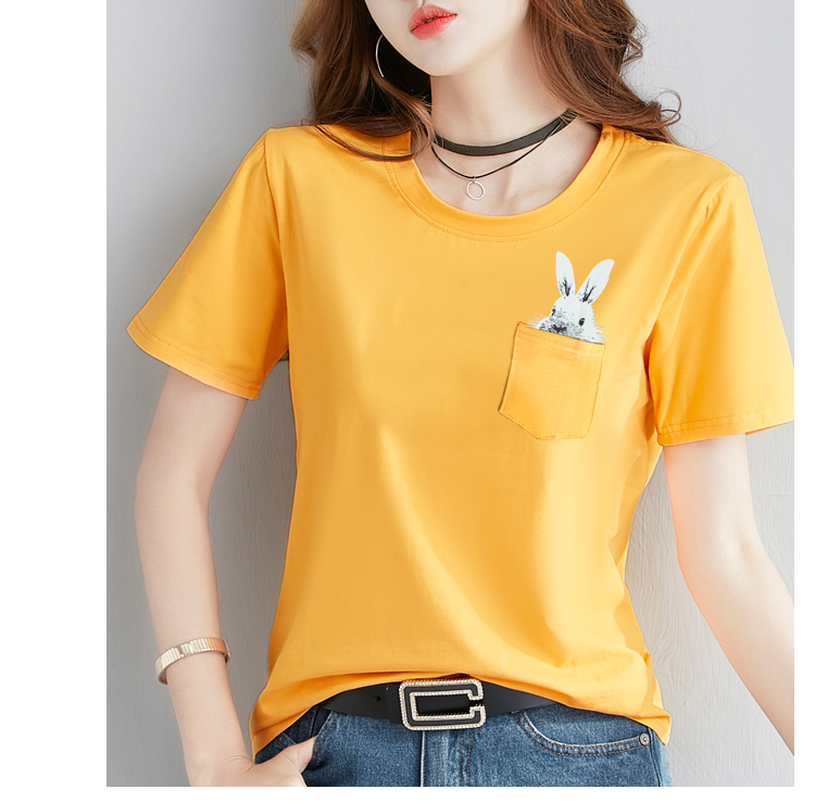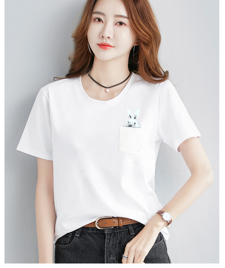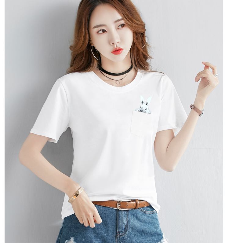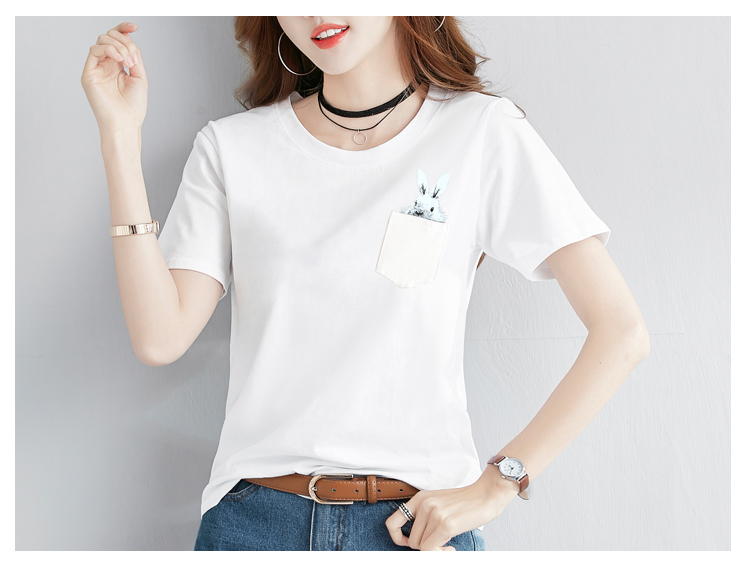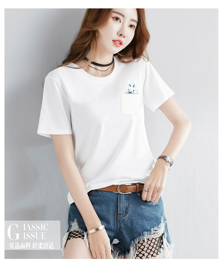 2019夏裝新款韓范ins白色T恤女短袖學生卡通口袋半袖體恤女上衣服