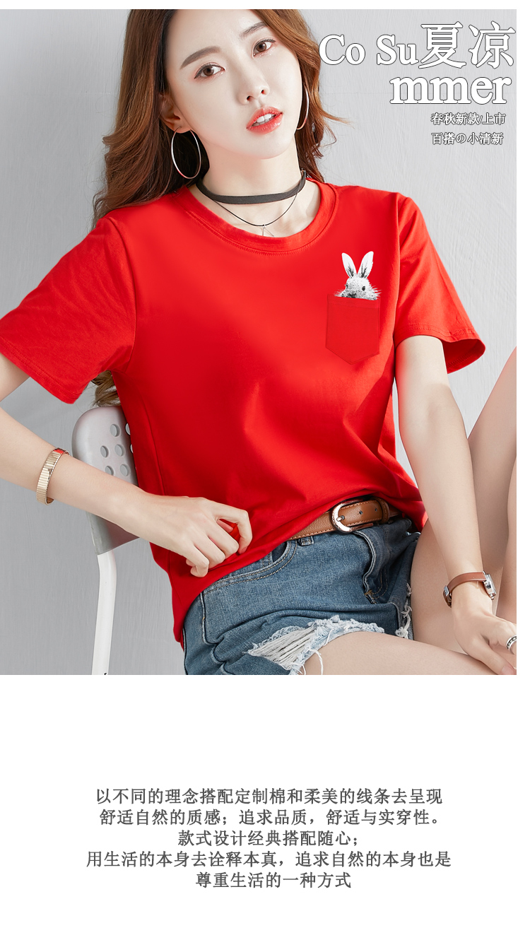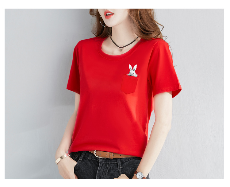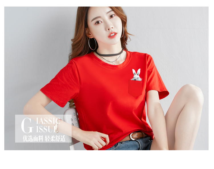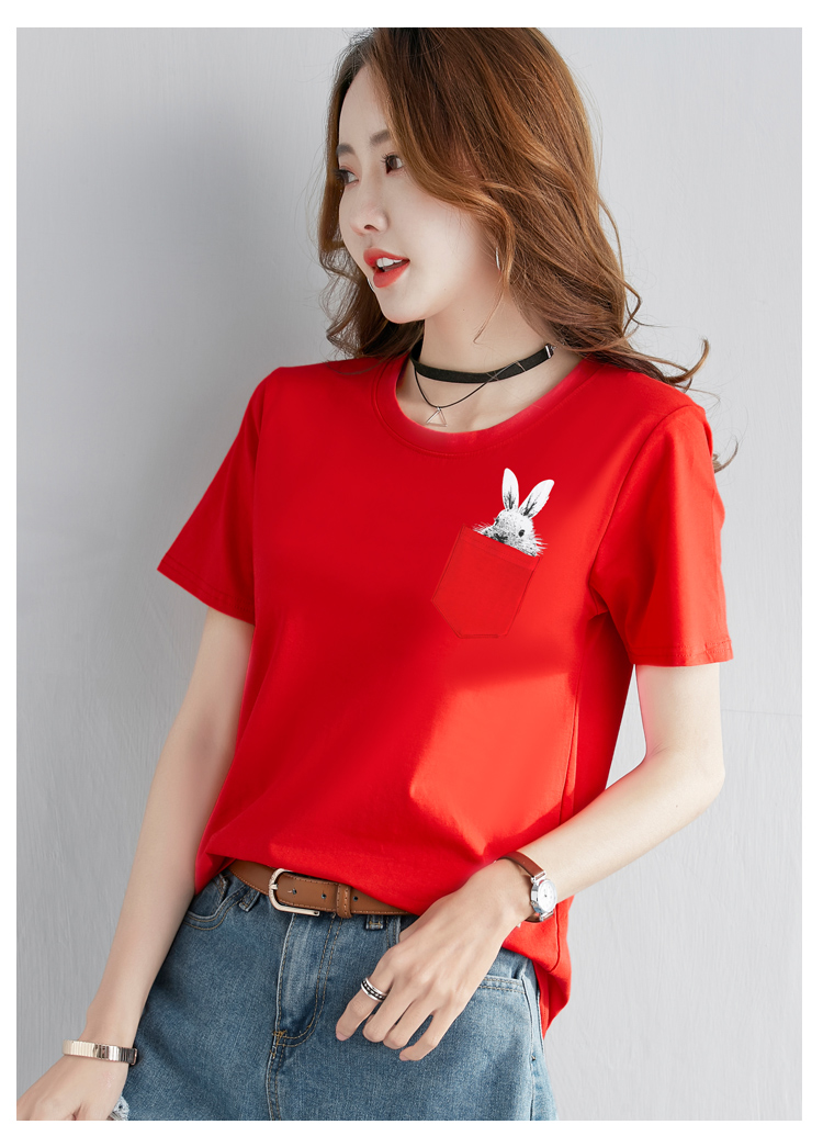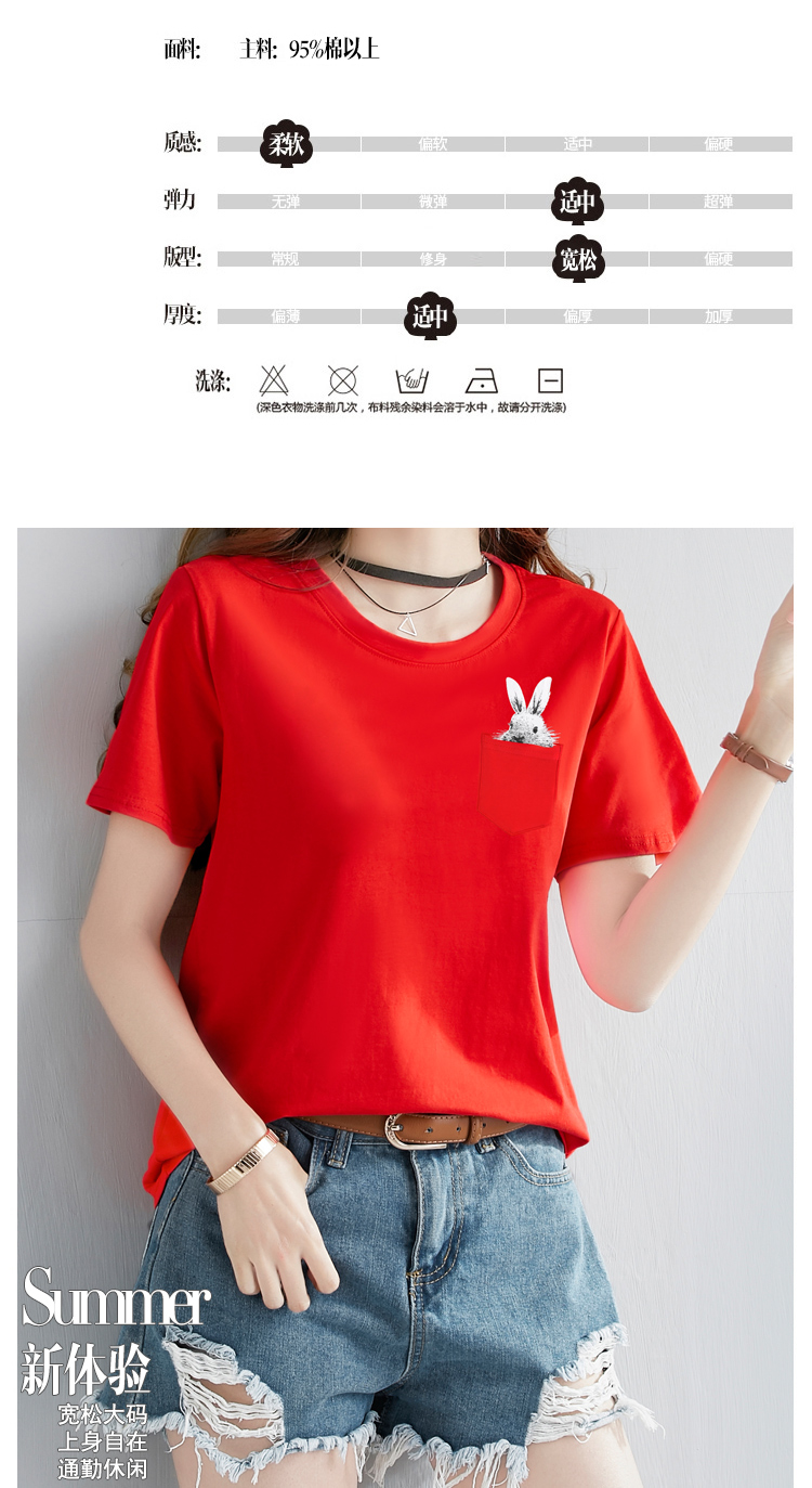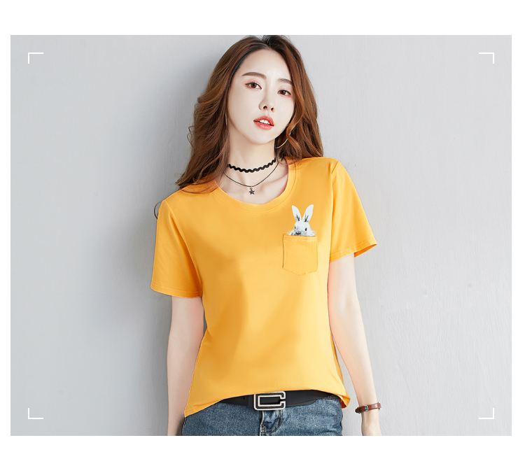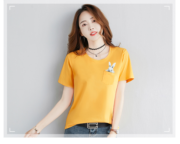2019夏裝新款韓范ins白色T恤女短袖學生卡通口袋半袖體恤女上衣服