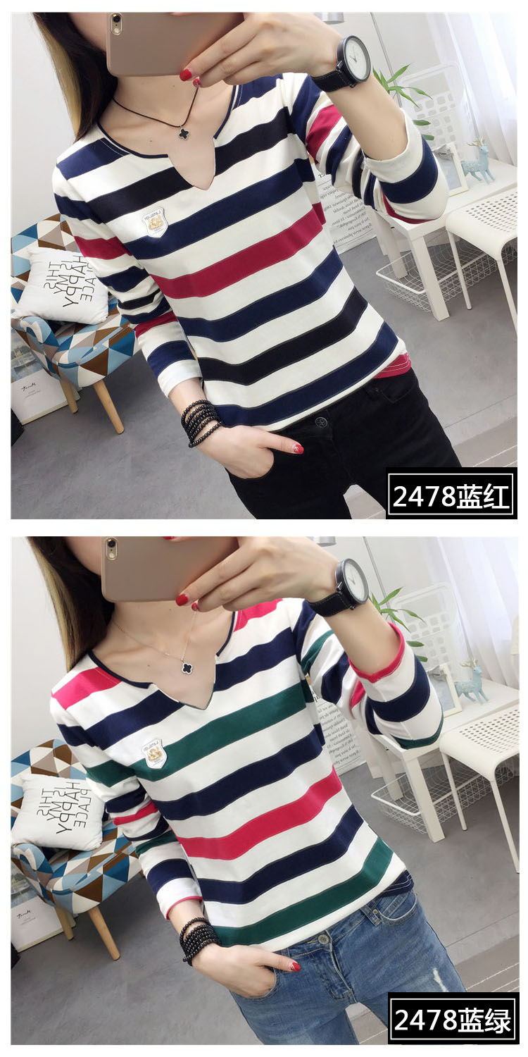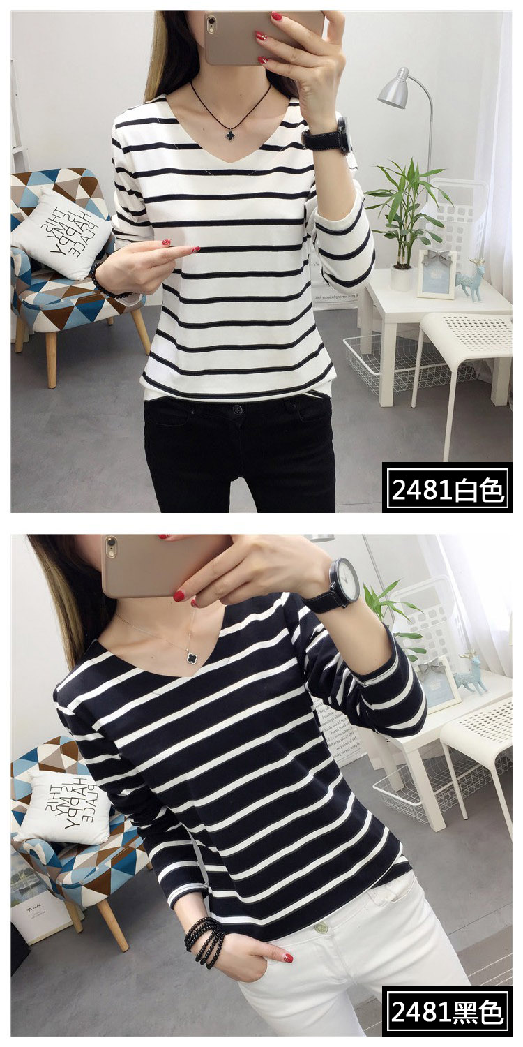 2018秋裝新款純棉條紋長袖t恤女韓版體恤小衫修身顯瘦打底衫上衣