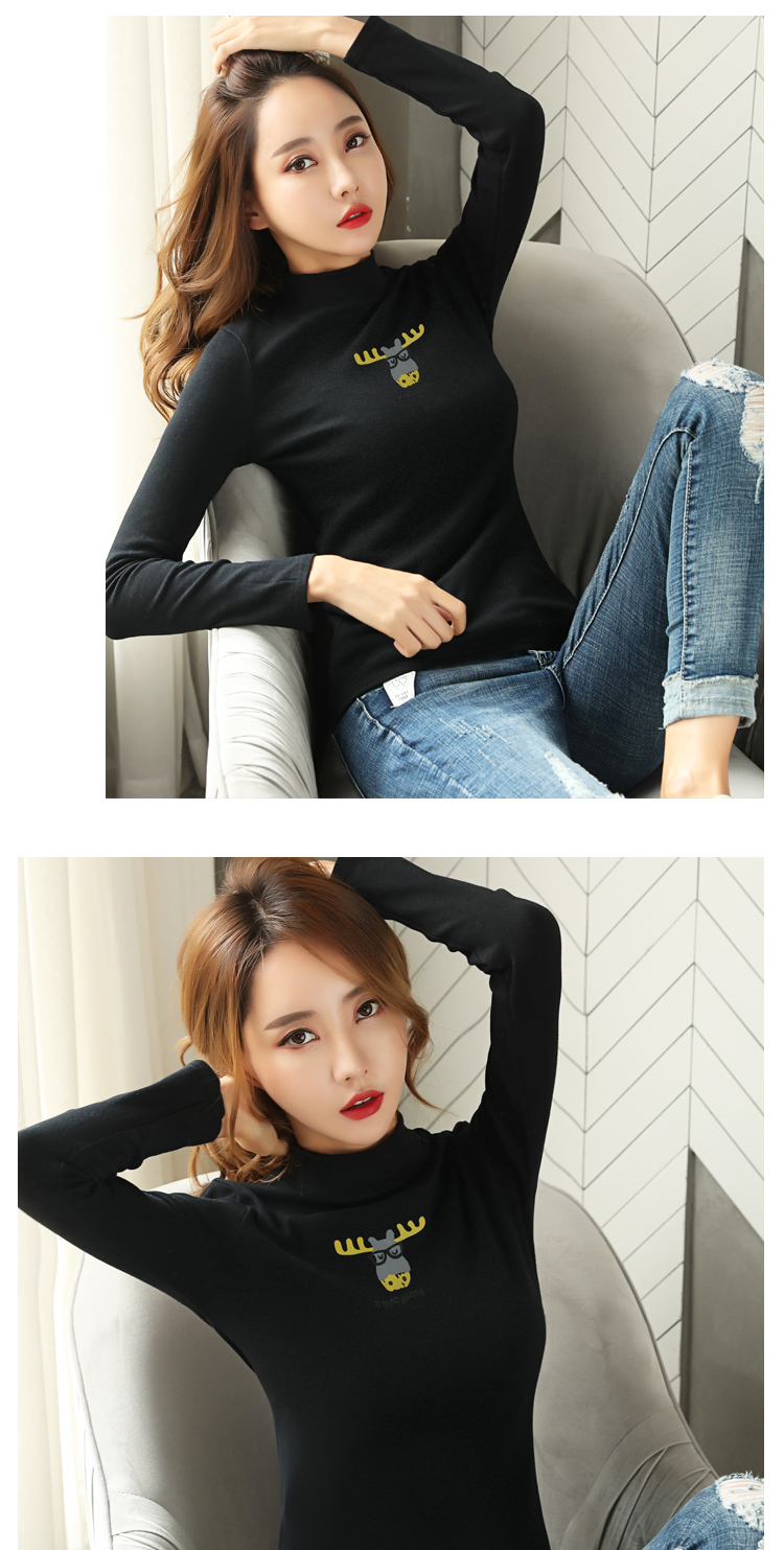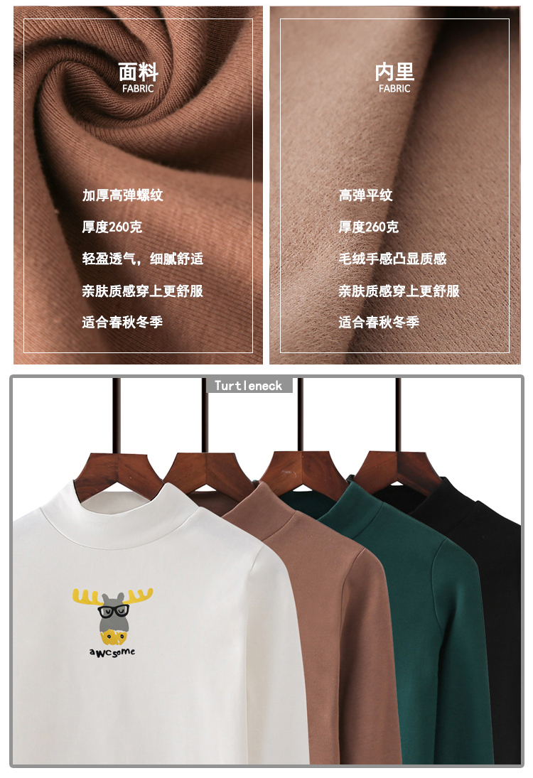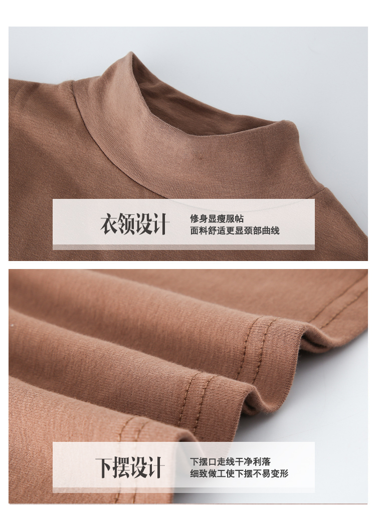2018秋冬新款韓版半高領打底衫女純棉緊身顯瘦綠色長袖t恤女上衣