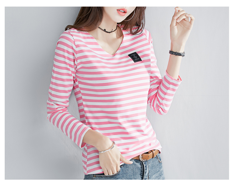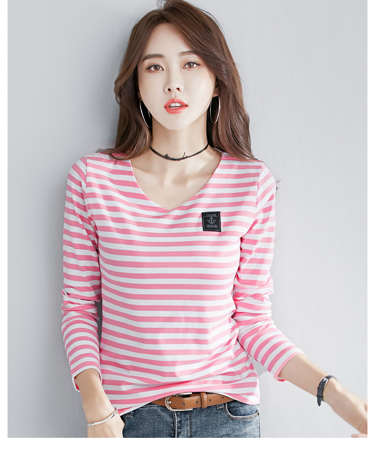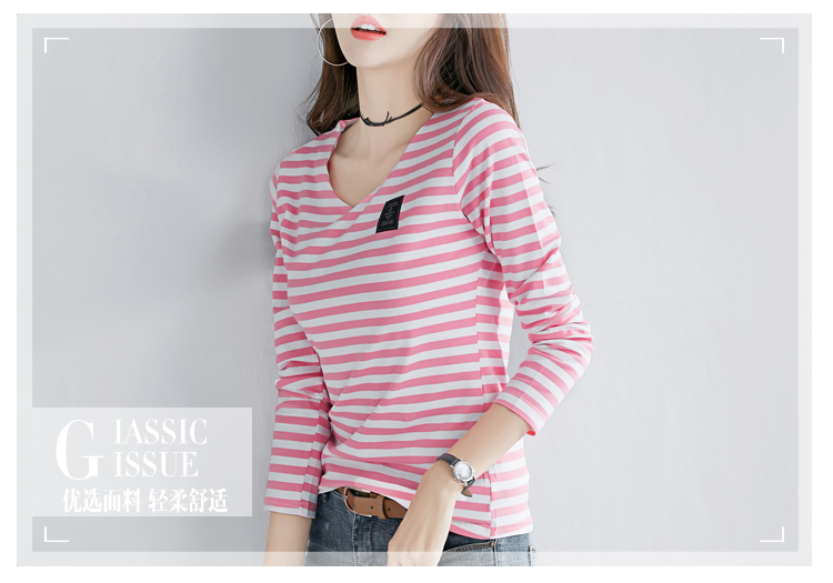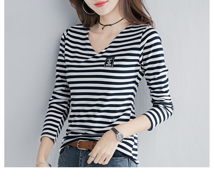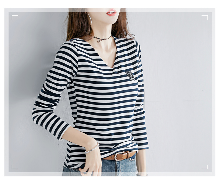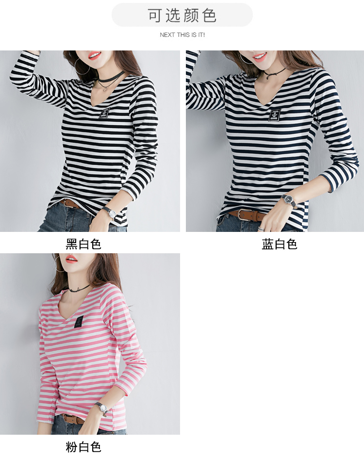 2019春季新款黑白條紋打底衫女長袖t恤棉百搭修身顯瘦體恤上衣服
