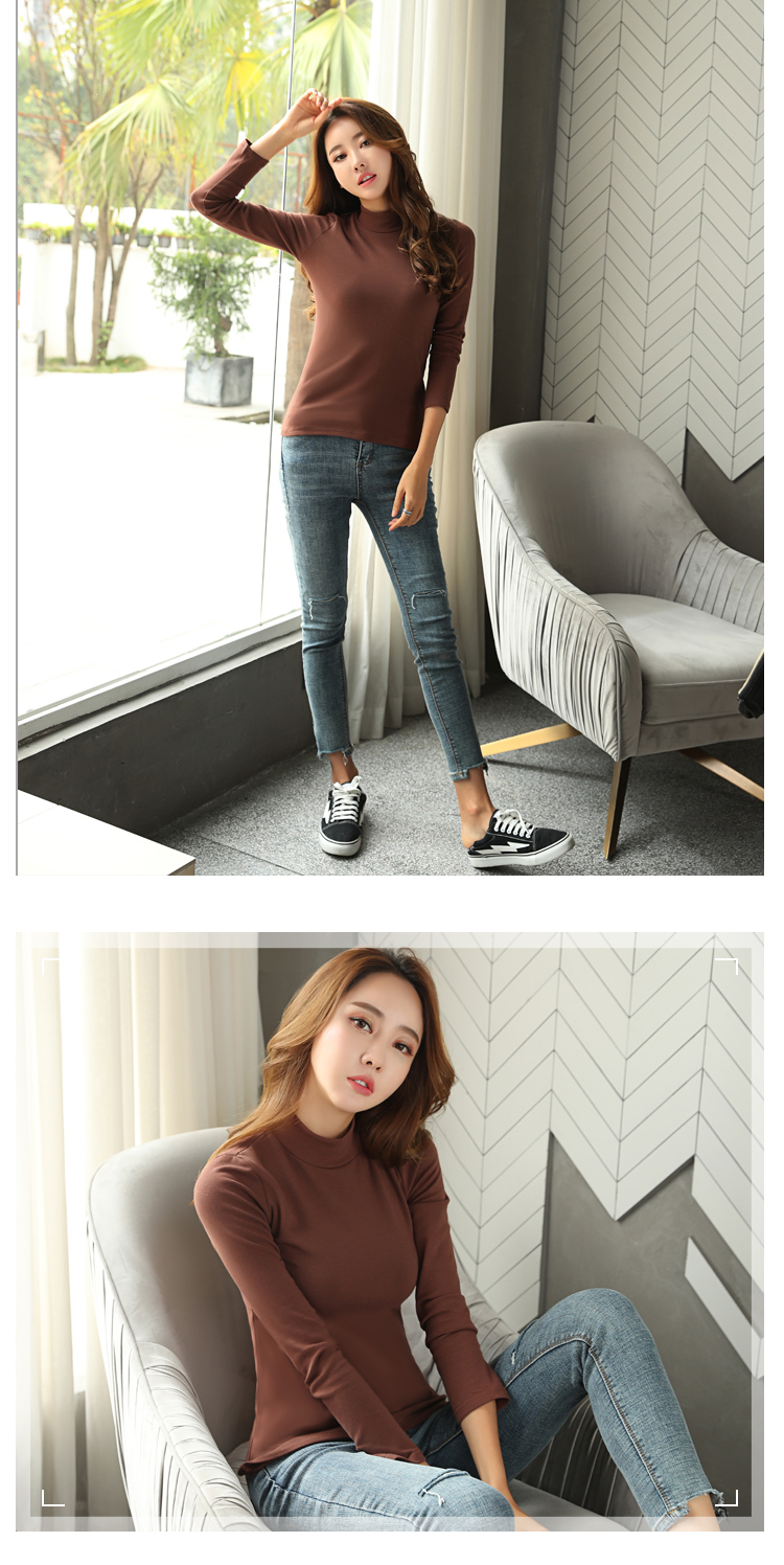 2018秋冬裝新款純色長袖t恤女上衣修身學生純棉加厚半高領打底衫