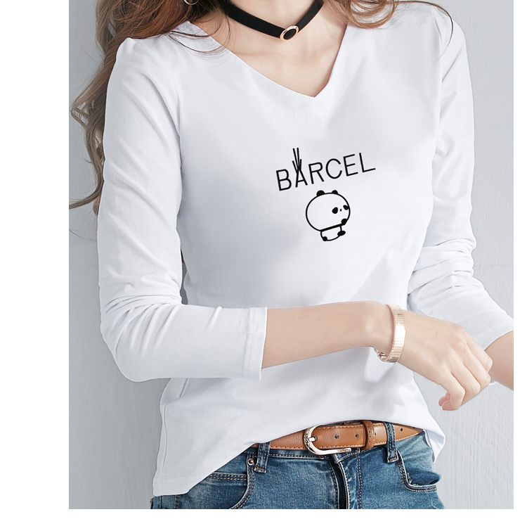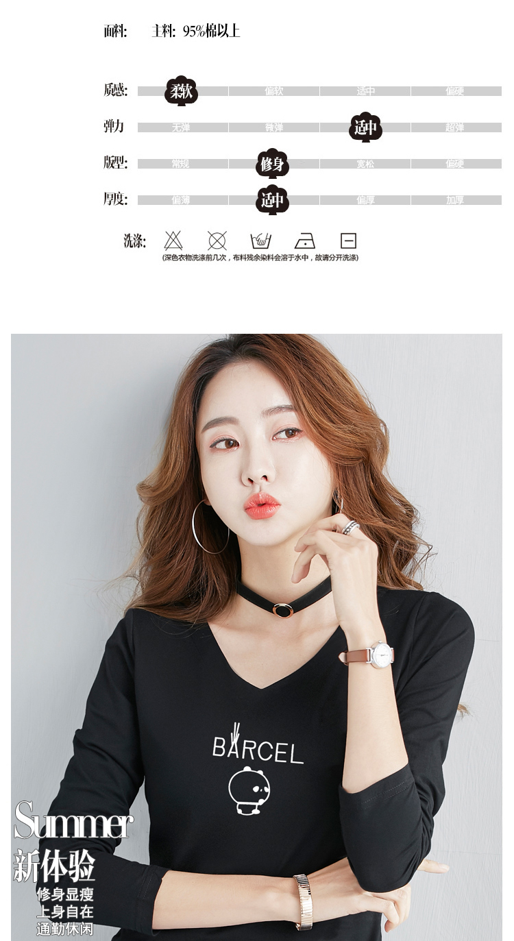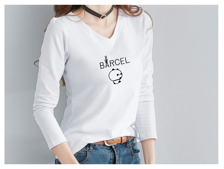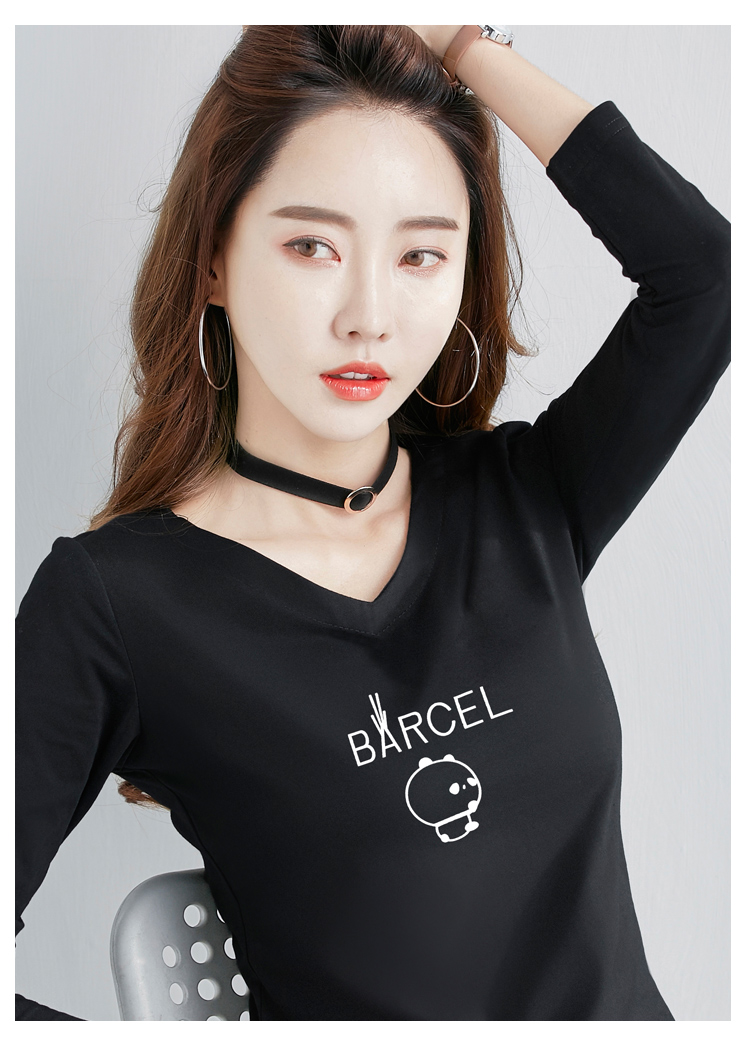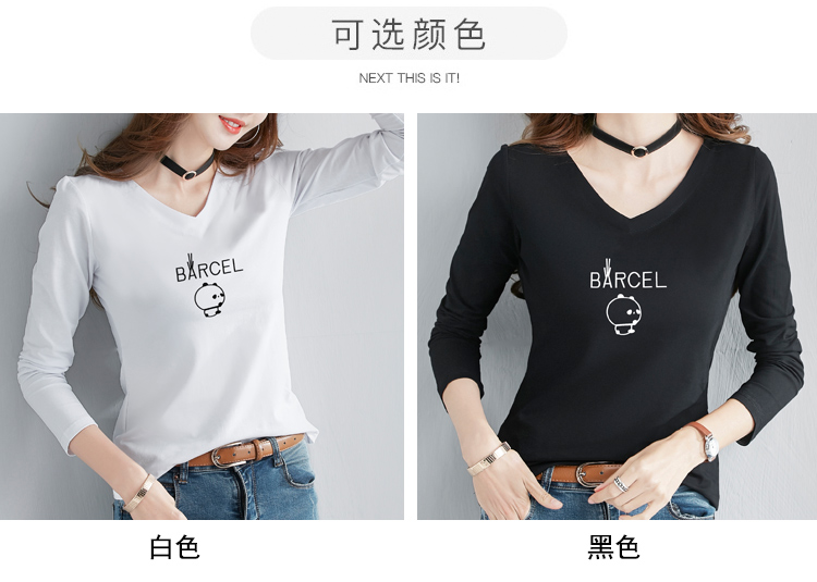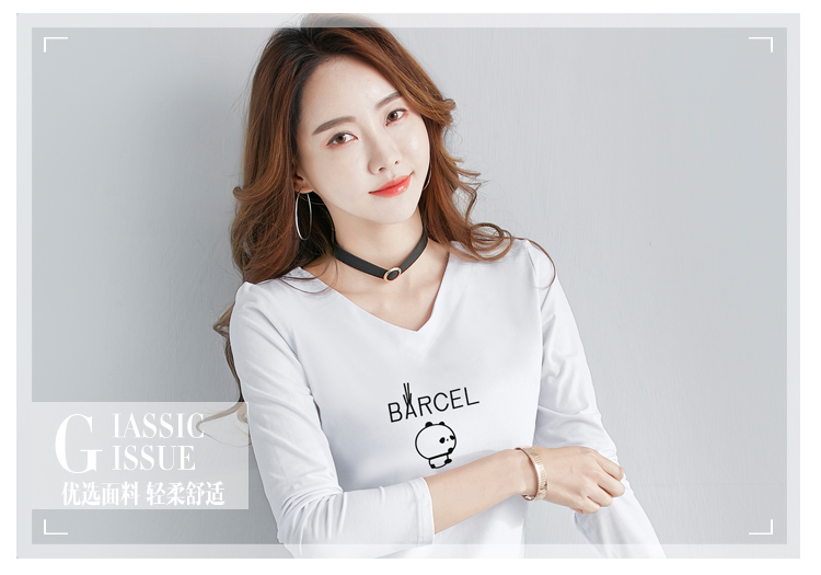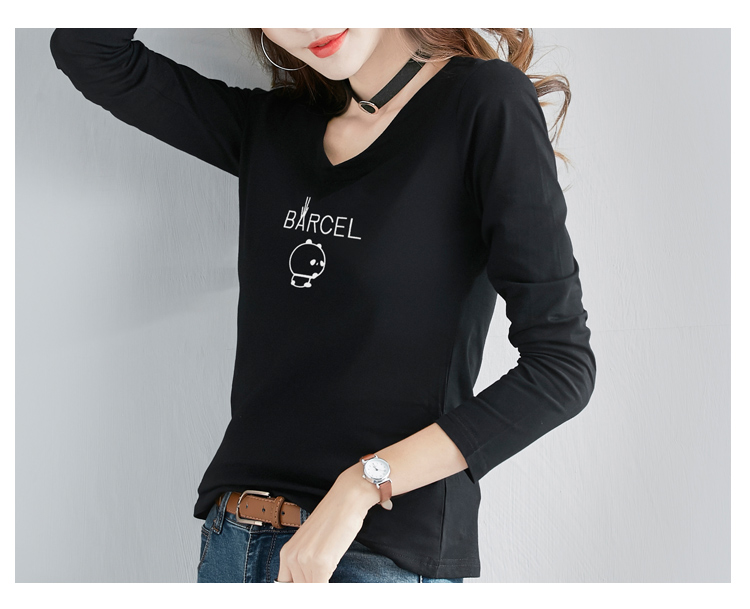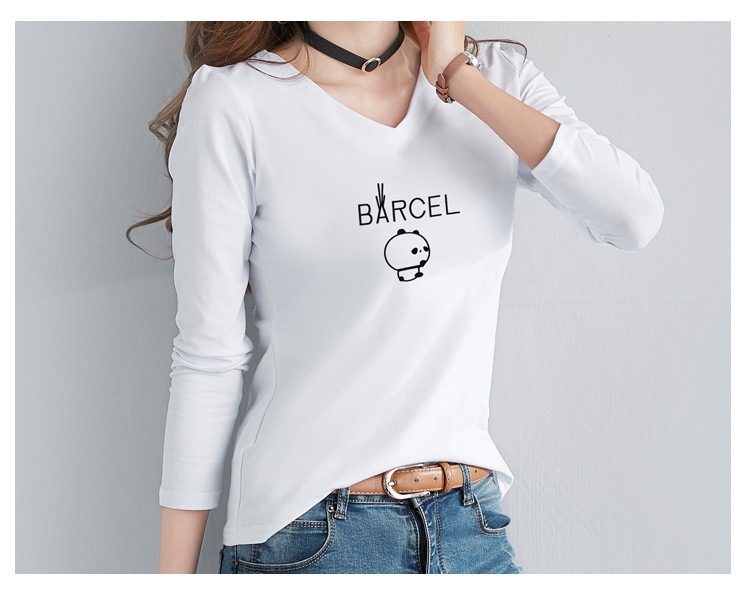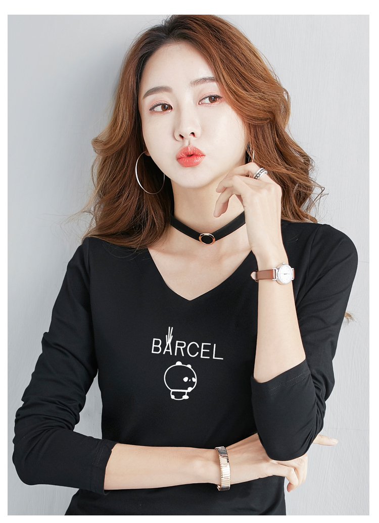 2019春裝新款V領純棉長袖t恤女上衣修身顯瘦字母韓版百搭打底衫潮