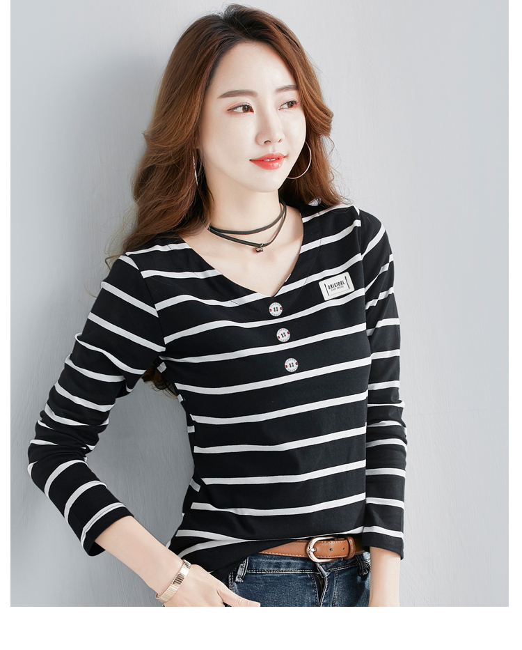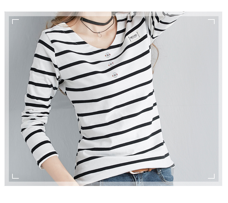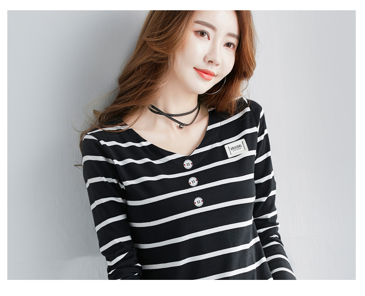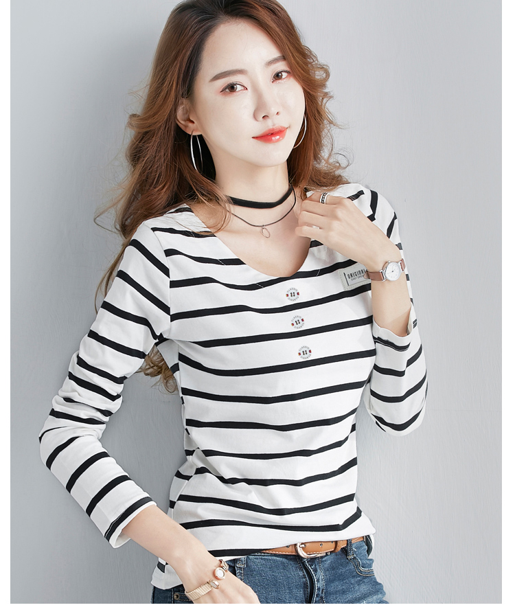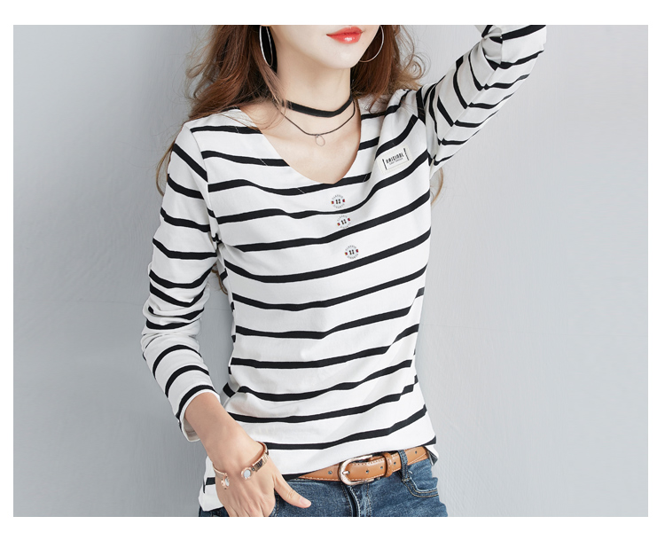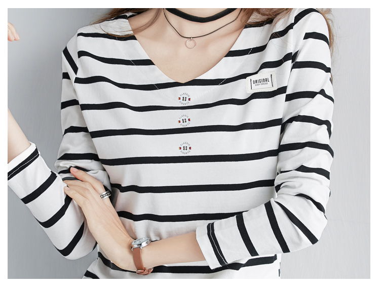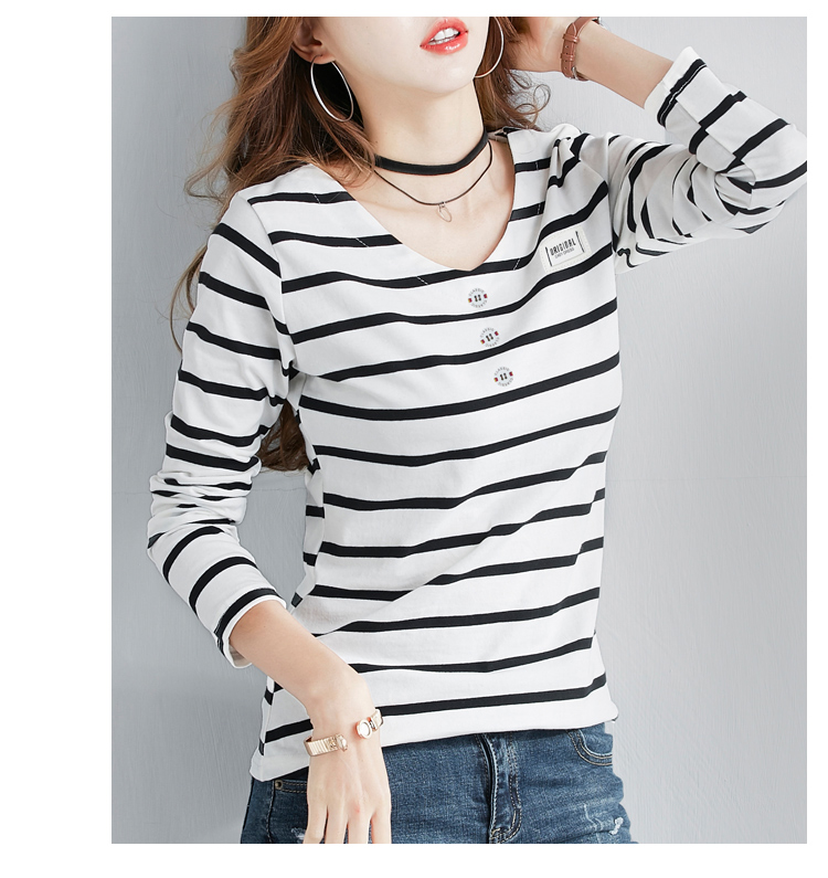 2019春裝新款韓版黑白條紋上衣女百搭顯瘦純棉打底衫長袖t恤女裝
