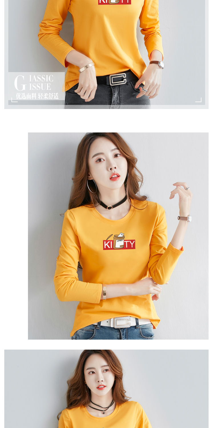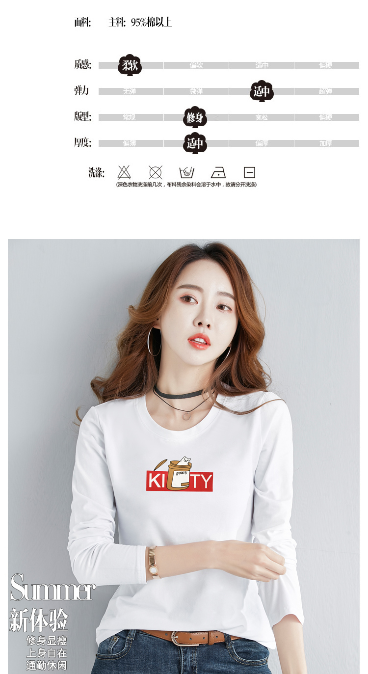 2019春季新款韓版純棉白色長袖t恤女百搭顯瘦打底衫女體恤上衣服