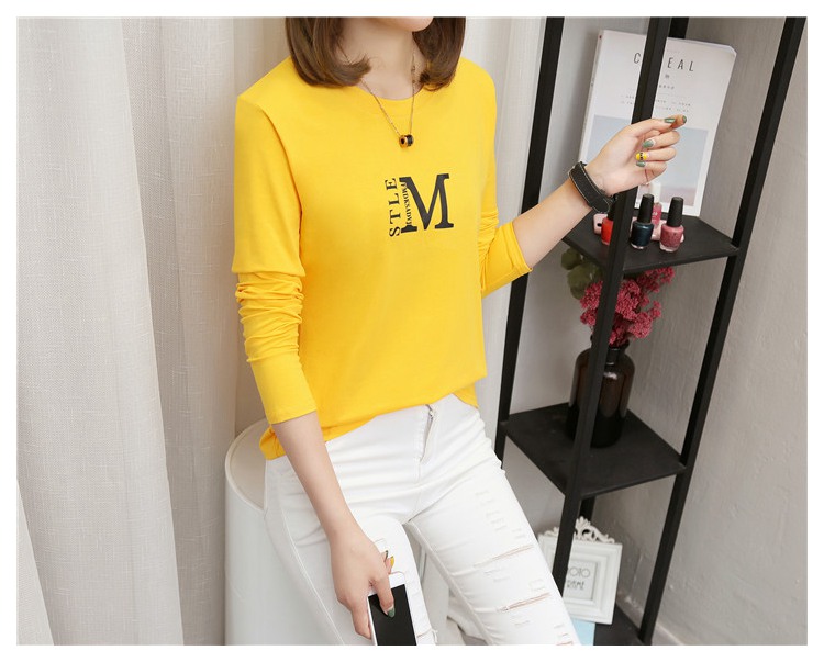 2018新款秋裝韓范字母印花長袖t恤女寬松顯瘦純棉百搭上衣打底衫