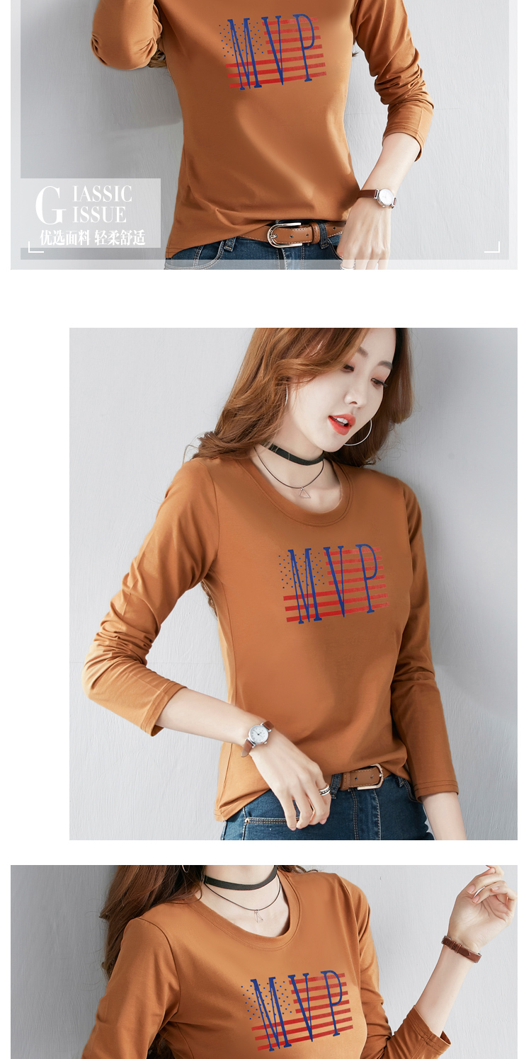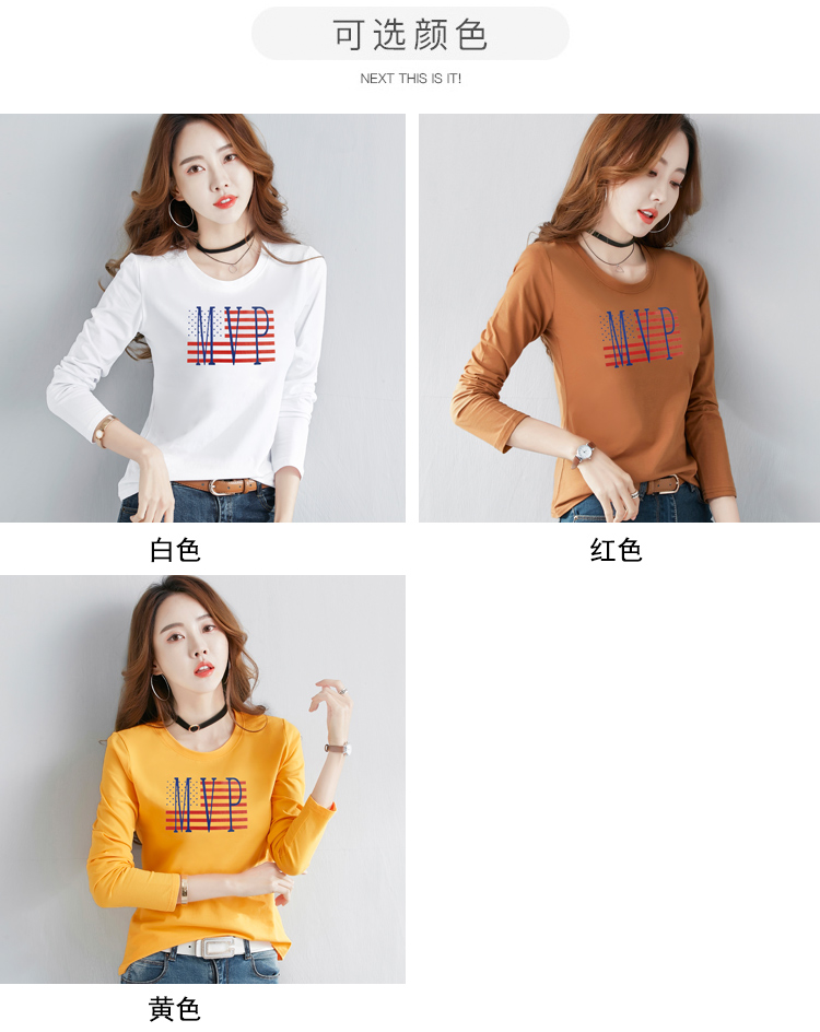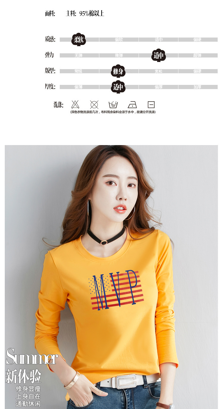 2019早春新款上衣韓版字母百搭純棉長袖t恤女內搭顯瘦打底衫體恤