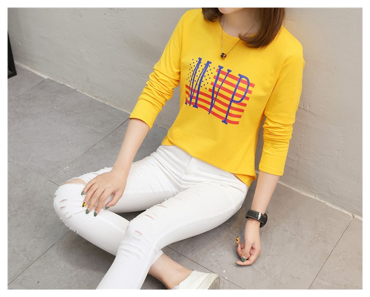 長袖t恤女2018秋裝新款修身顯瘦字母純棉韓版學生打底衫女上衣潮