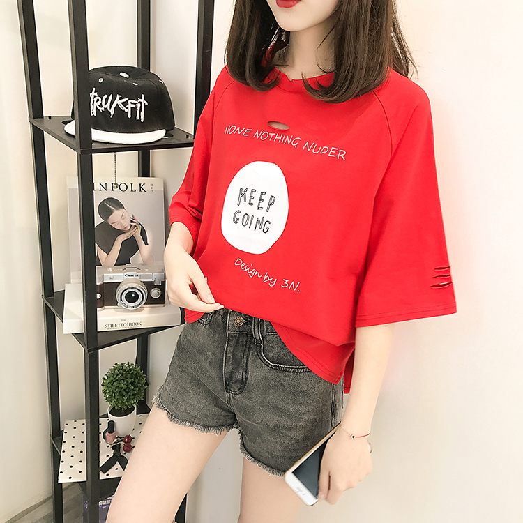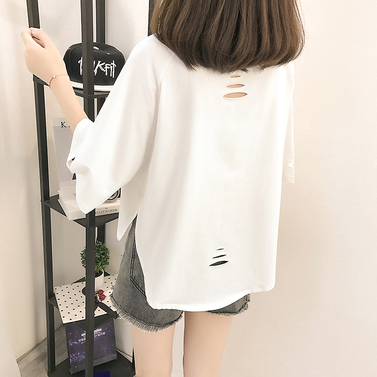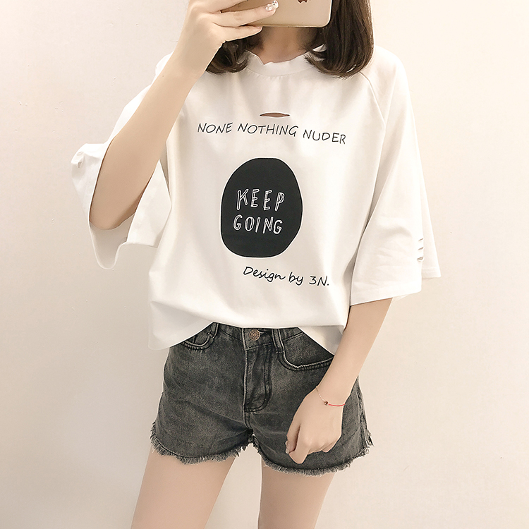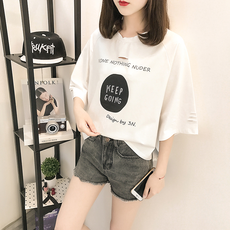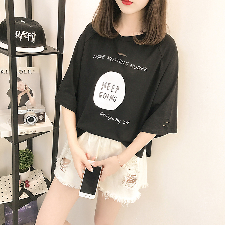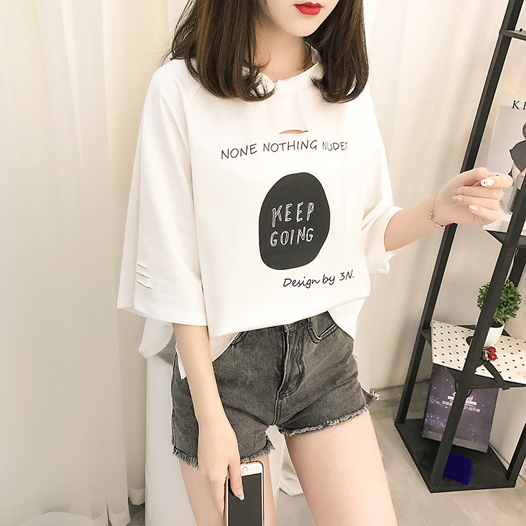 [2]夏裝2019新款破洞寬松短袖t恤女裝韓版百搭港味小心機上衣超火cec