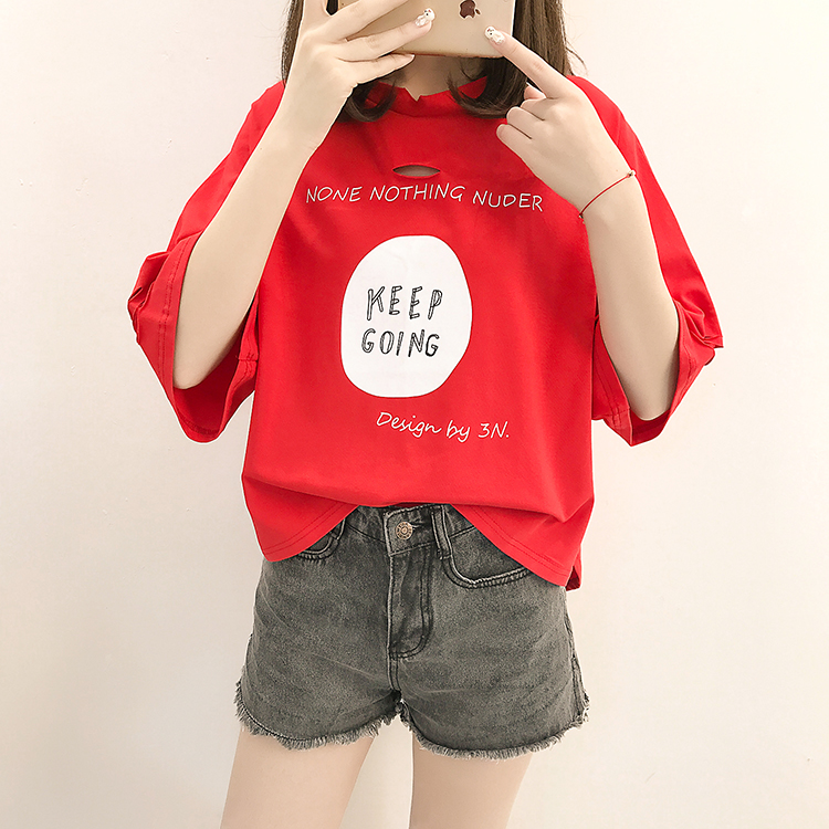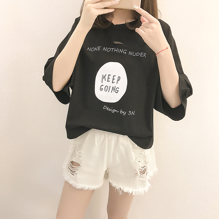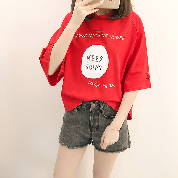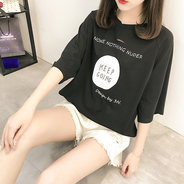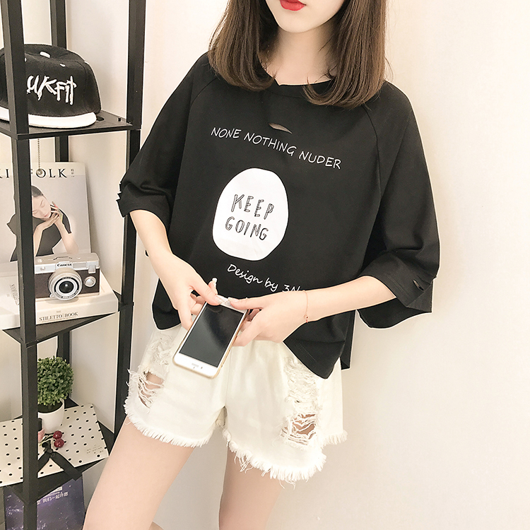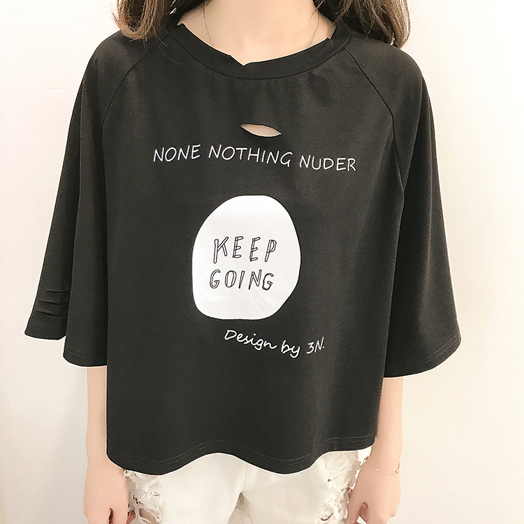 [2]夏裝2019新款破洞寬松短袖t恤女裝韓版百搭港味小心機上衣超火cec