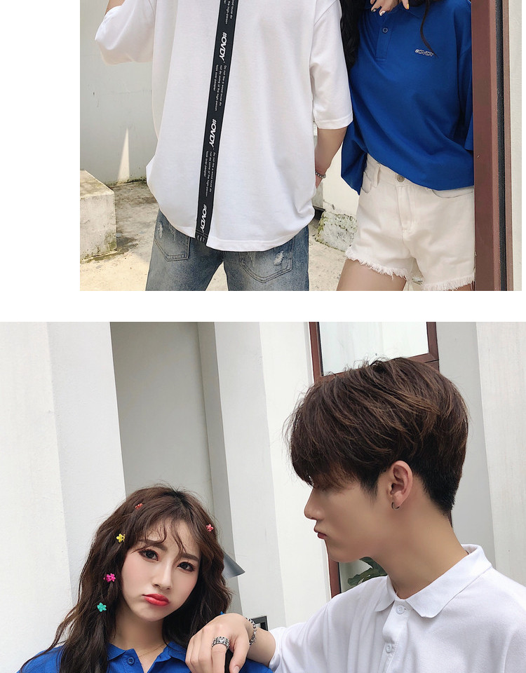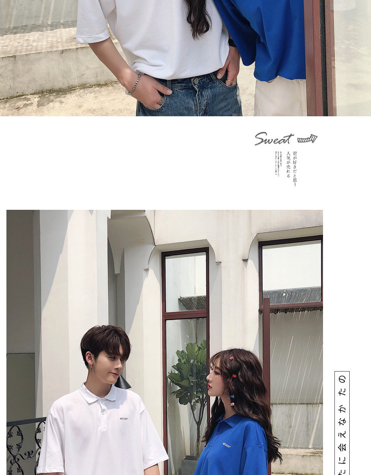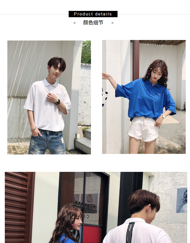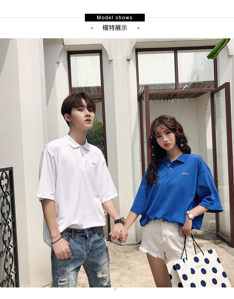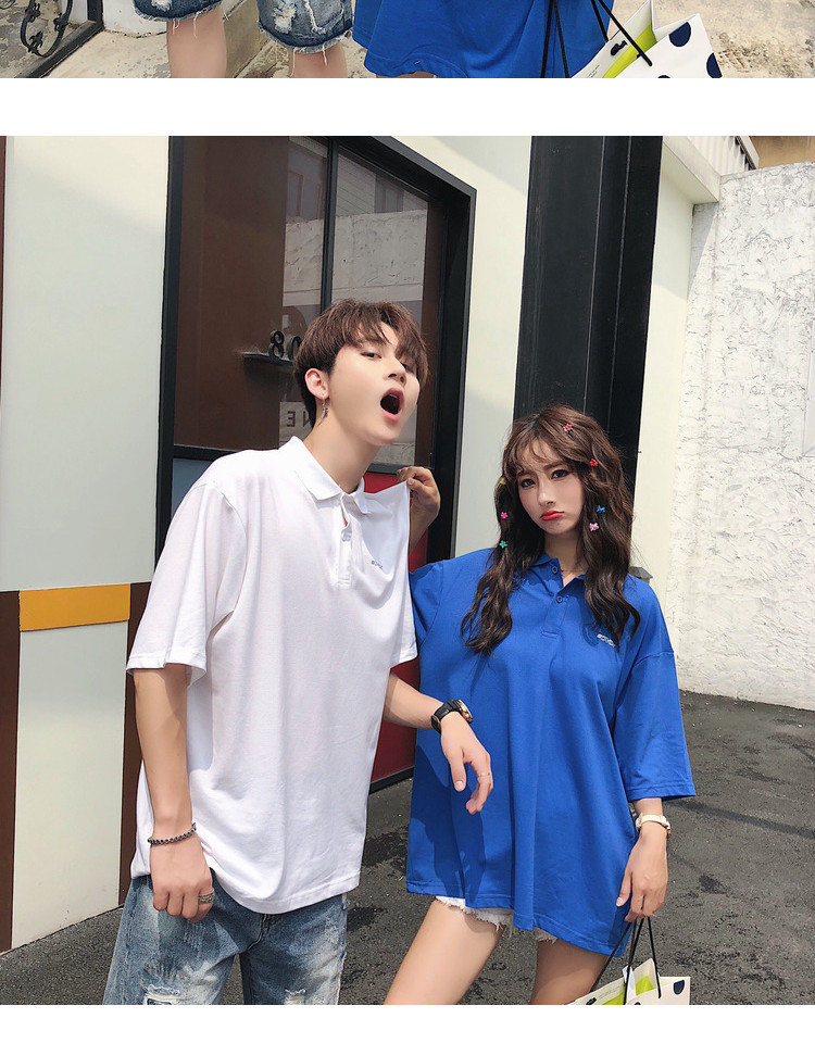 [2]情侶裝夏裝2019新款ins小眾設計感純棉百搭POLO領短袖t恤女班服