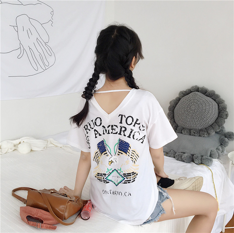 [2]白色短袖t恤女2019夏新款韓版寬松ins潮百搭露背心機上衣超火cec