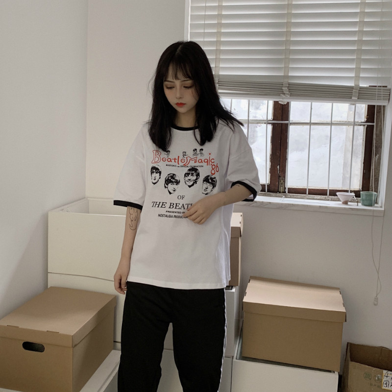 [2]超火cec純棉網紅短袖T恤女2019夏裝新款寬松ins潮白色學生上衣服