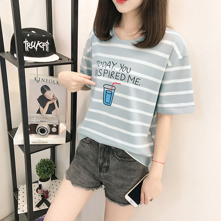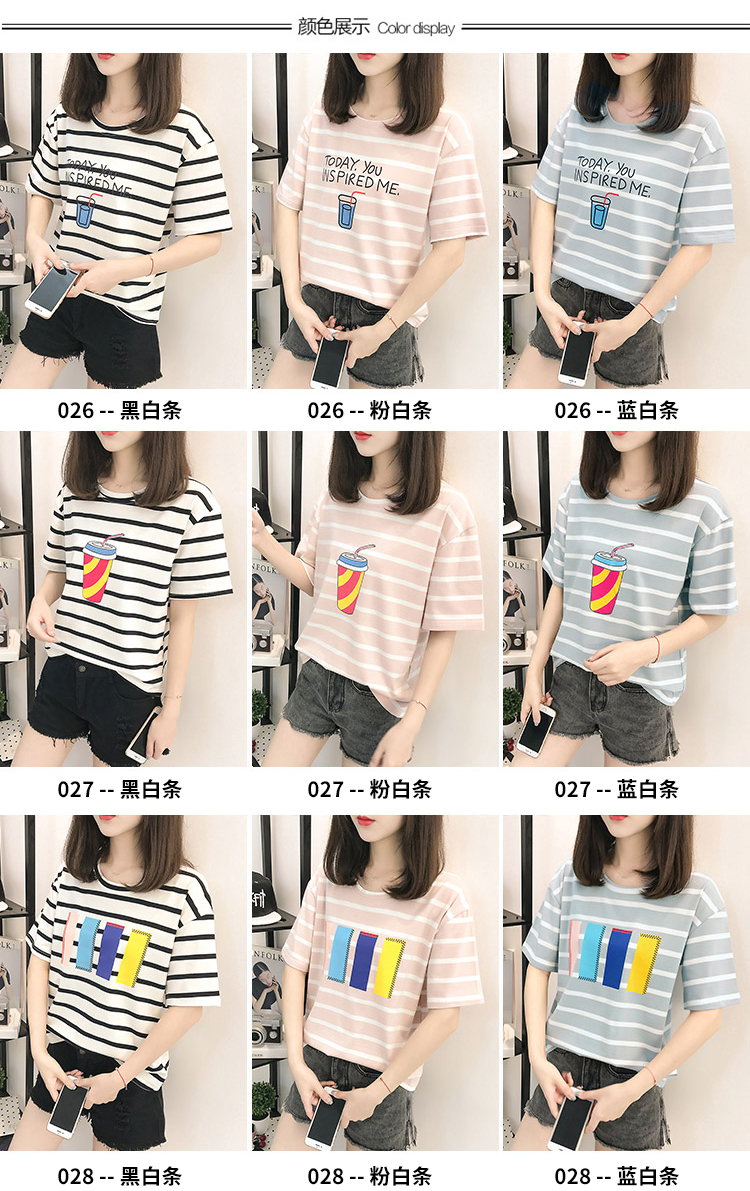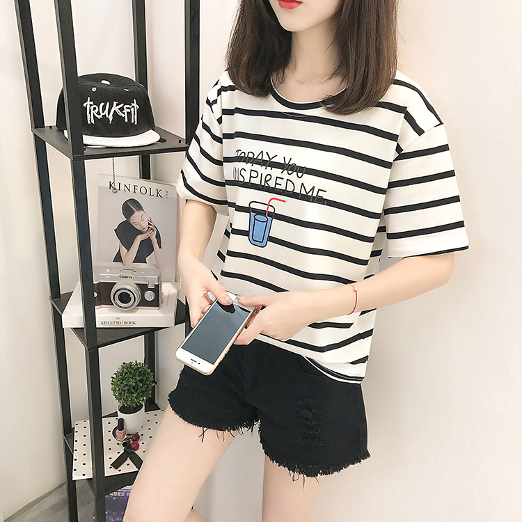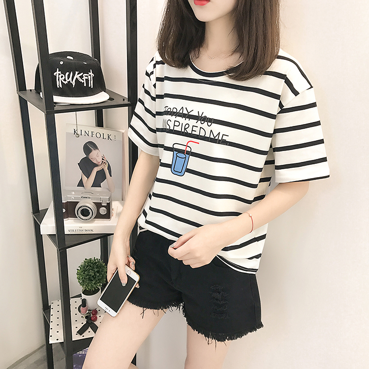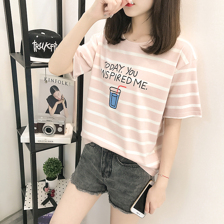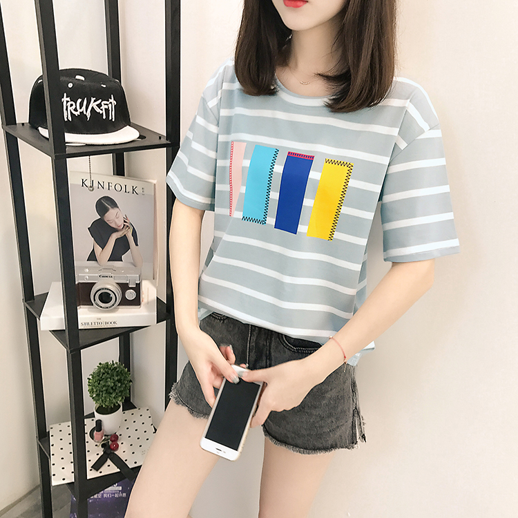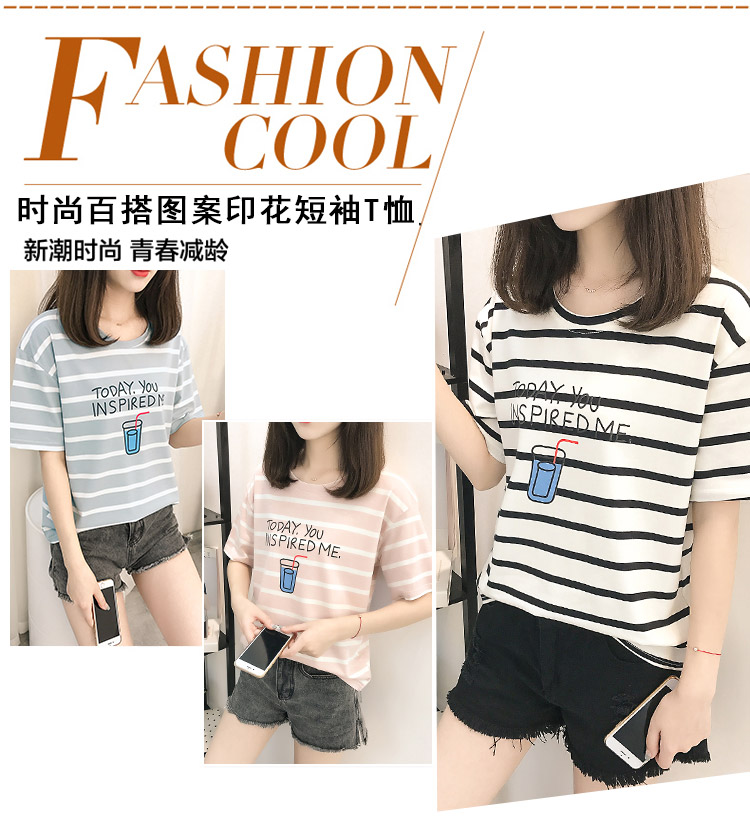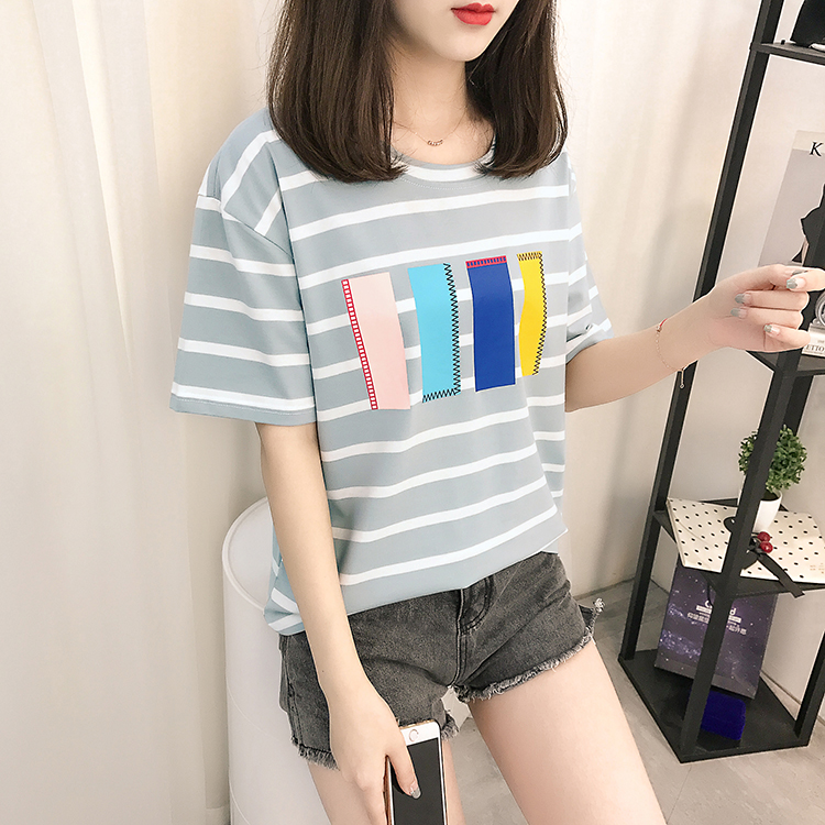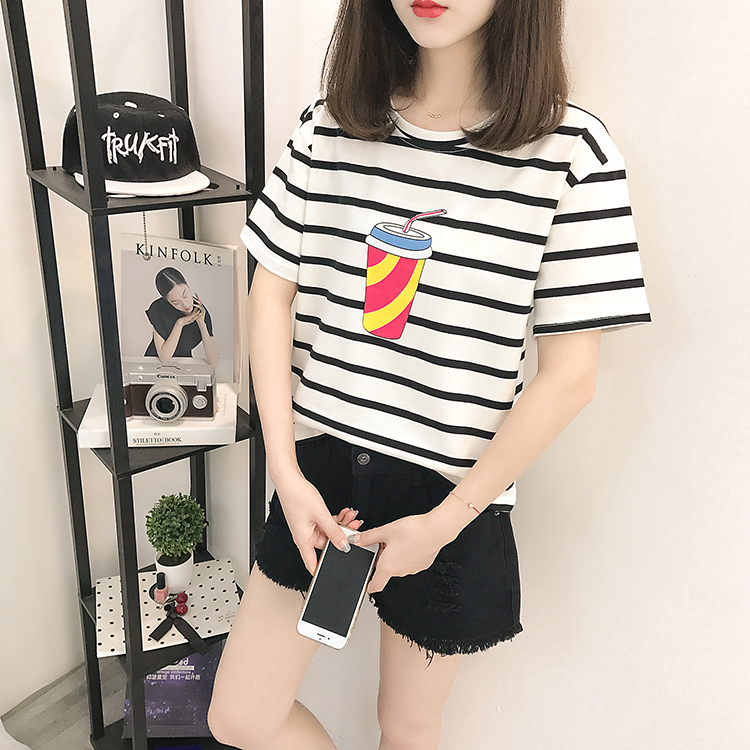 [2]港味2019夏裝韓版新款超火cec條紋純棉百搭短袖t恤女ins上衣服潮