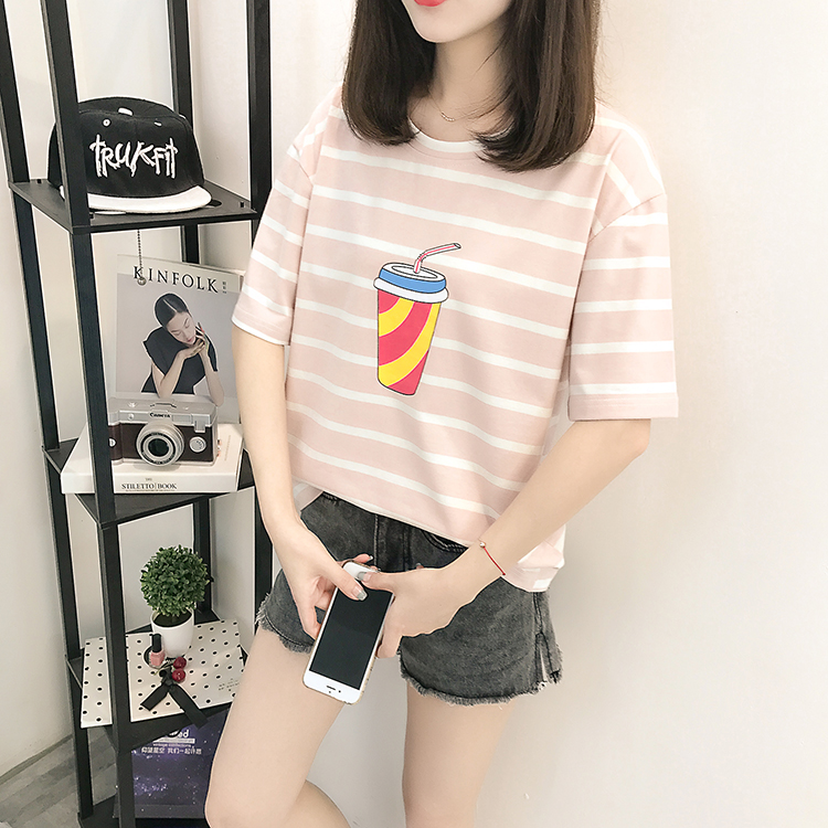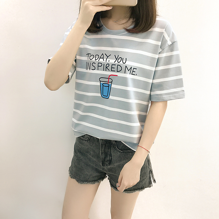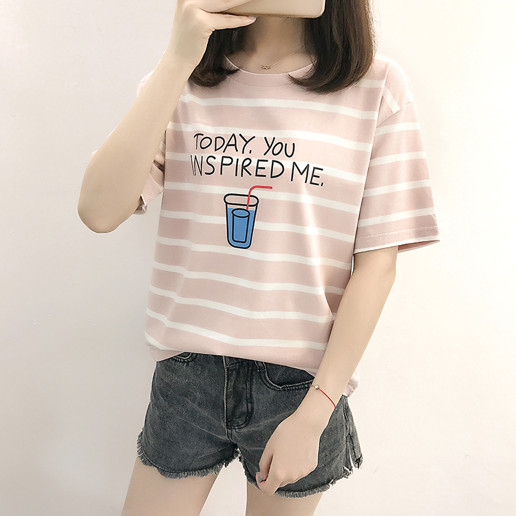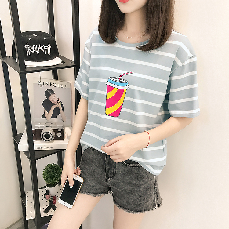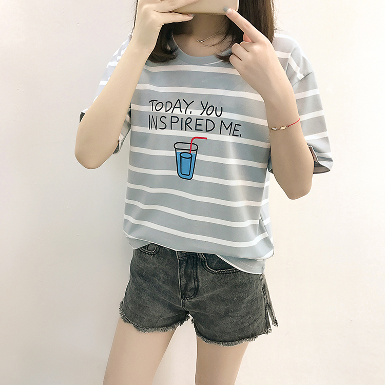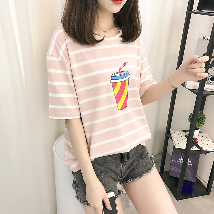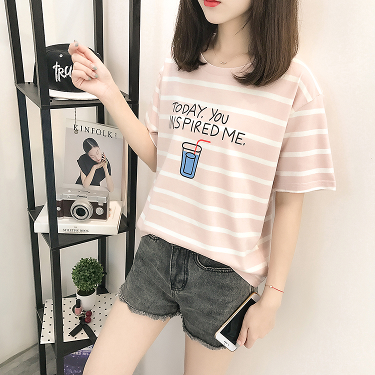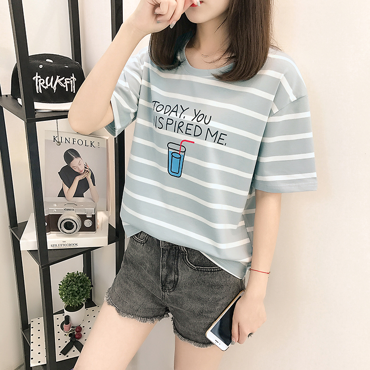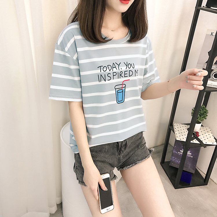 [2]港味2019夏裝韓版新款超火cec條紋純棉百搭短袖t恤女ins上衣服潮