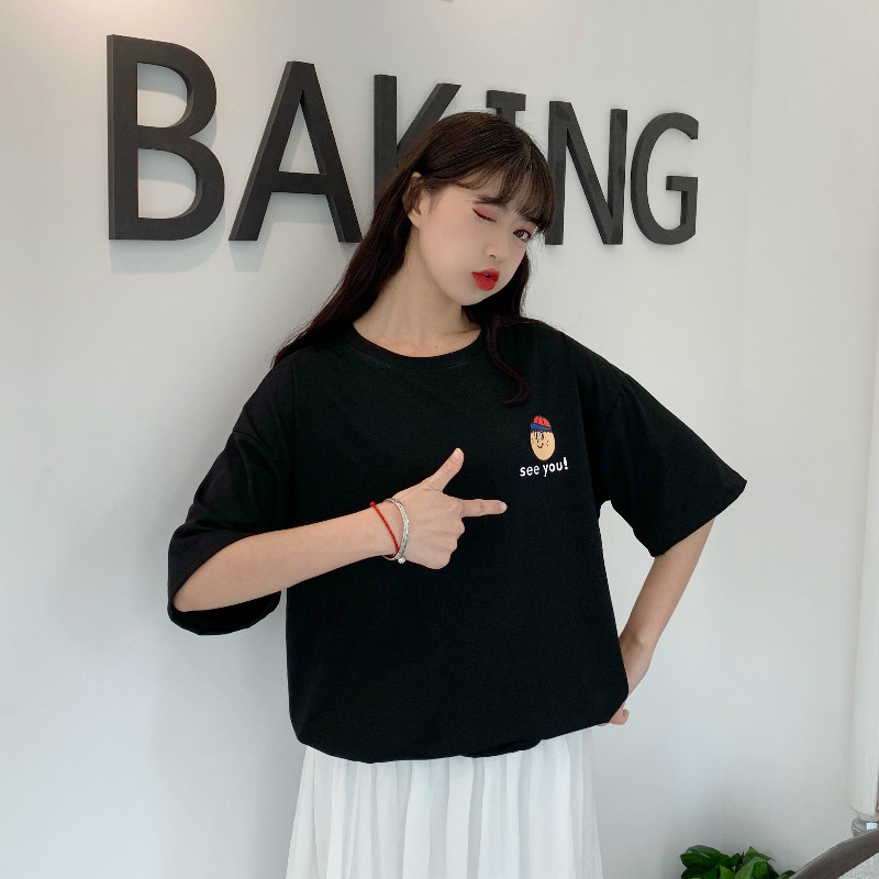 [2]網紅港味寬松ins潮黑色短袖t恤女裝2019夏季韓版百搭超火cec上衣