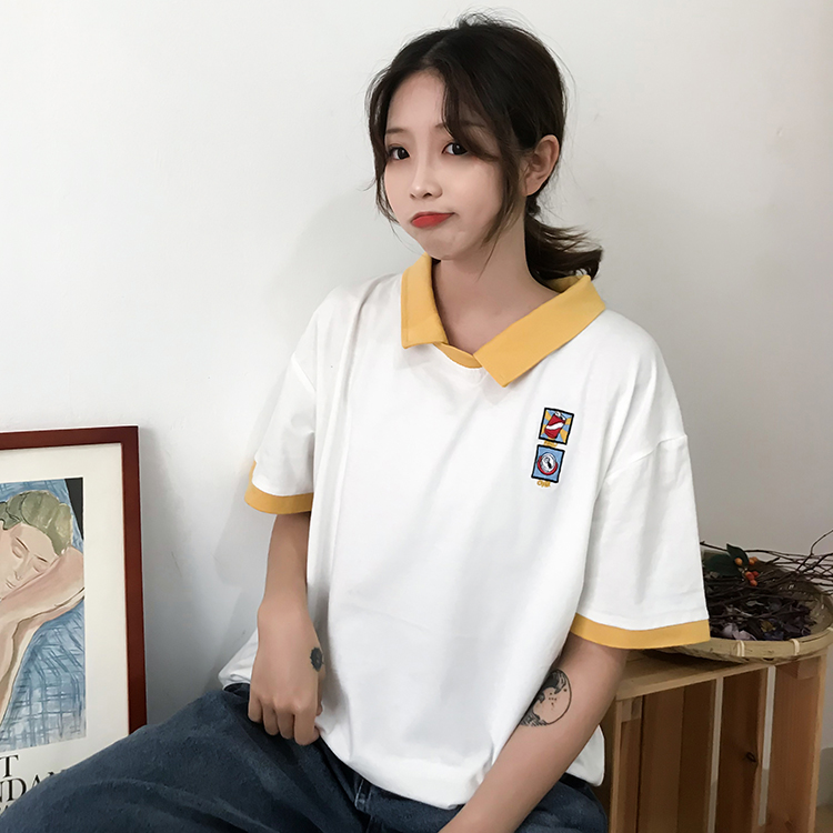 [2]軟妹polo衫女短袖刺繡夏裝2019新款寬松上衣學生韓版百搭翻領t恤
