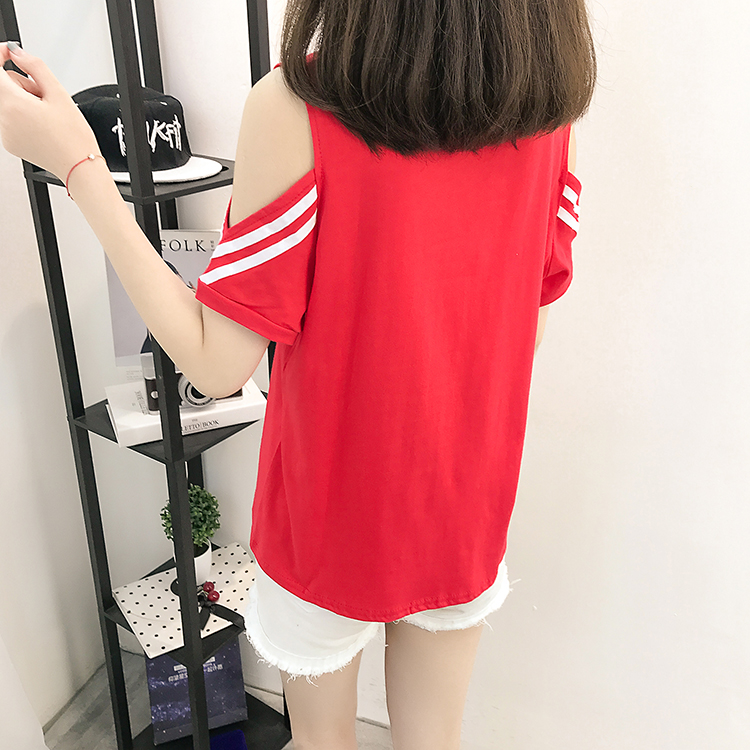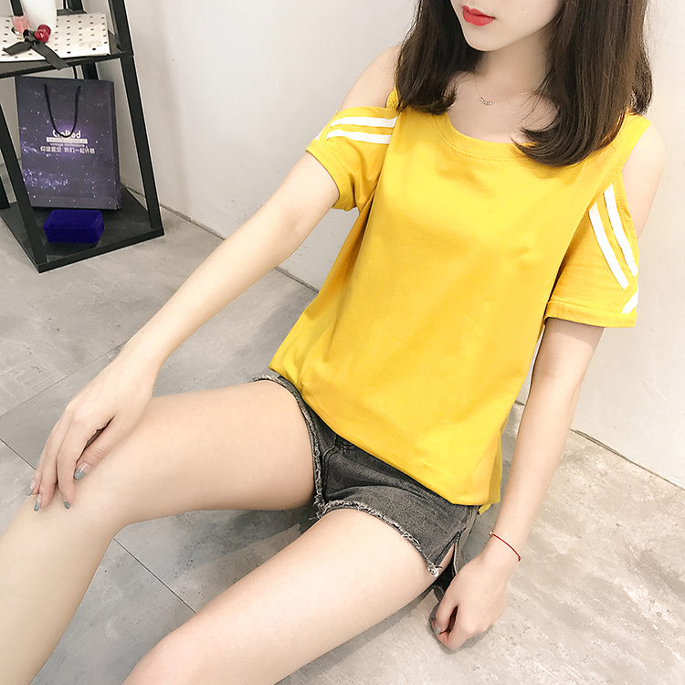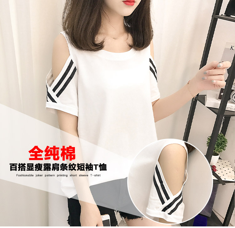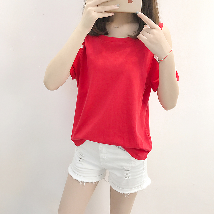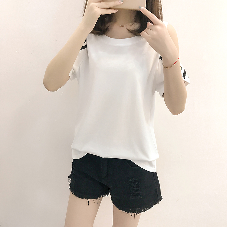 [2]夏裝2019新款寬松白色t恤韓版露肩短袖女純棉百搭心機上衣超火cec