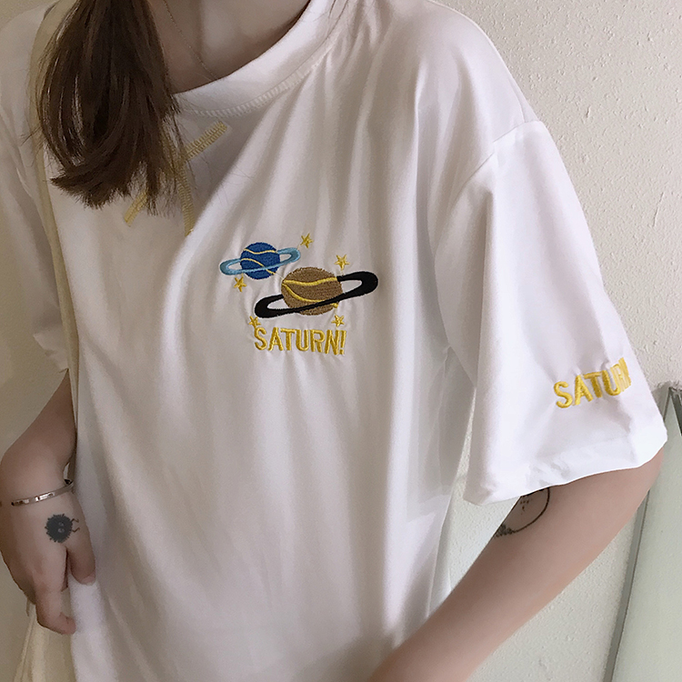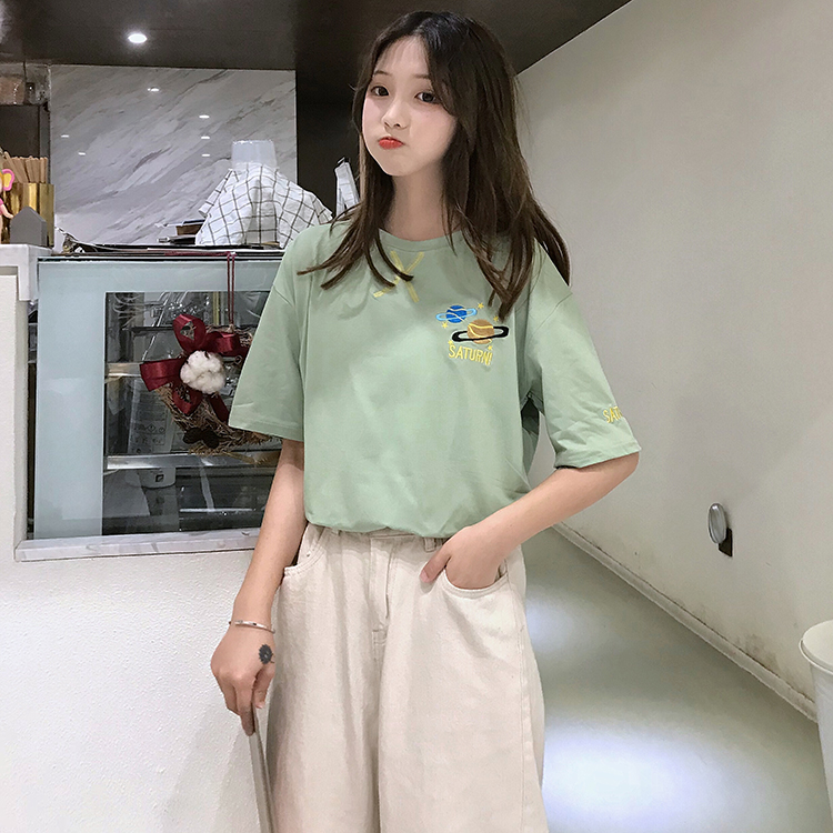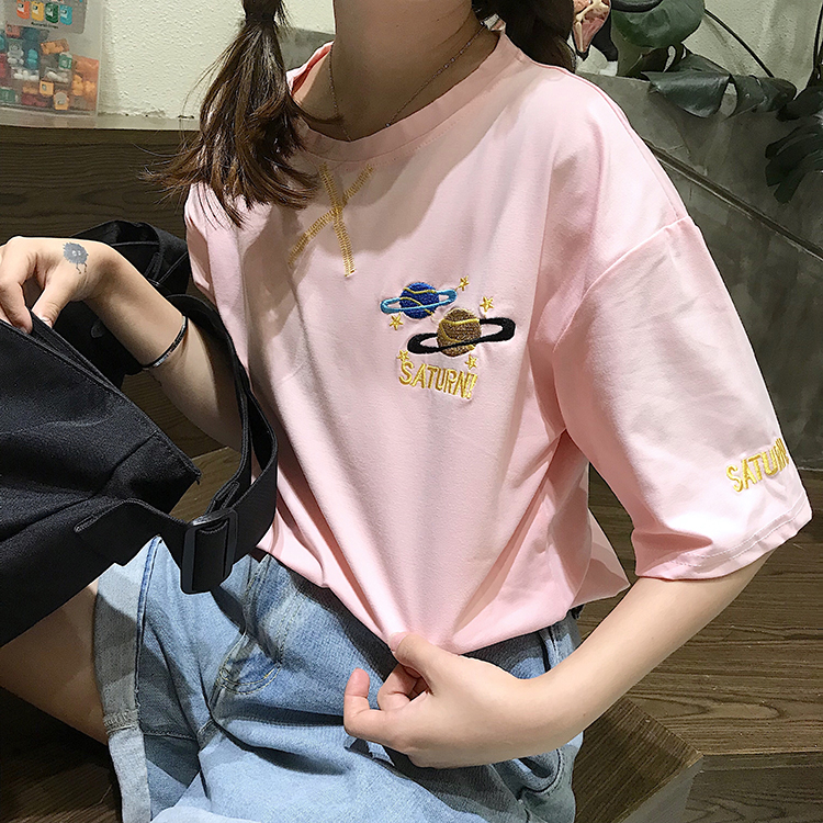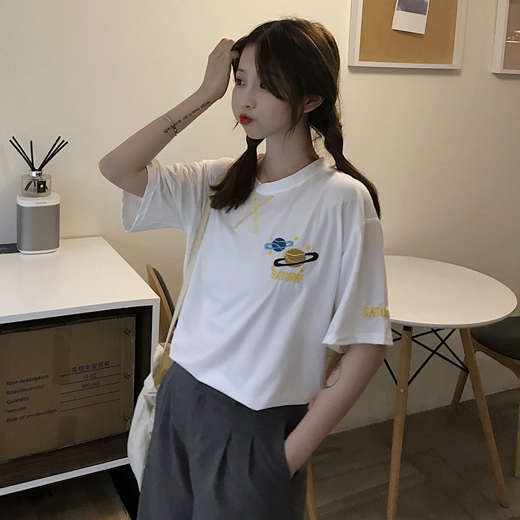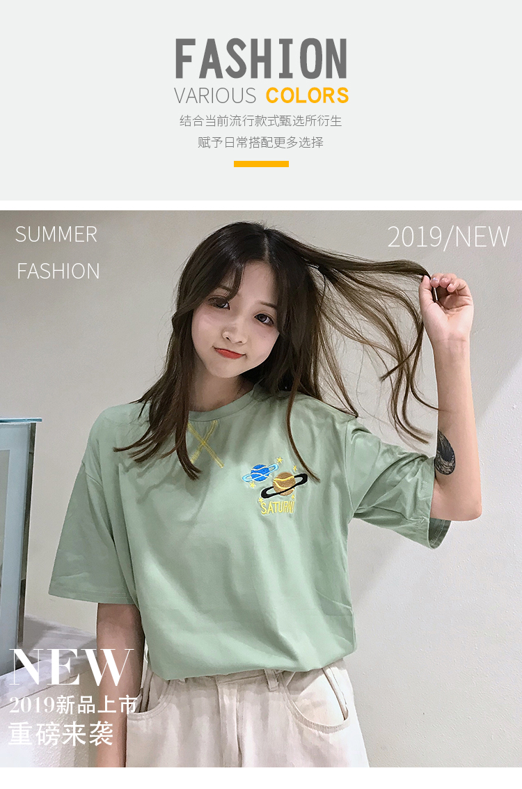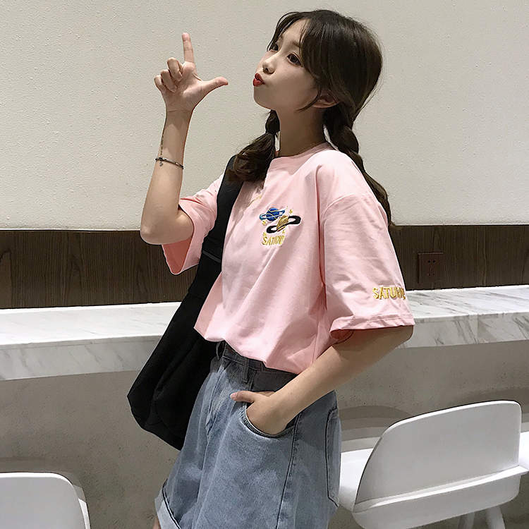 [2]網紅短袖t恤女2019新款夏季港味寬松學生韓版百搭刺繡上衣服ins潮