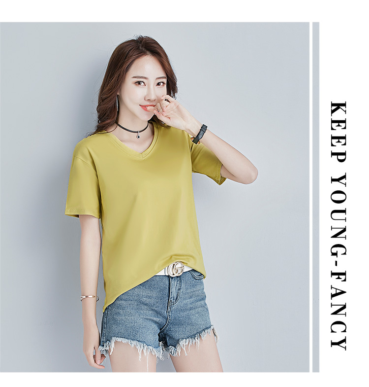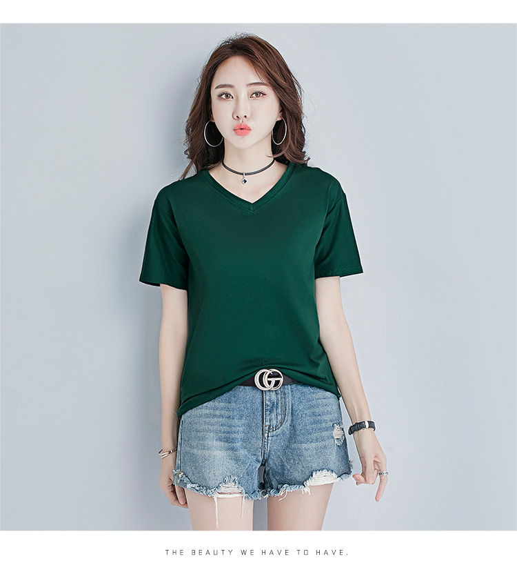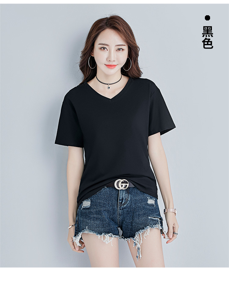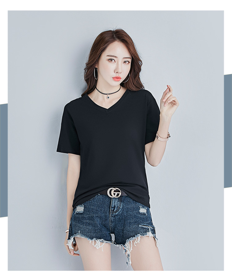 [2]夏季2019新款女裝韓版純棉V領寬松修身黑白色t恤女短袖純色ins潮