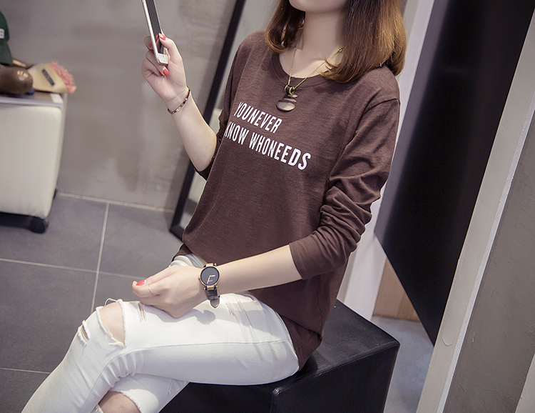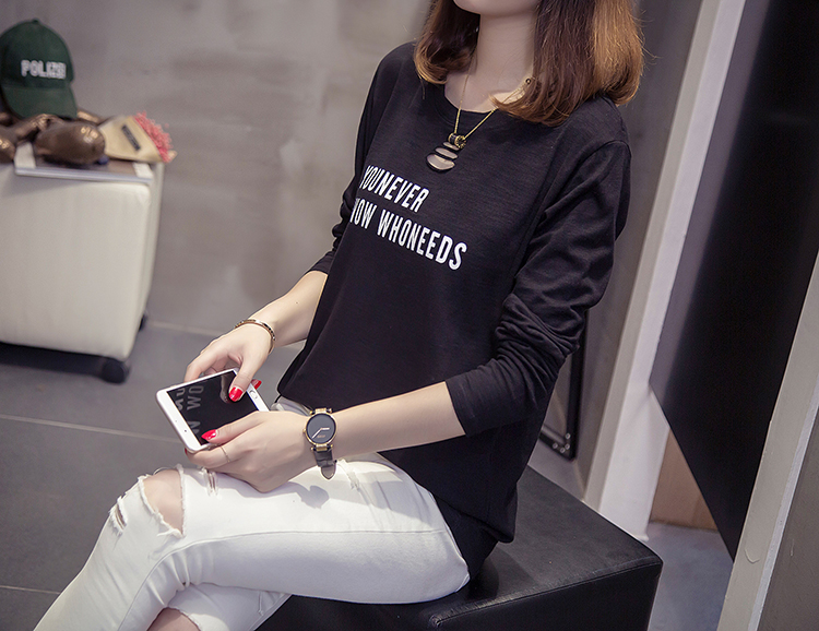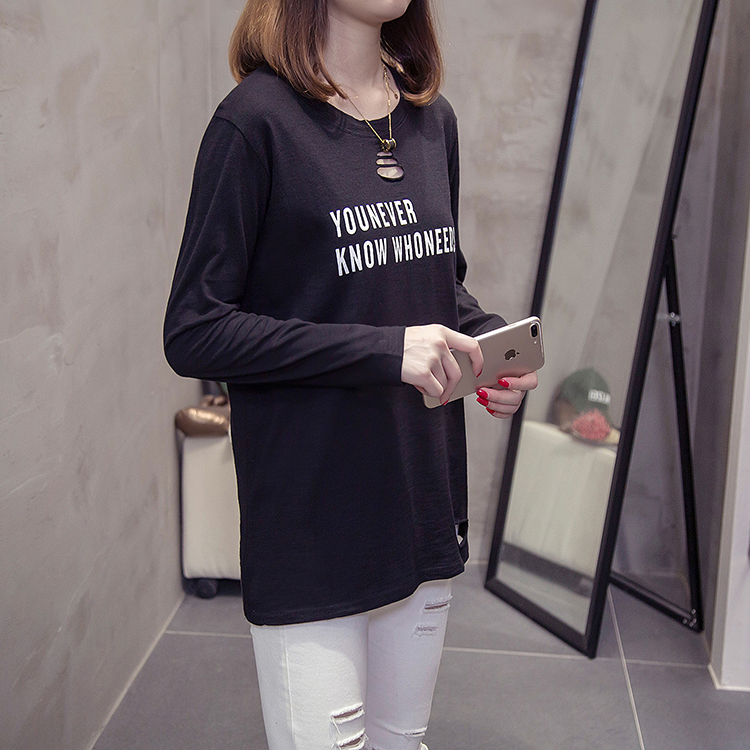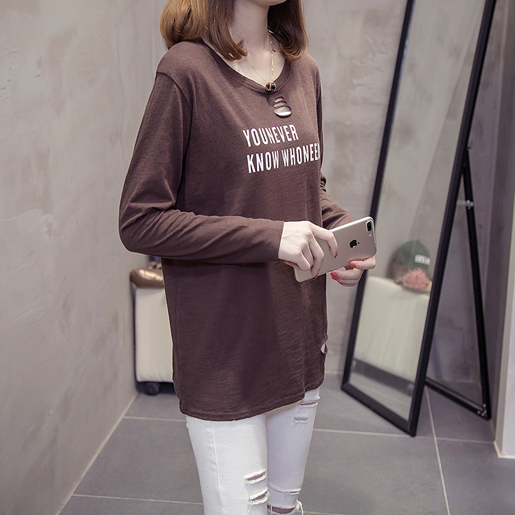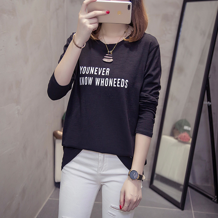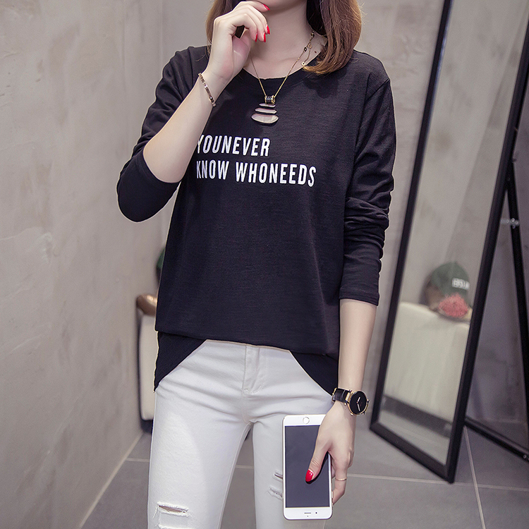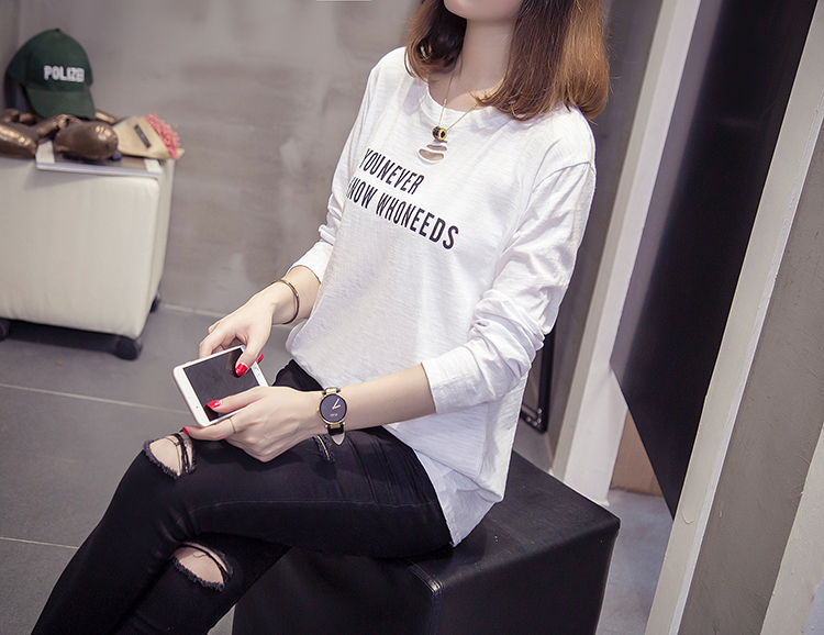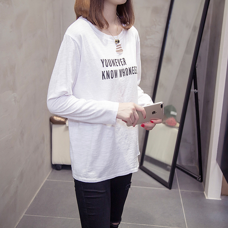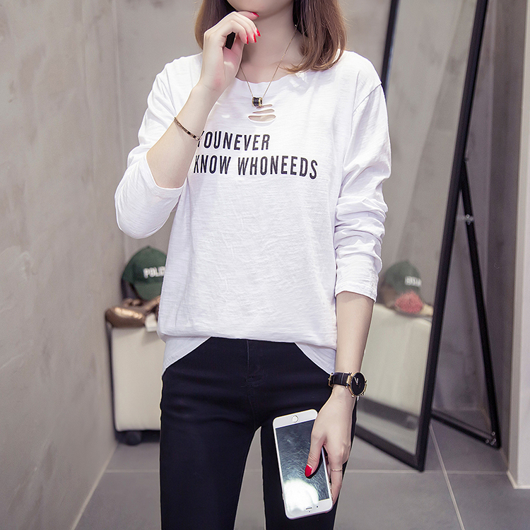 [2]竹節棉t恤女2019春秋季新款寬松上衣鏤空純棉長袖學生打底衫百搭