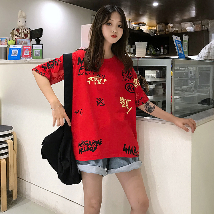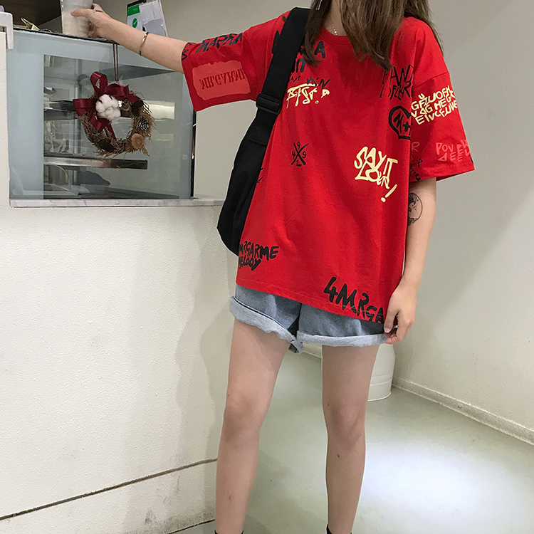 [2]歐貨大版t恤女短袖寬松2019新款夏韓版潮港味ins百搭上衣超火cec