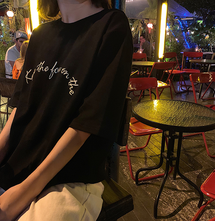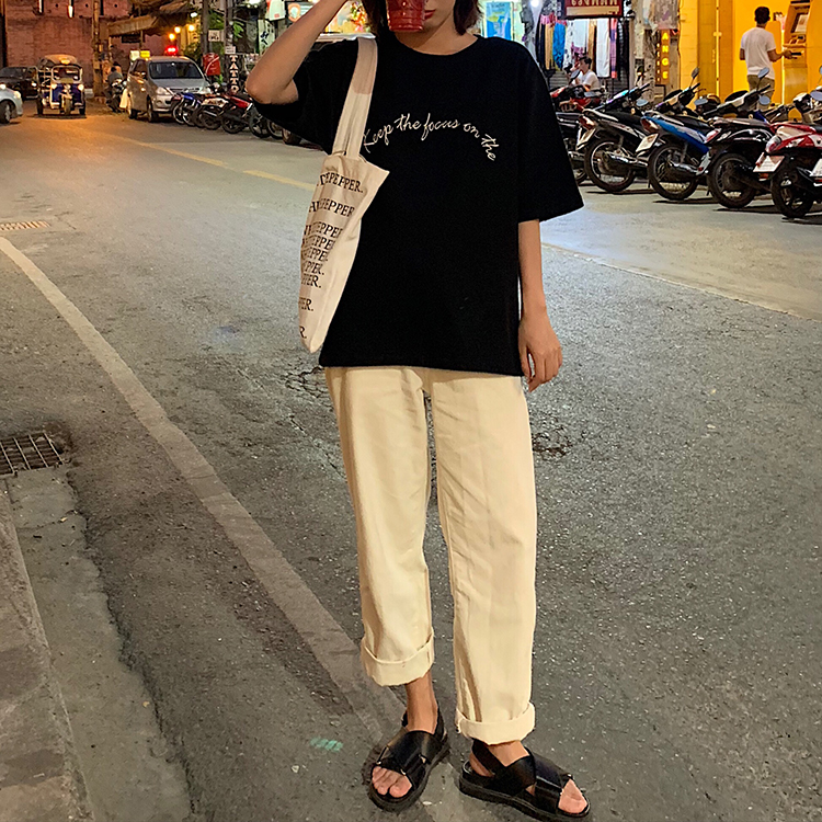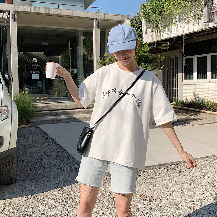 [2]ins黑色短袖t恤女夏裝2019新款寬松百搭港味上衣服潮超火cec白色
