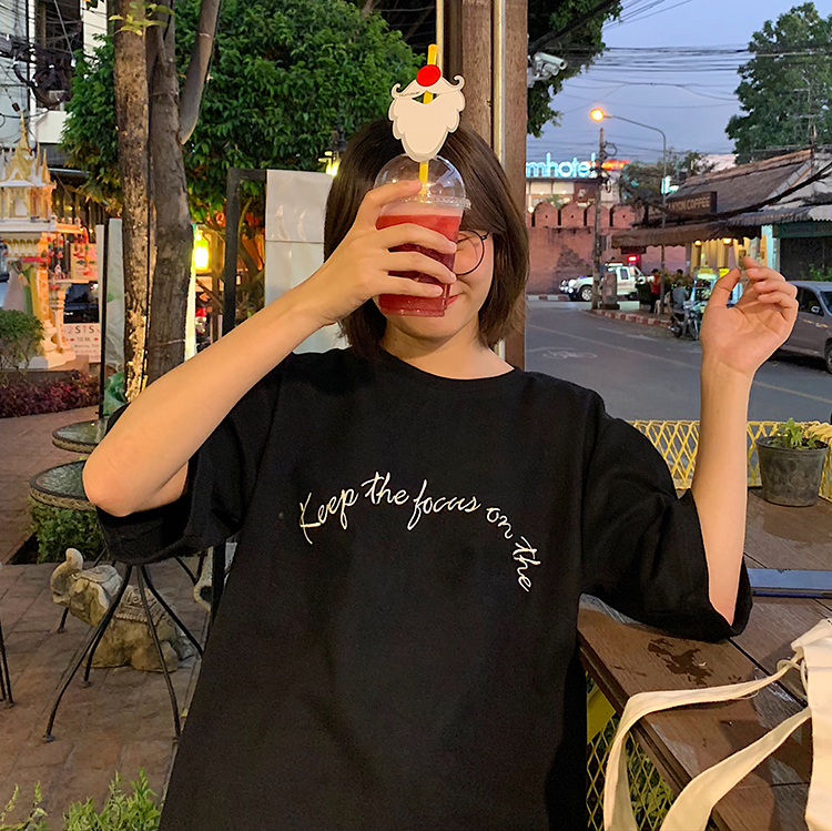ins黑色短袖t恤女夏裝2019新款寬松百搭港味上衣服潮超火cec白色