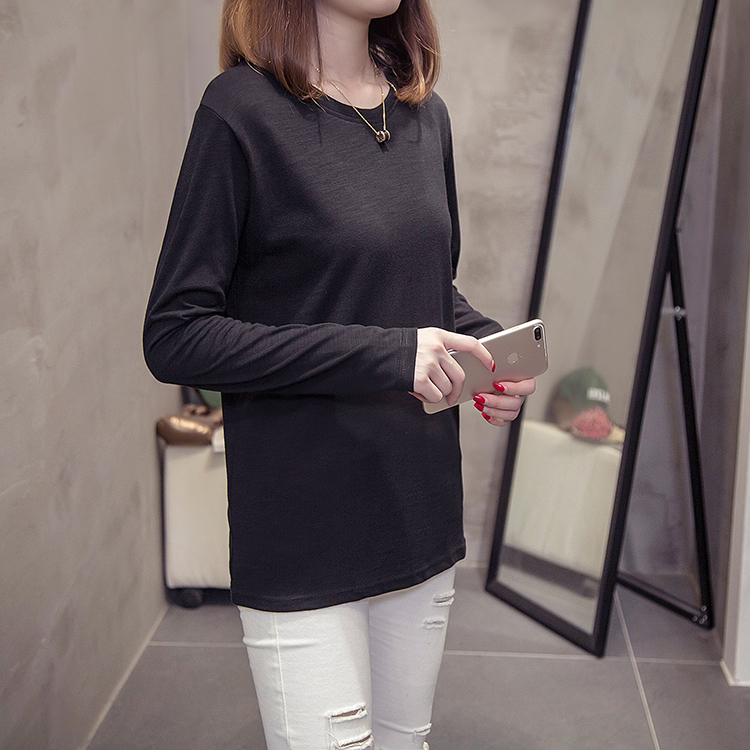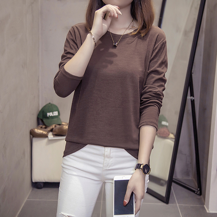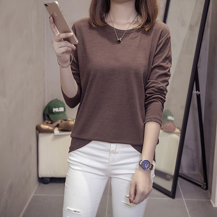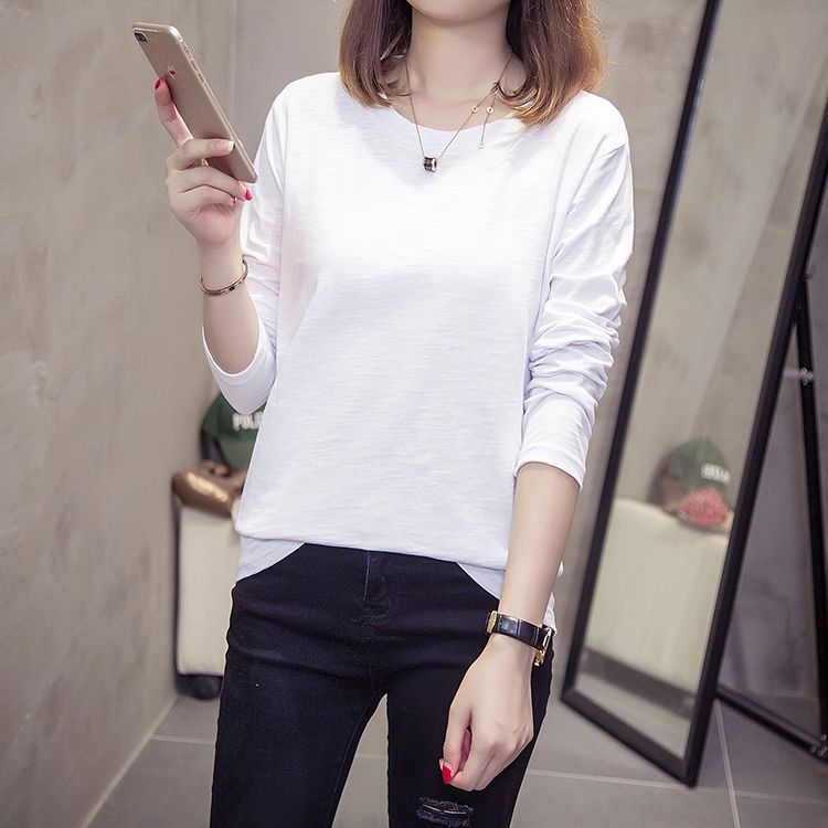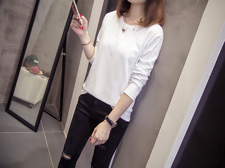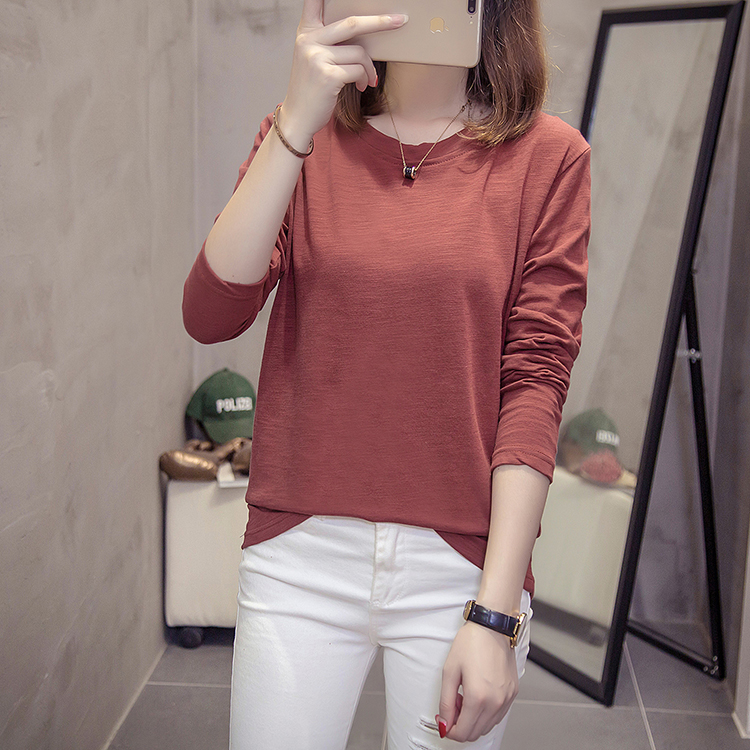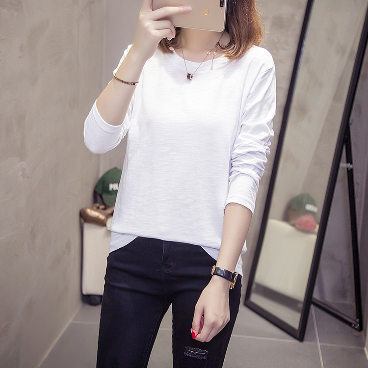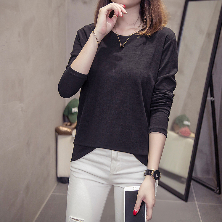 [2]t恤女長袖秋裝新款韓版圓領純色女裝體恤寬松百搭純棉上衣打底衫