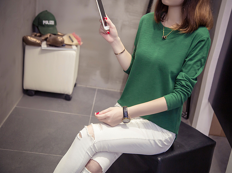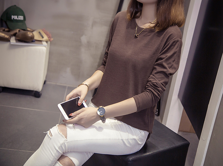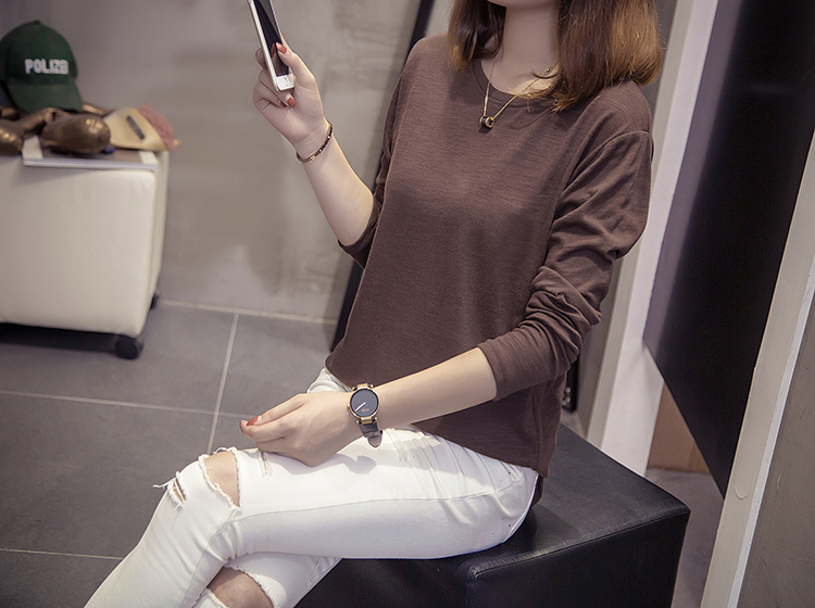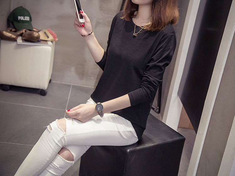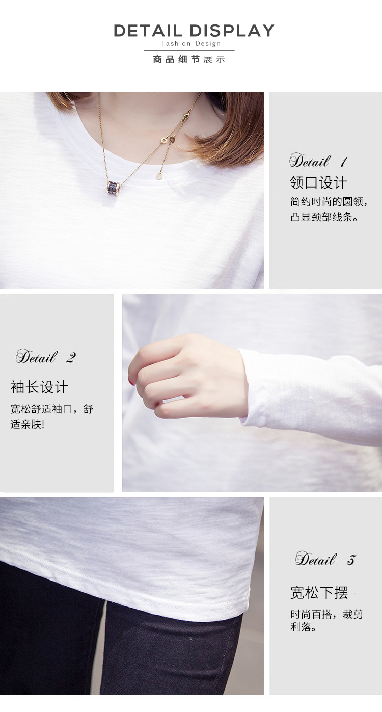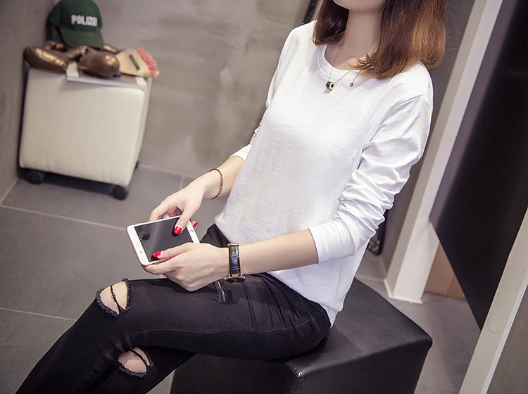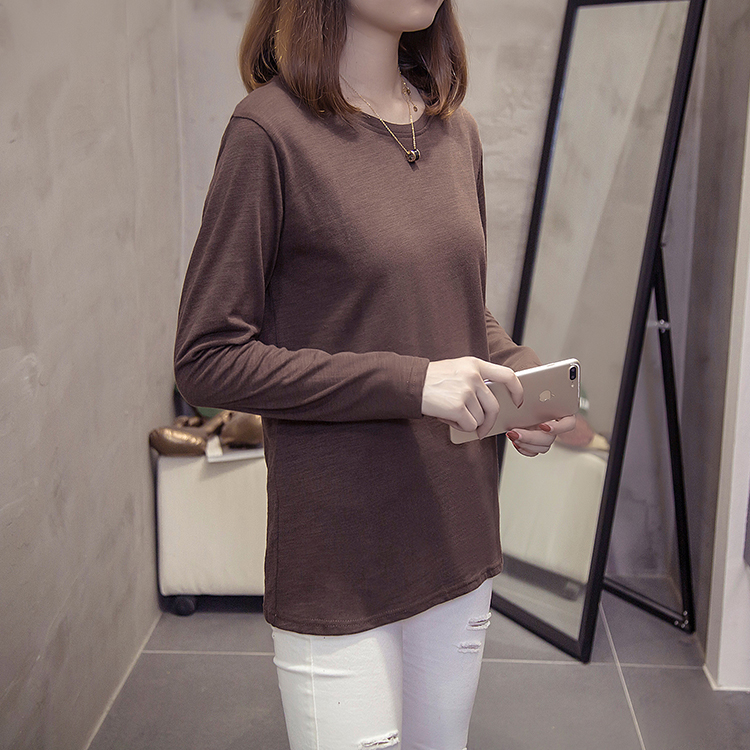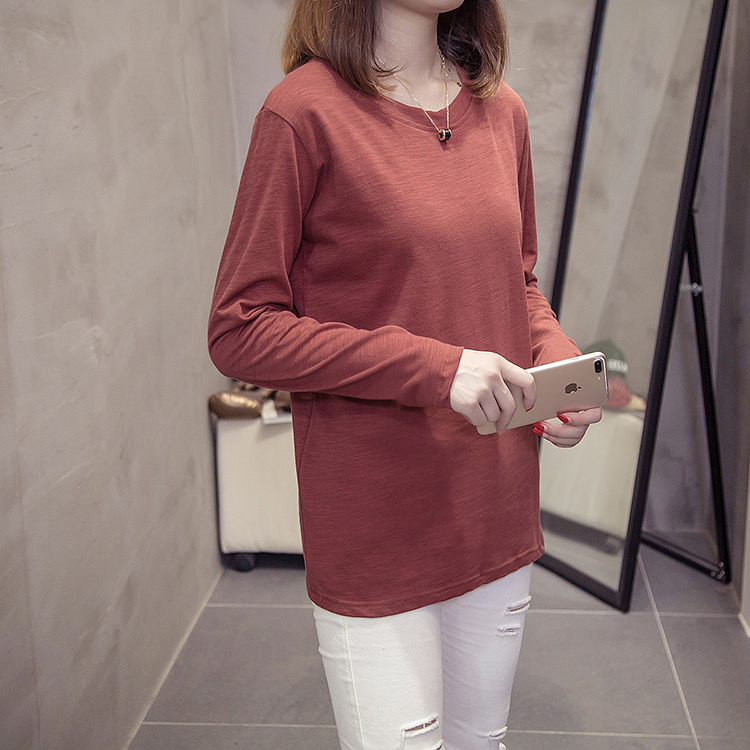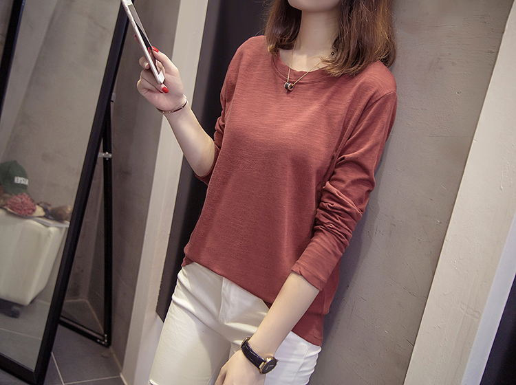 [2]t恤女長袖秋裝新款韓版圓領純色女裝體恤寬松百搭純棉上衣打底衫
