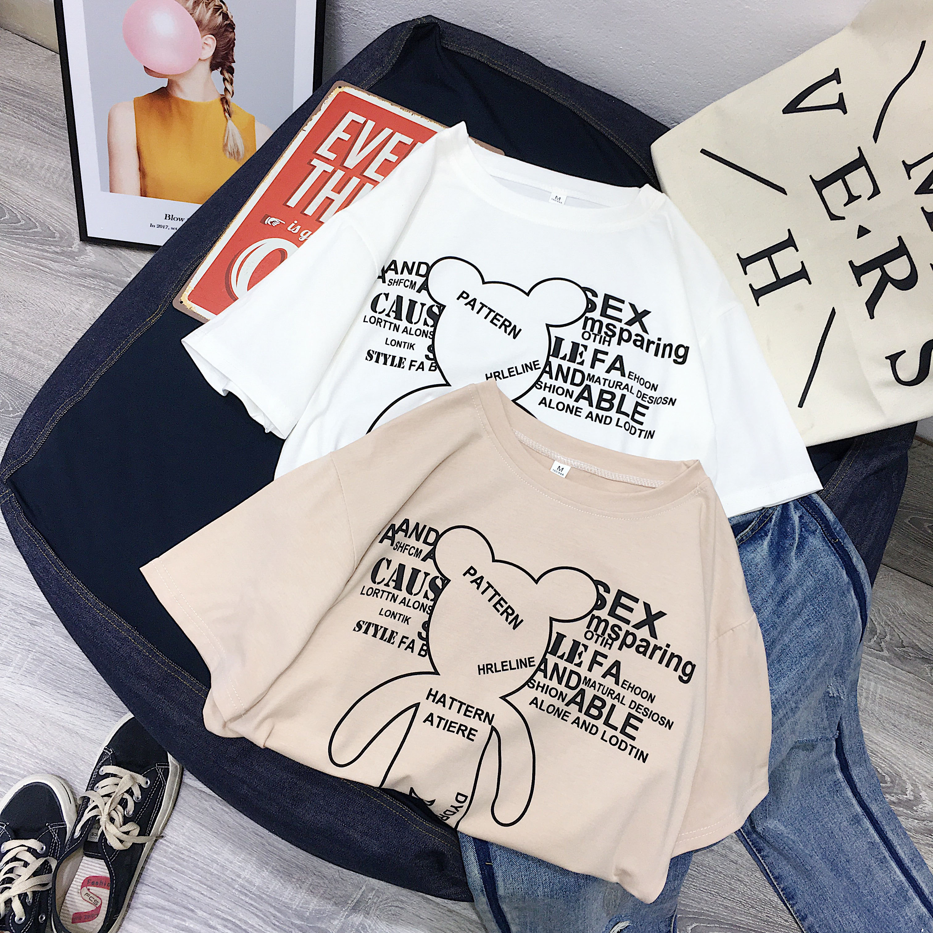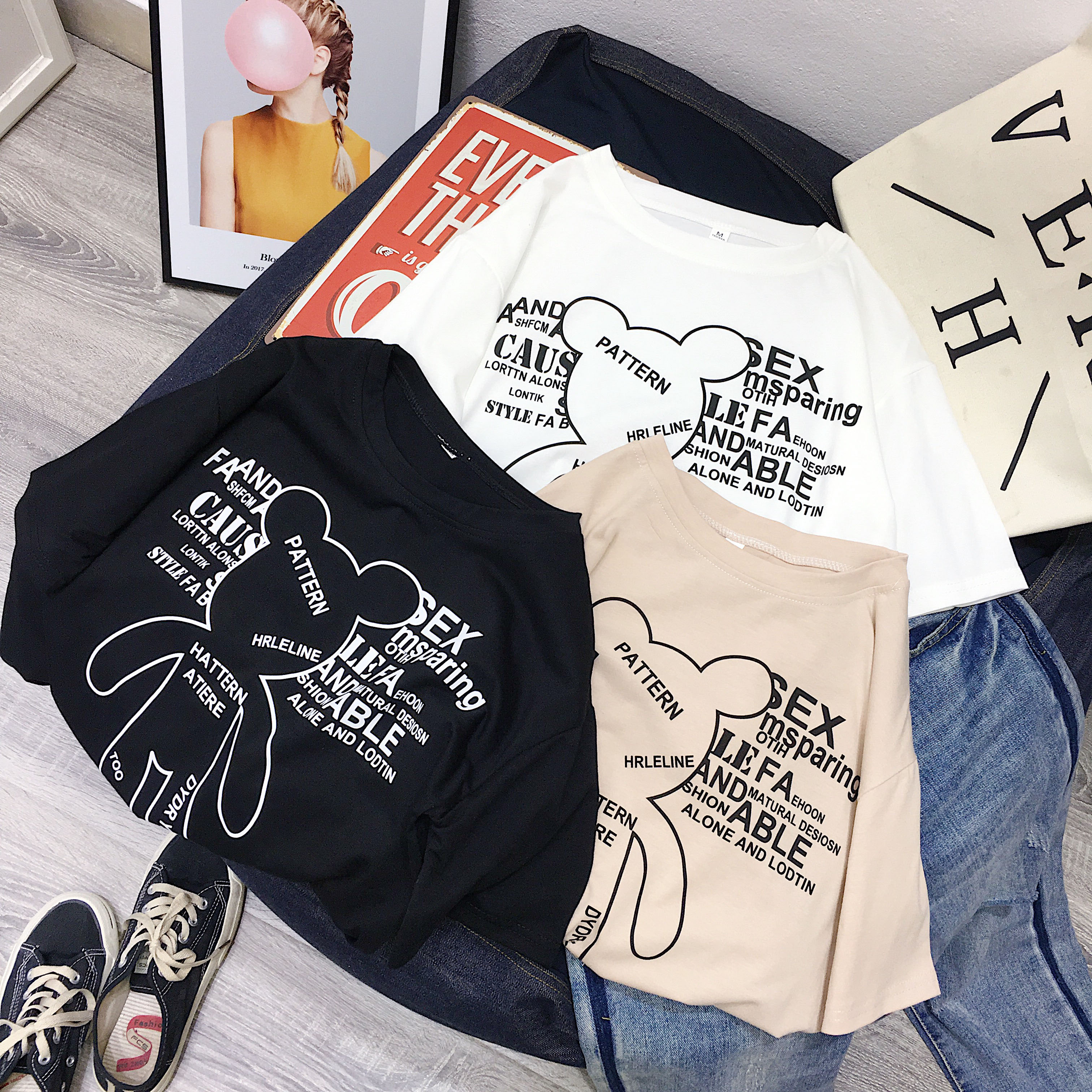 [2]短袖女2019新款夏裝韓版潮寬松半袖體恤ulzzang百搭學生卡通T恤棉