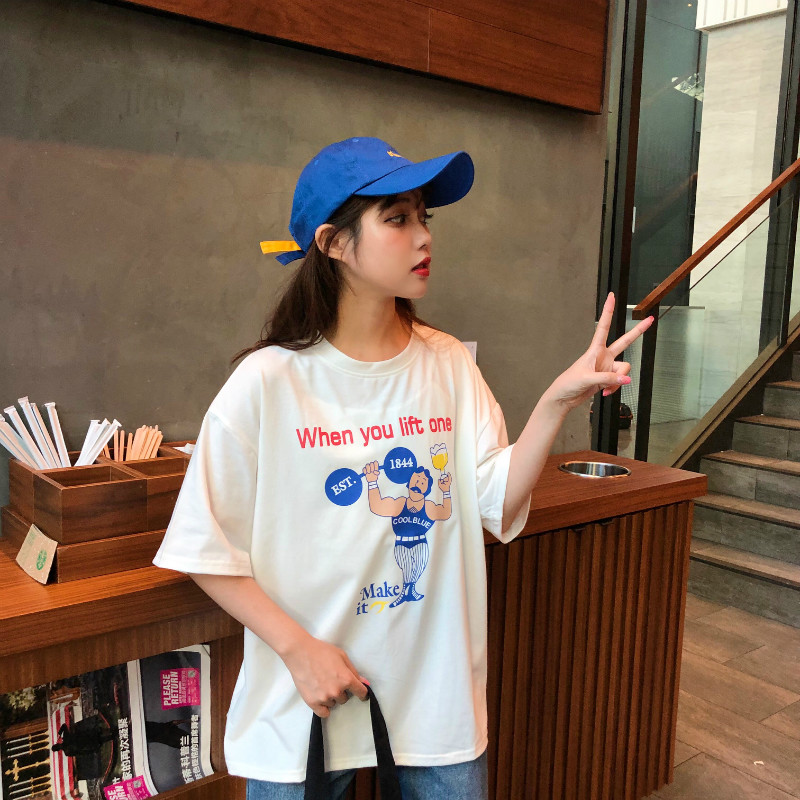 [2]中長款短袖t恤女寬松ins超火韓版潮半袖2019夏裝新款港味上衣cec