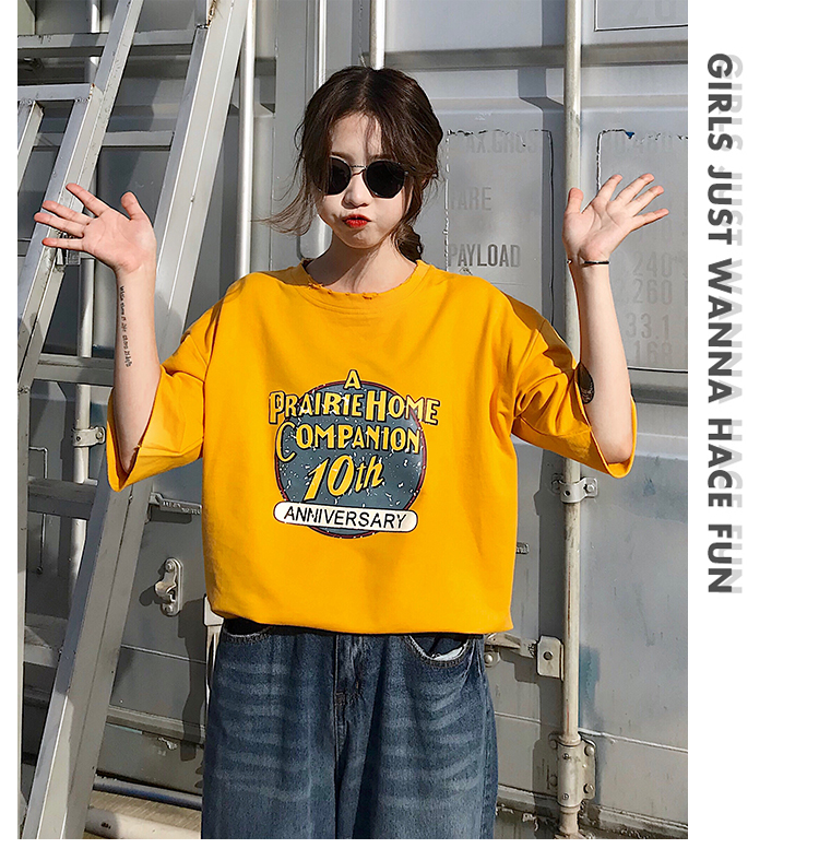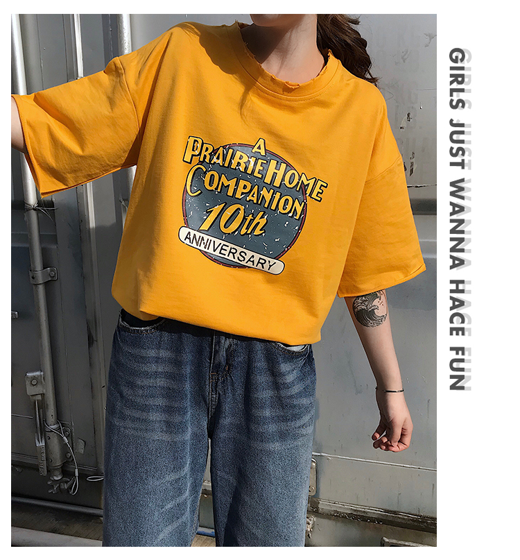 [2]短袖女2019新款打底衫寬松韓版夏季學生ins潮黃色t恤半袖百搭上衣