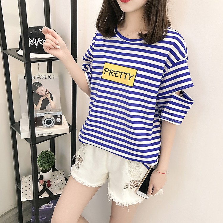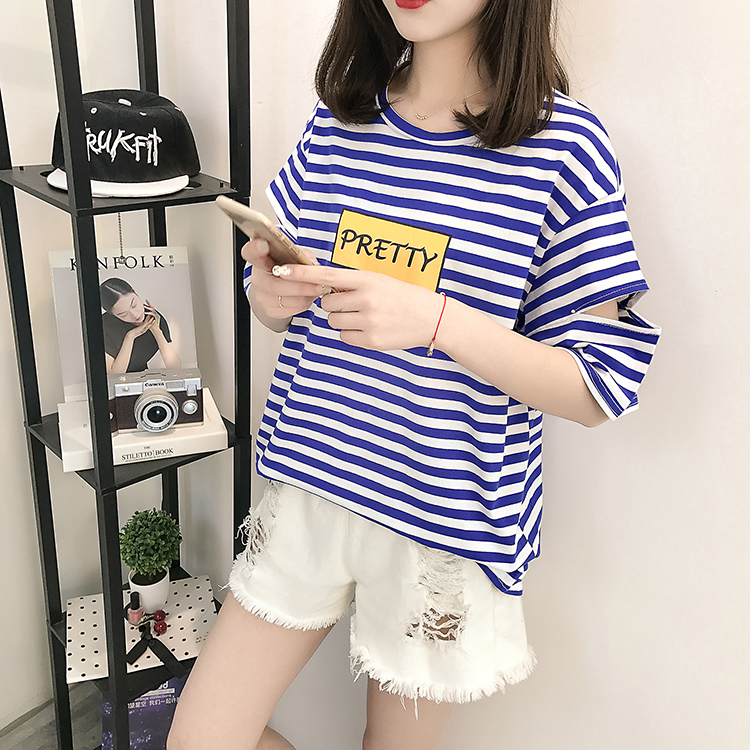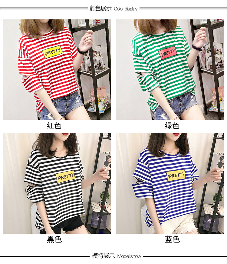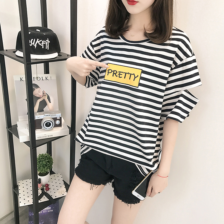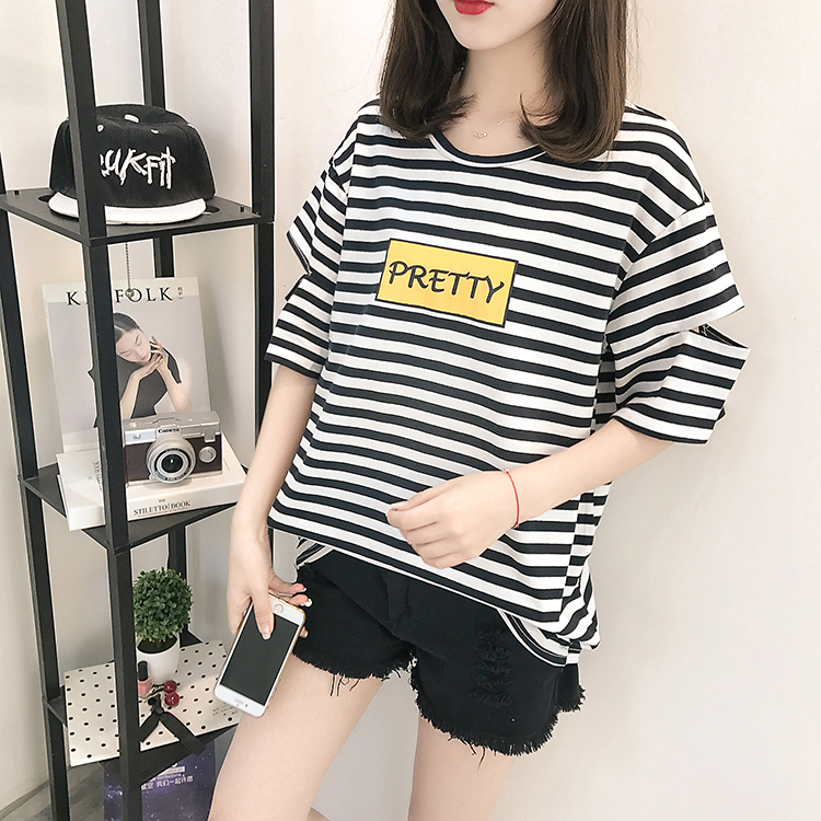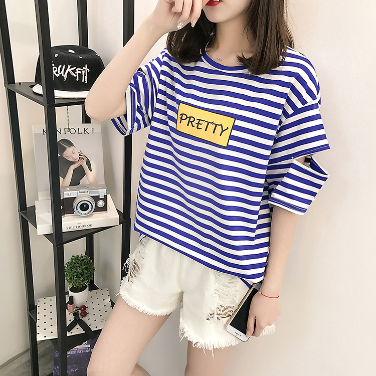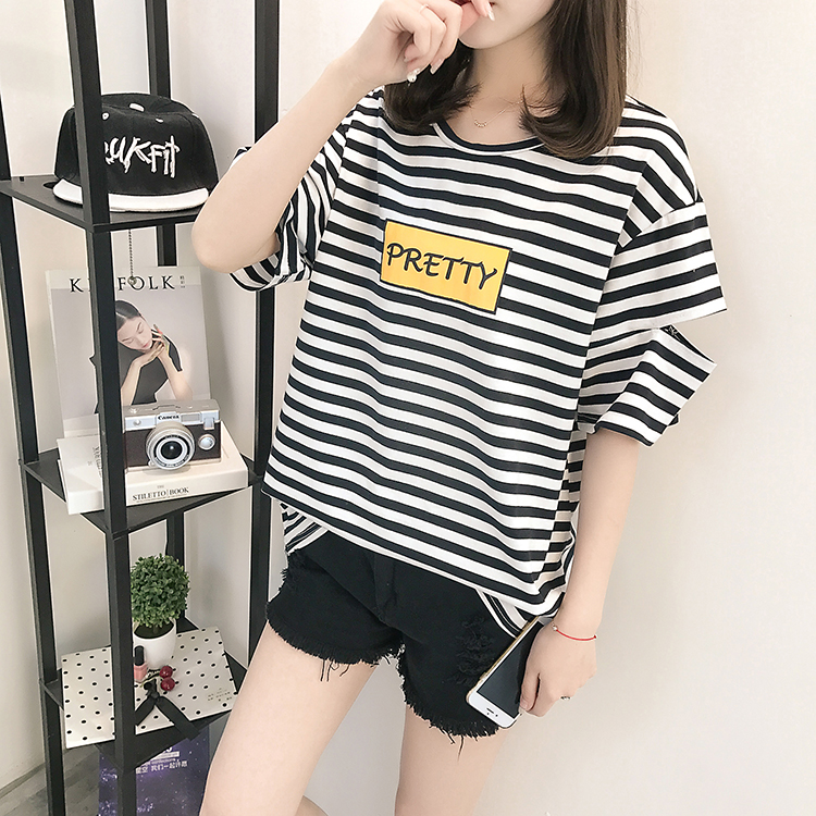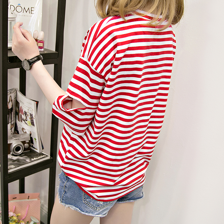 [2]網紅短袖女2019新款夏裝韓版條紋t恤女ins學生寬松百搭半袖上衣服